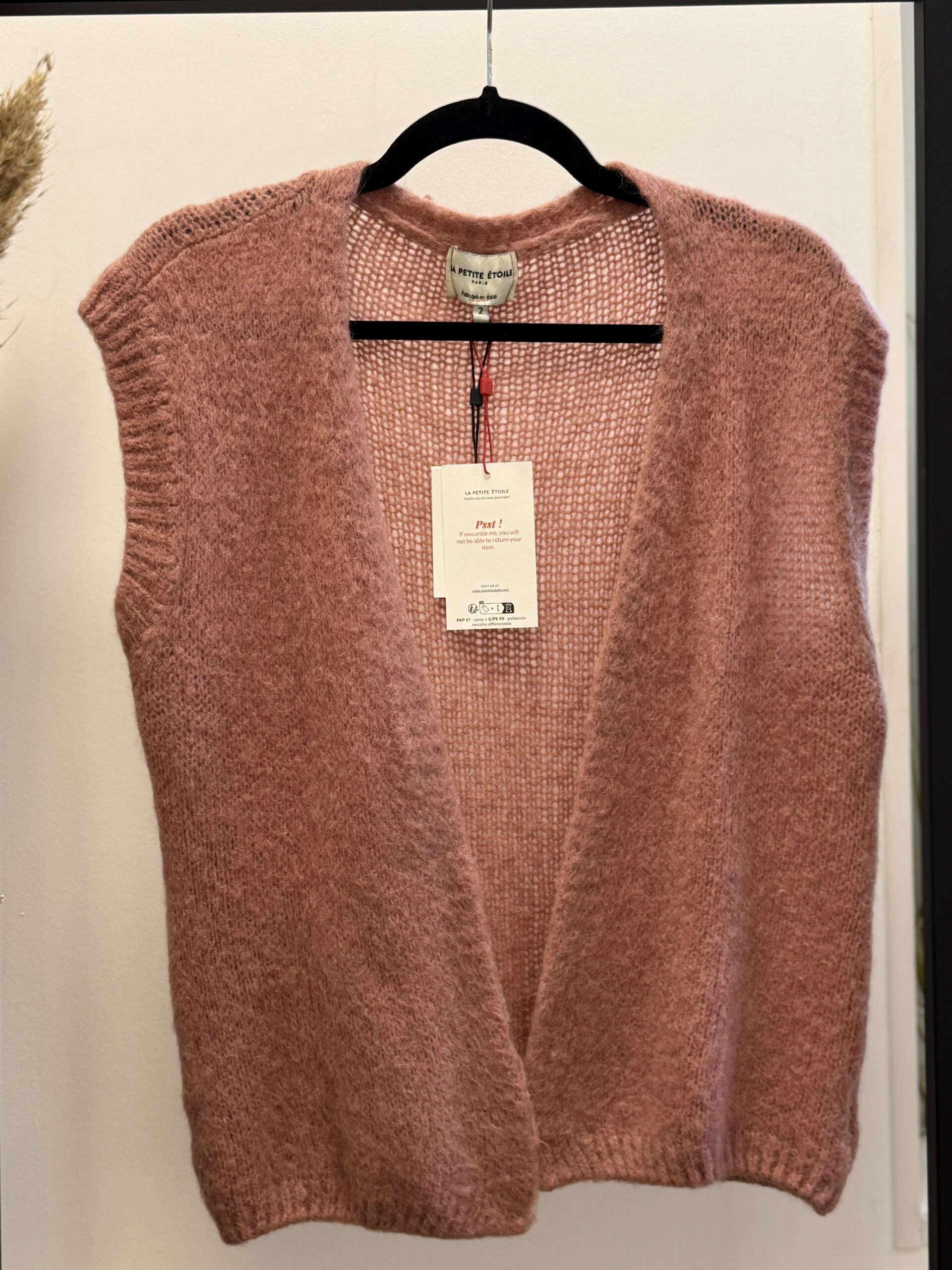 Ce Gilet sans manches en maille vieux rose, est à la fois tendance et confortable.