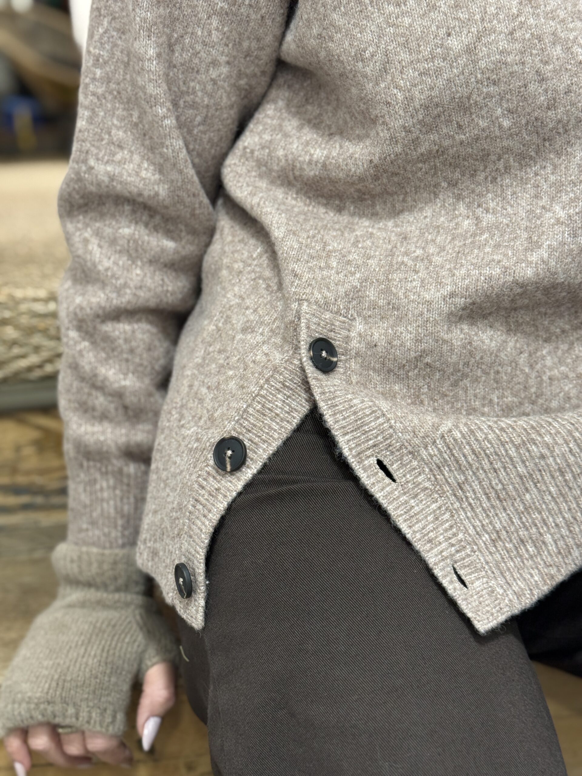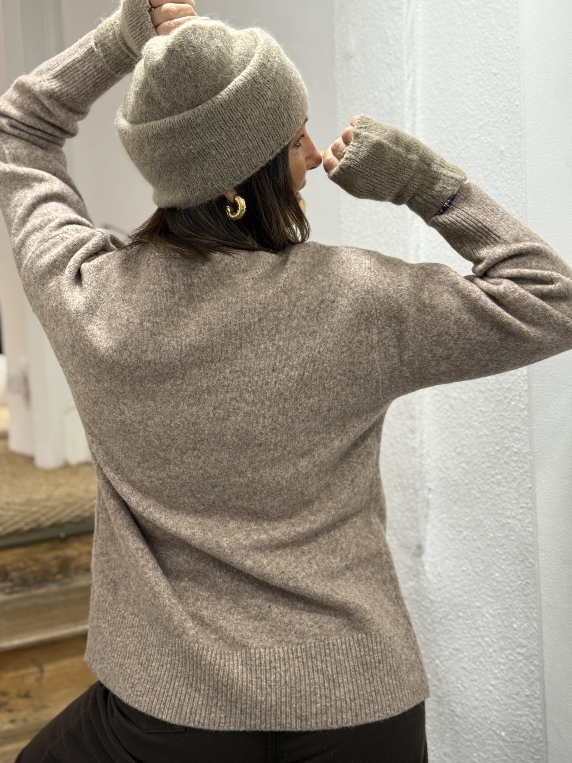 Ce pull en maille beige est un essentiel du dressing, mêlant élégance naturelle et confort au quotidien!