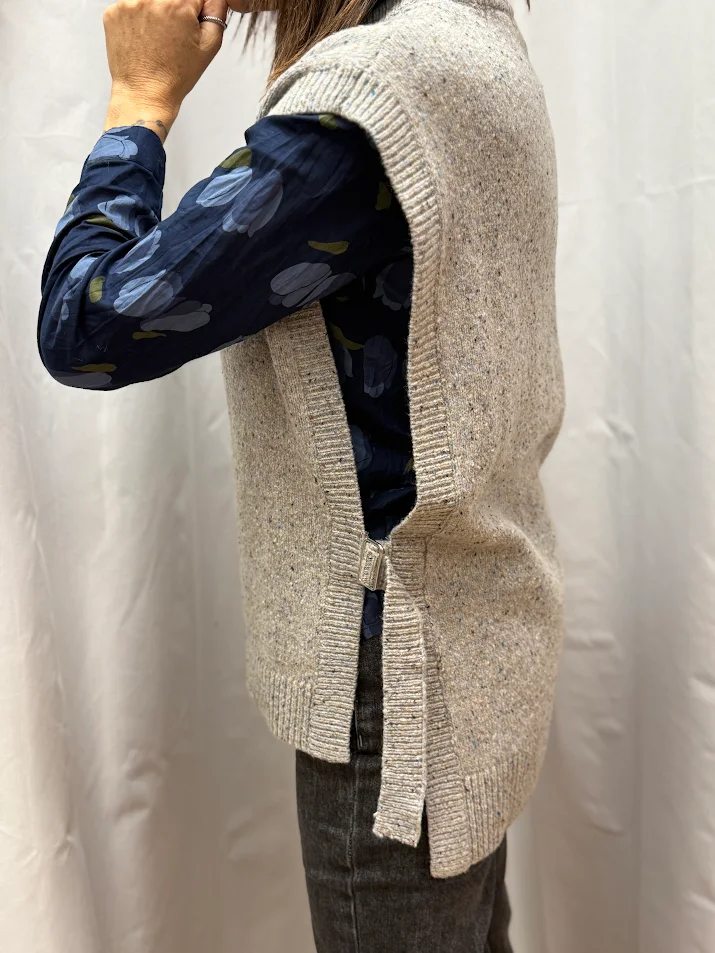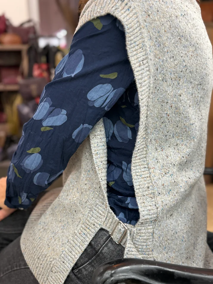 Ce pull cape gris chiné est la pièce parfaite pour ajouter du style et du confort à vos tenues!