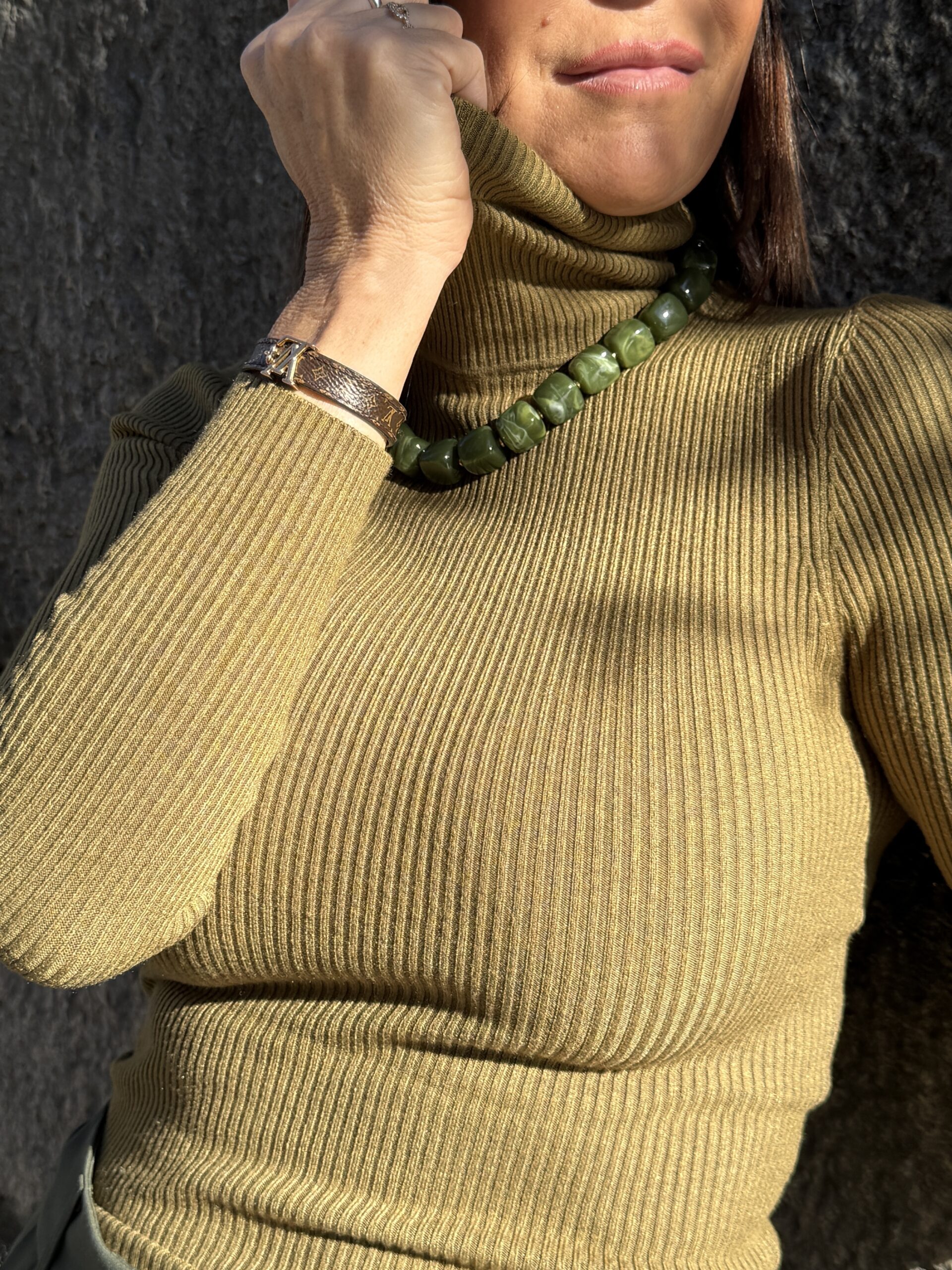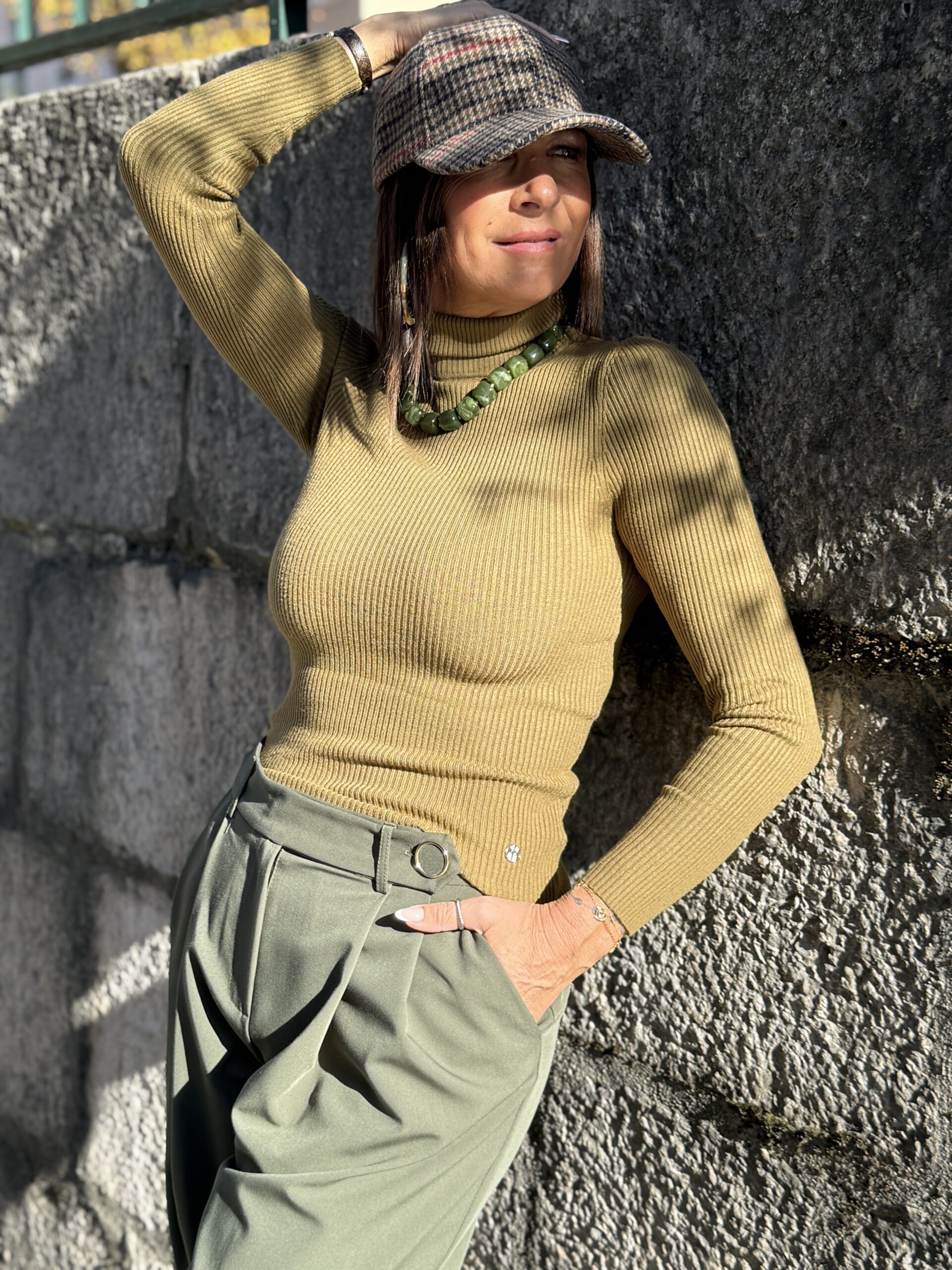 Ce pull col roulé côtelé vert olive est la pièce parfaite pour allier confort, chaleur et raffinement !
