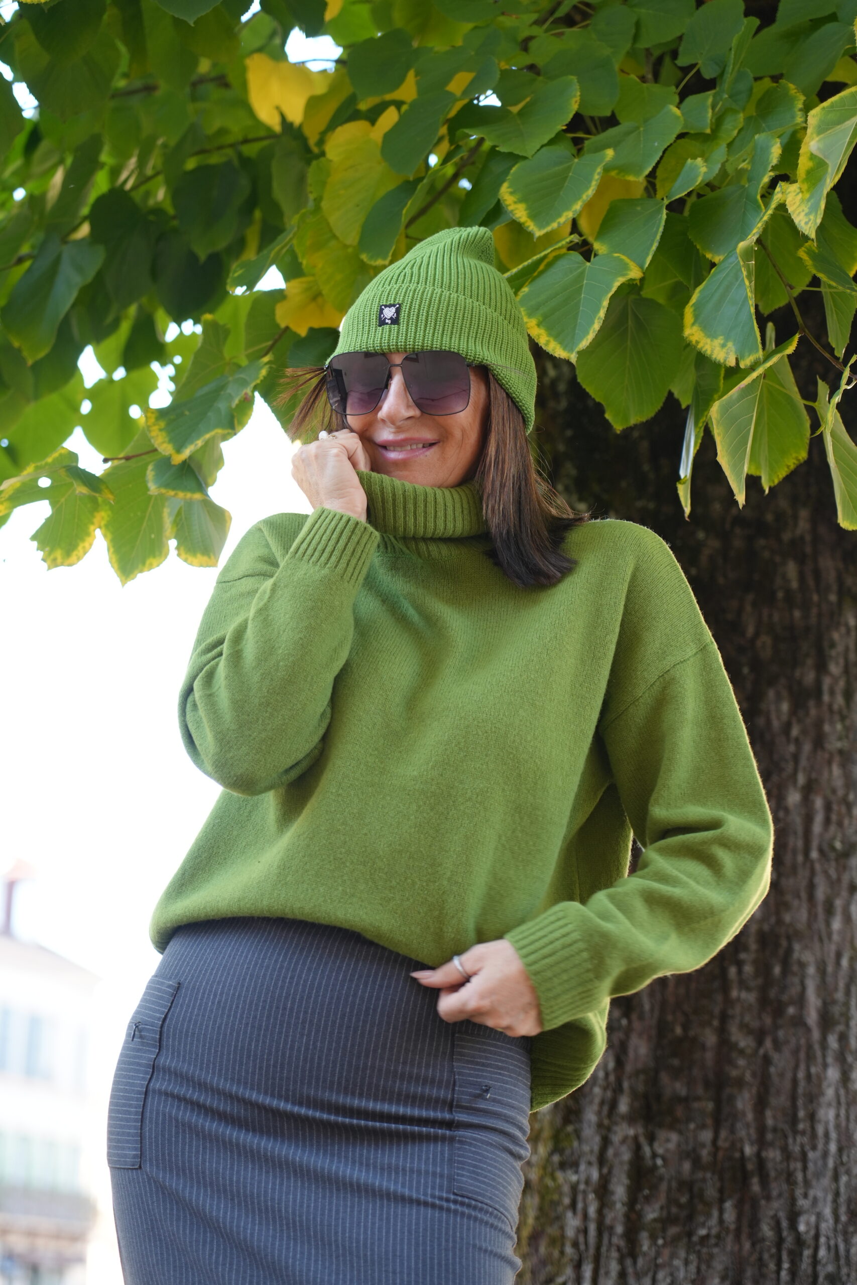 Ce pull col roulé oversize en maille douce est la pièce cocooning par excellence. Sa couleur vert pomme pleine de fraîcheur illumine la silhouette et apporte une touche pep’s à vos tenues hivernales
