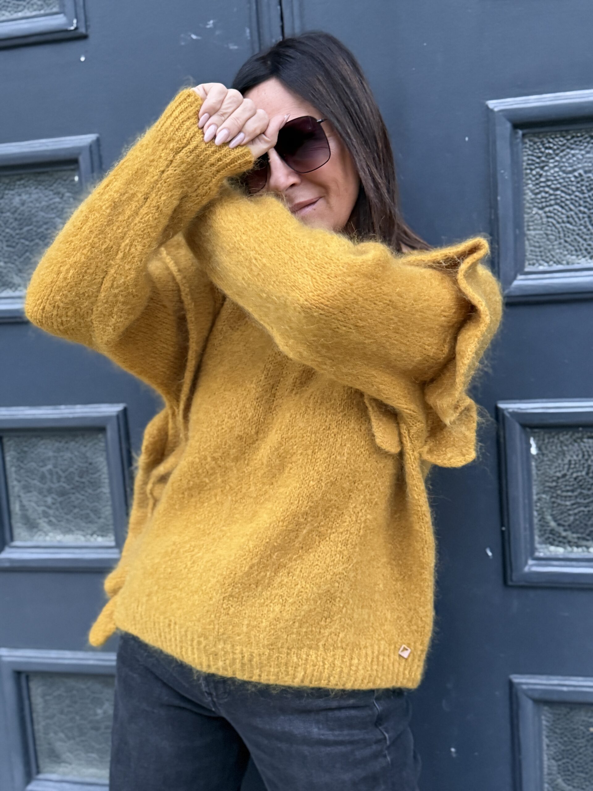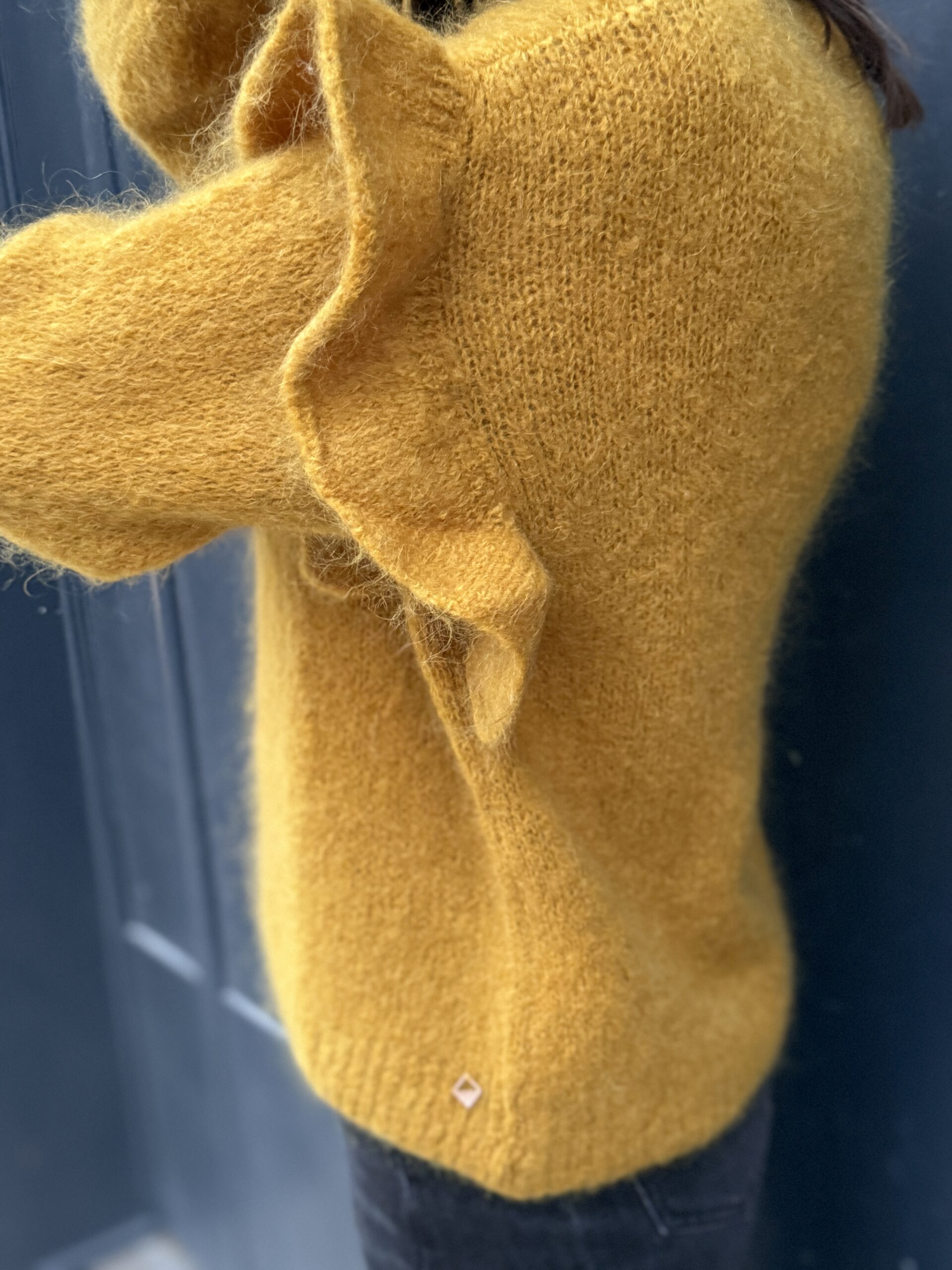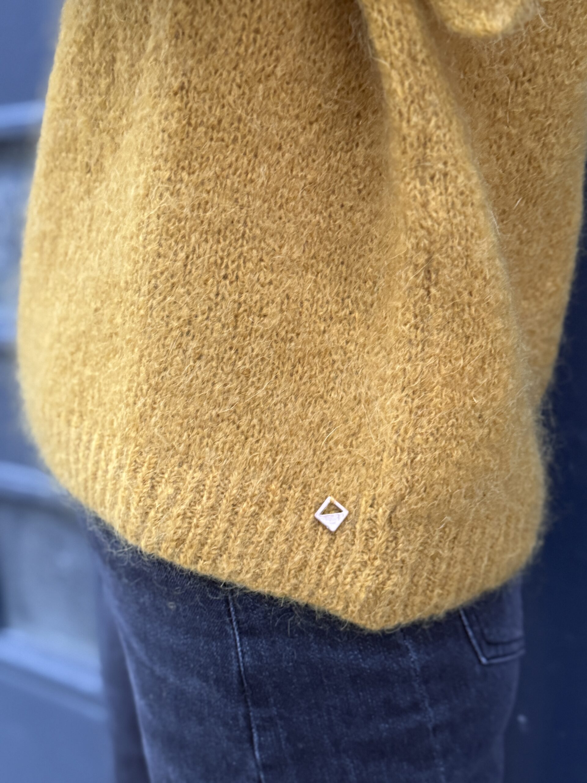 Douceur, chaleur et style, ce pull oversize en mohair moutarde est l’allié parfait des journées fraîches.