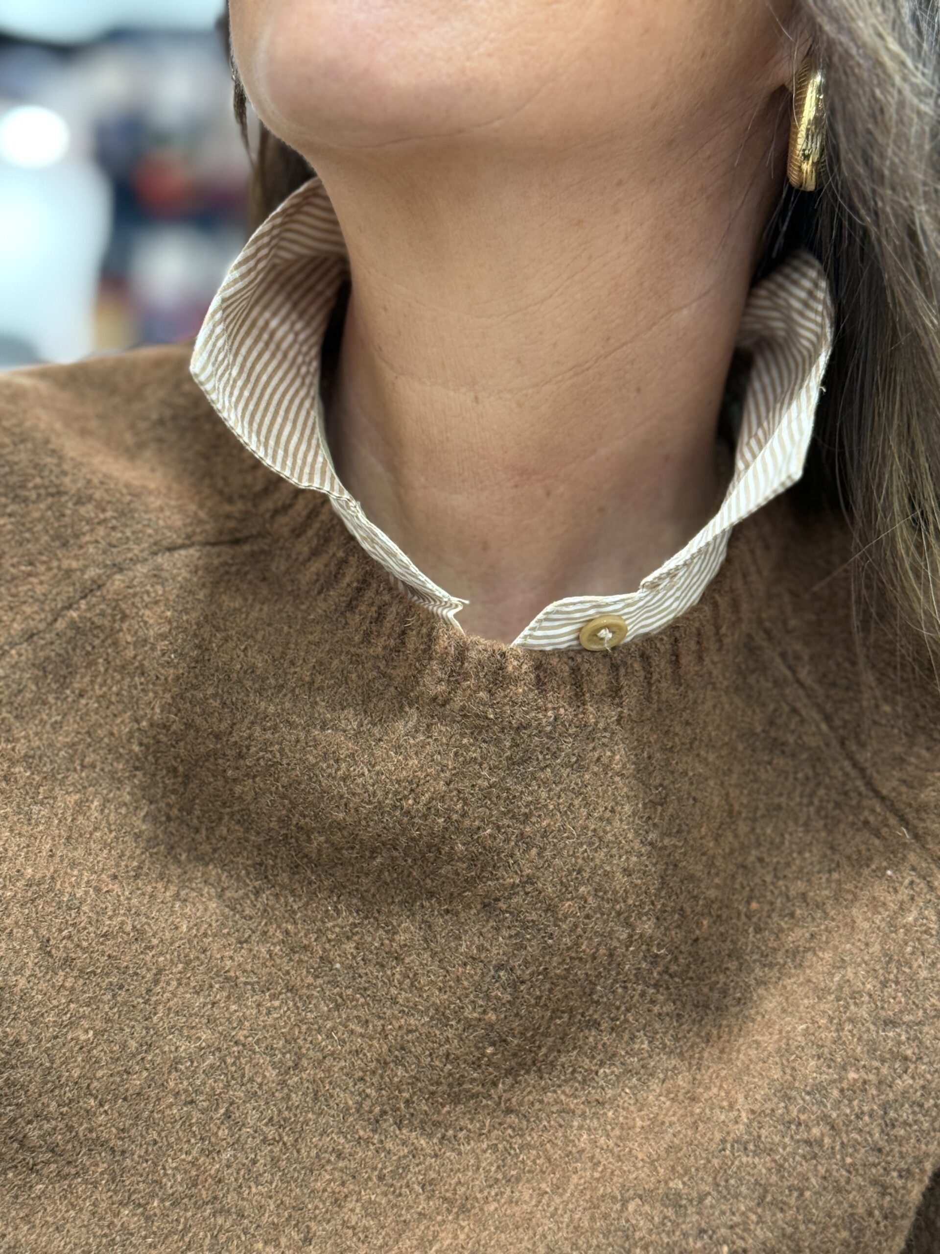 Succombez au charme intemporel de ce pull caramel doux et chaleureux, idéal pour affronter les journée fraîches avec style!