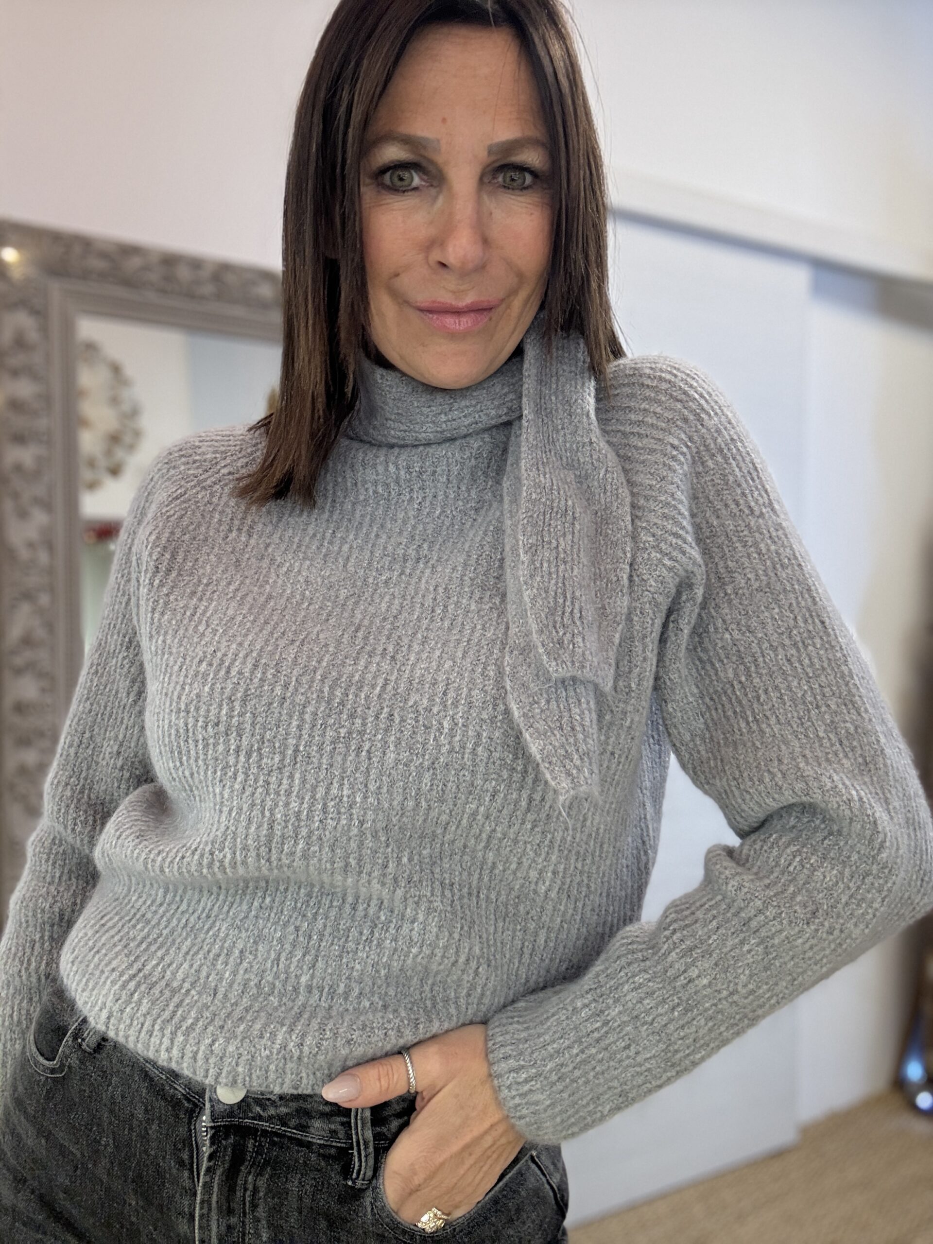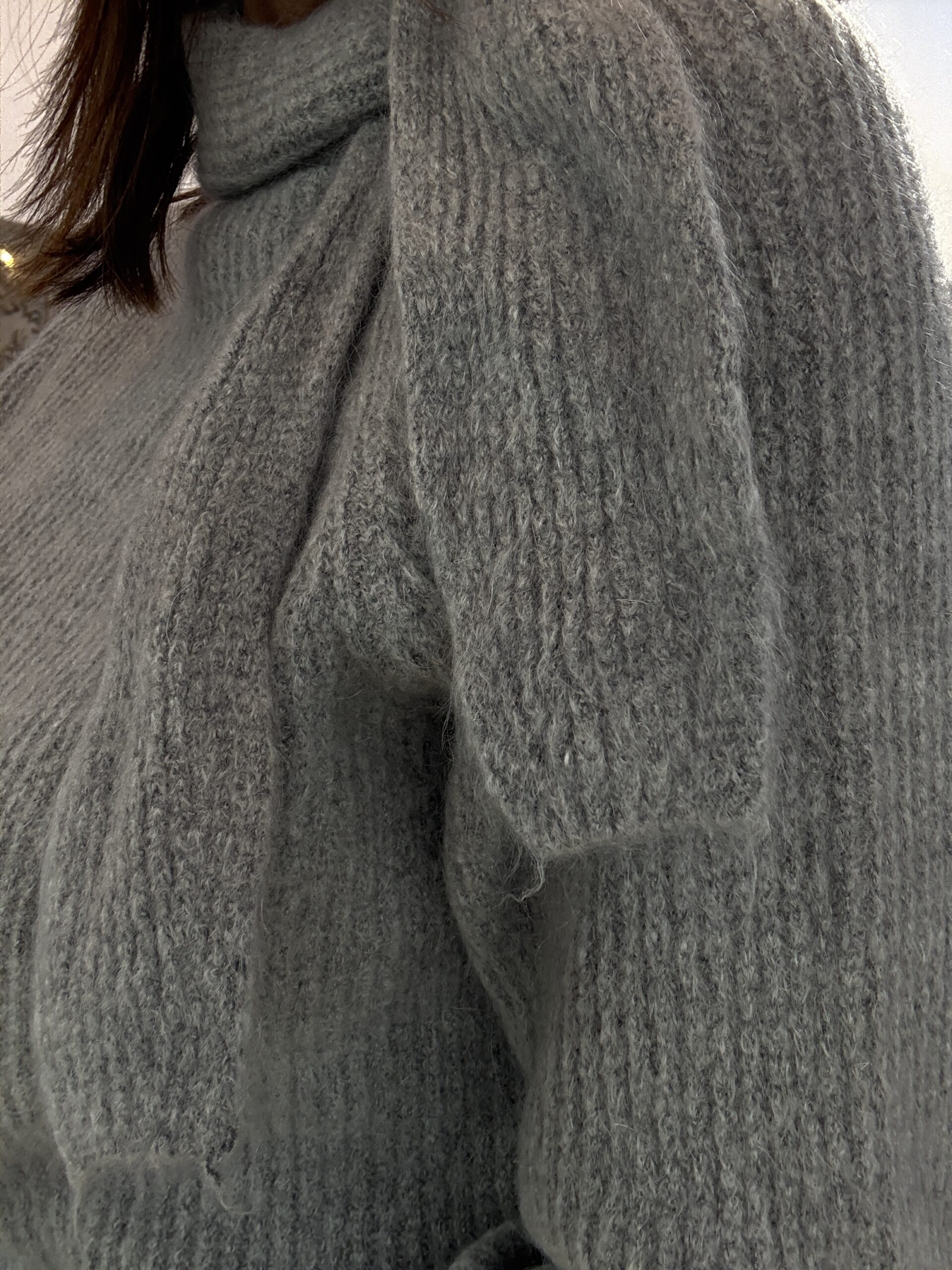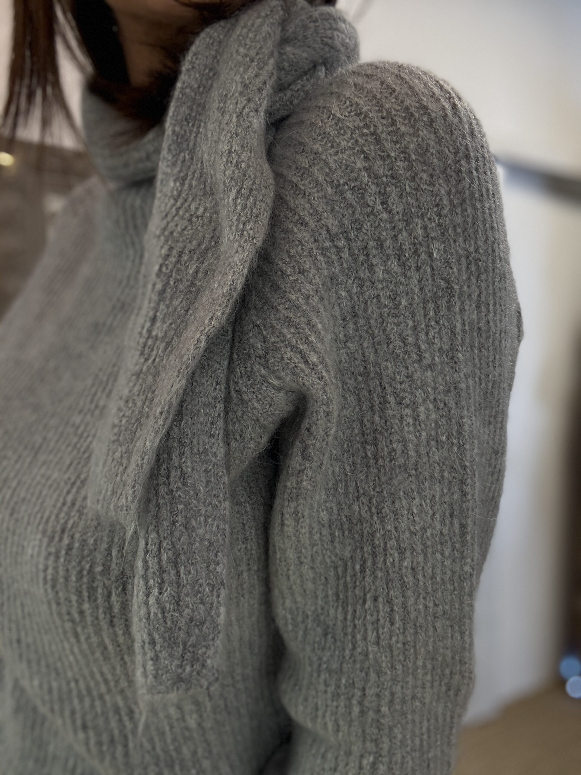 Ce pull au joli détail noué au col lui apporte une touche féminine et originale qu’on adore !