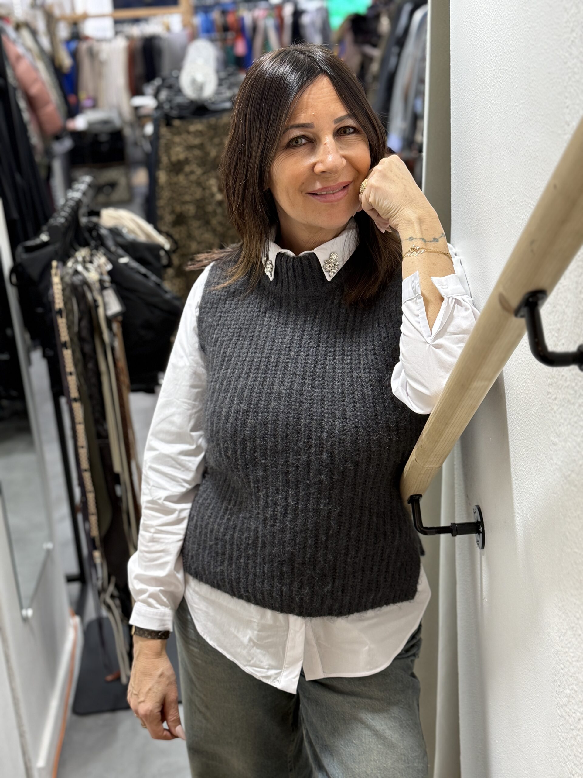 Conseil look de Nathalie : Ce pull sans manches est idéal pour ajouter une touche cosy à un jean ou une jupe!