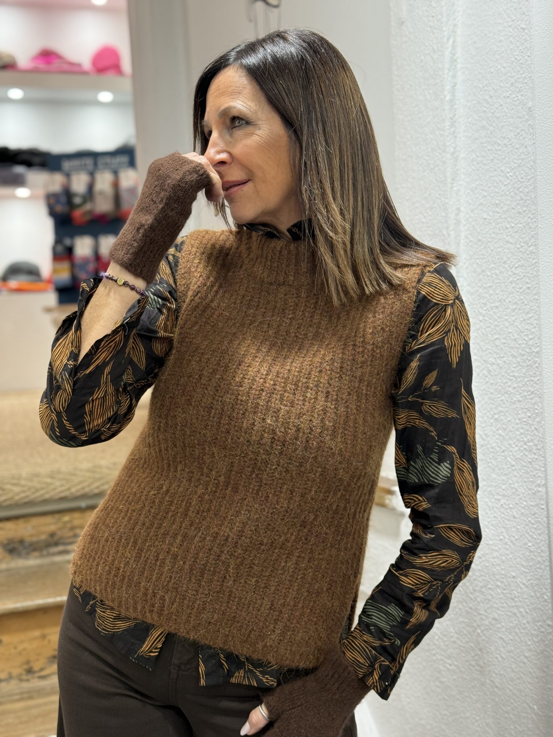Conseil look de Nathalie : Ce pull sans manches est idéal pour ajouter une touche cosy à un jean ou une jupe!