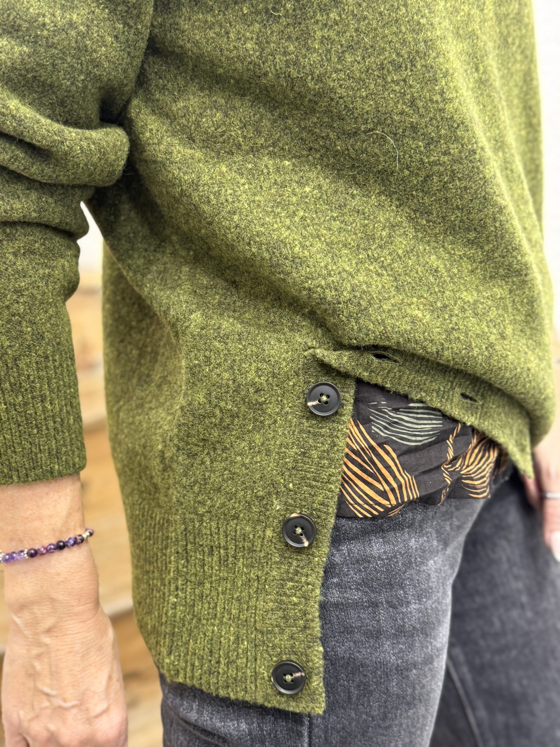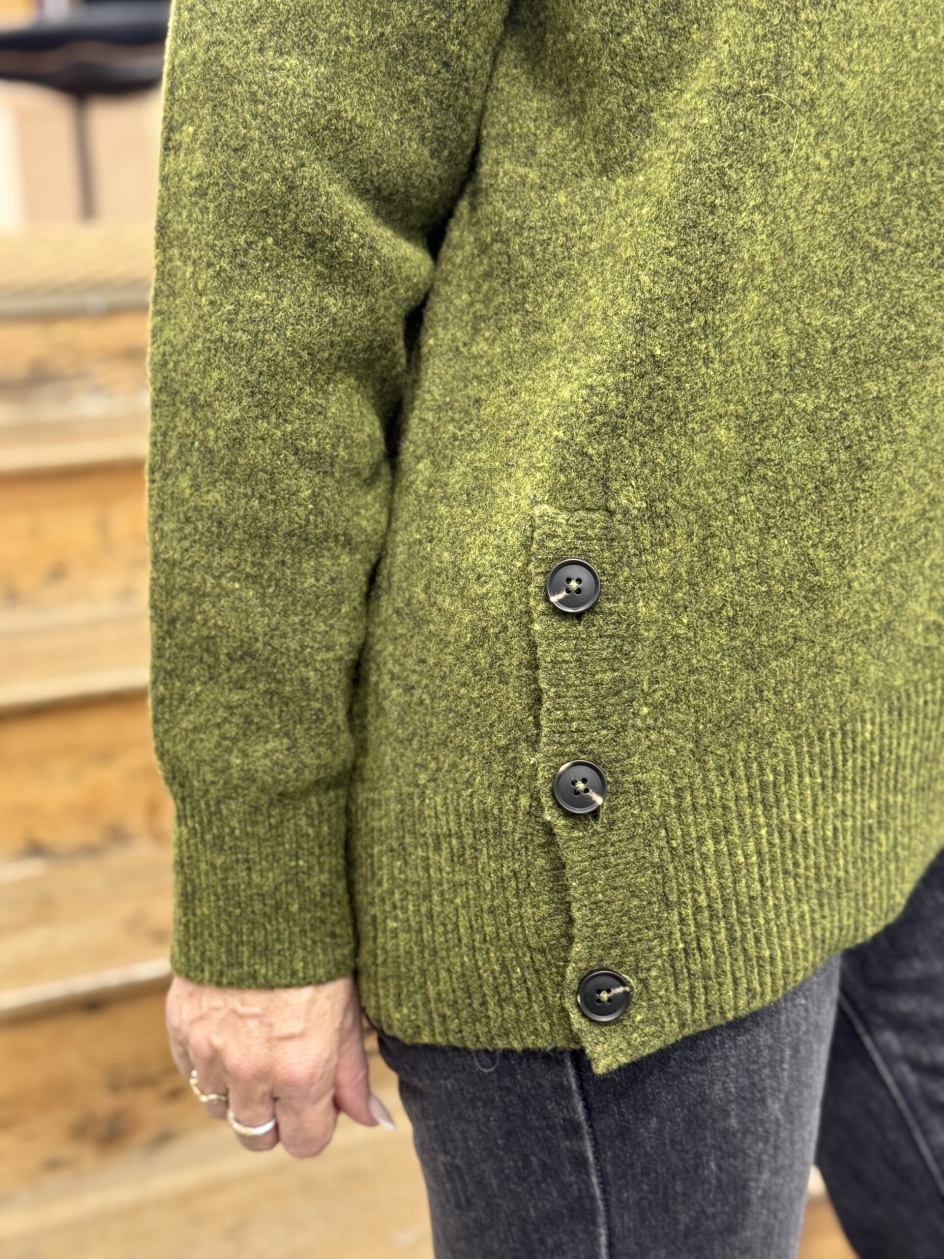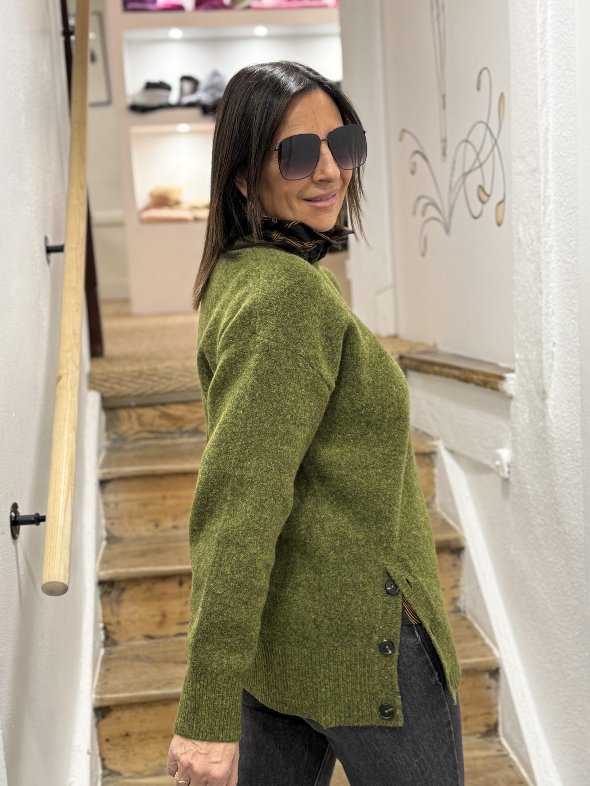 Ce pull en maille vert mousse est la pièce idéale pour allier confort et style au quotidien!