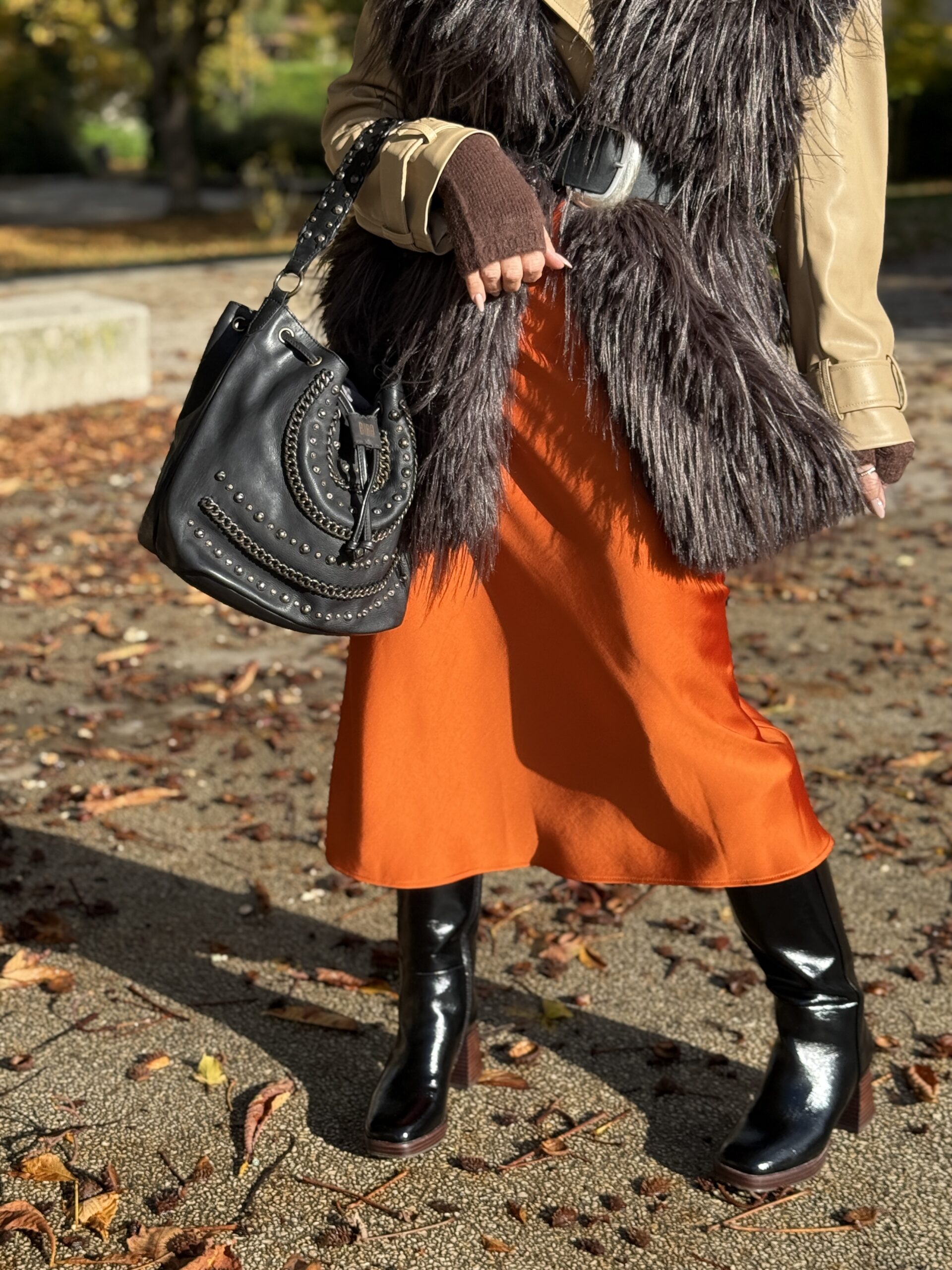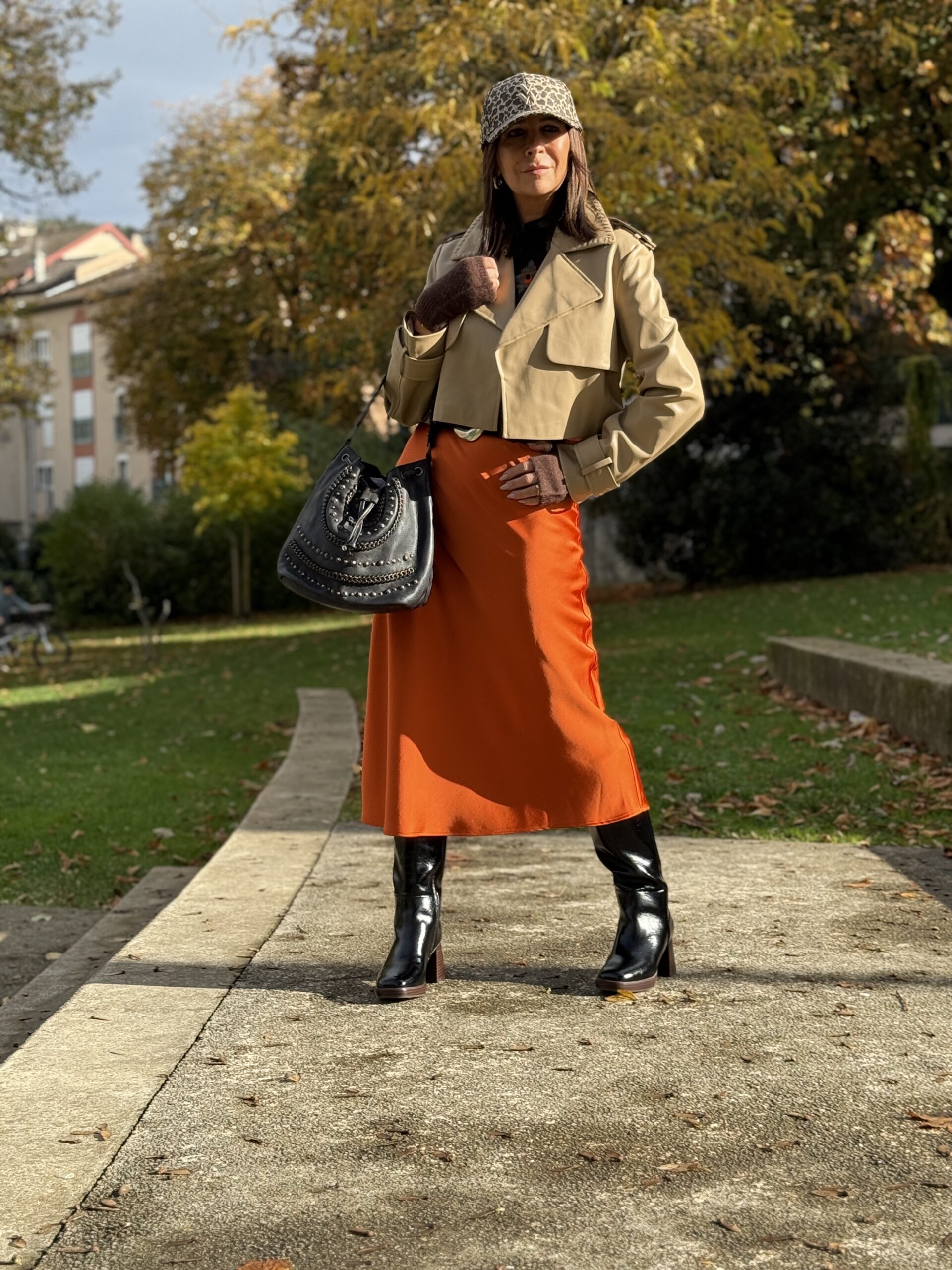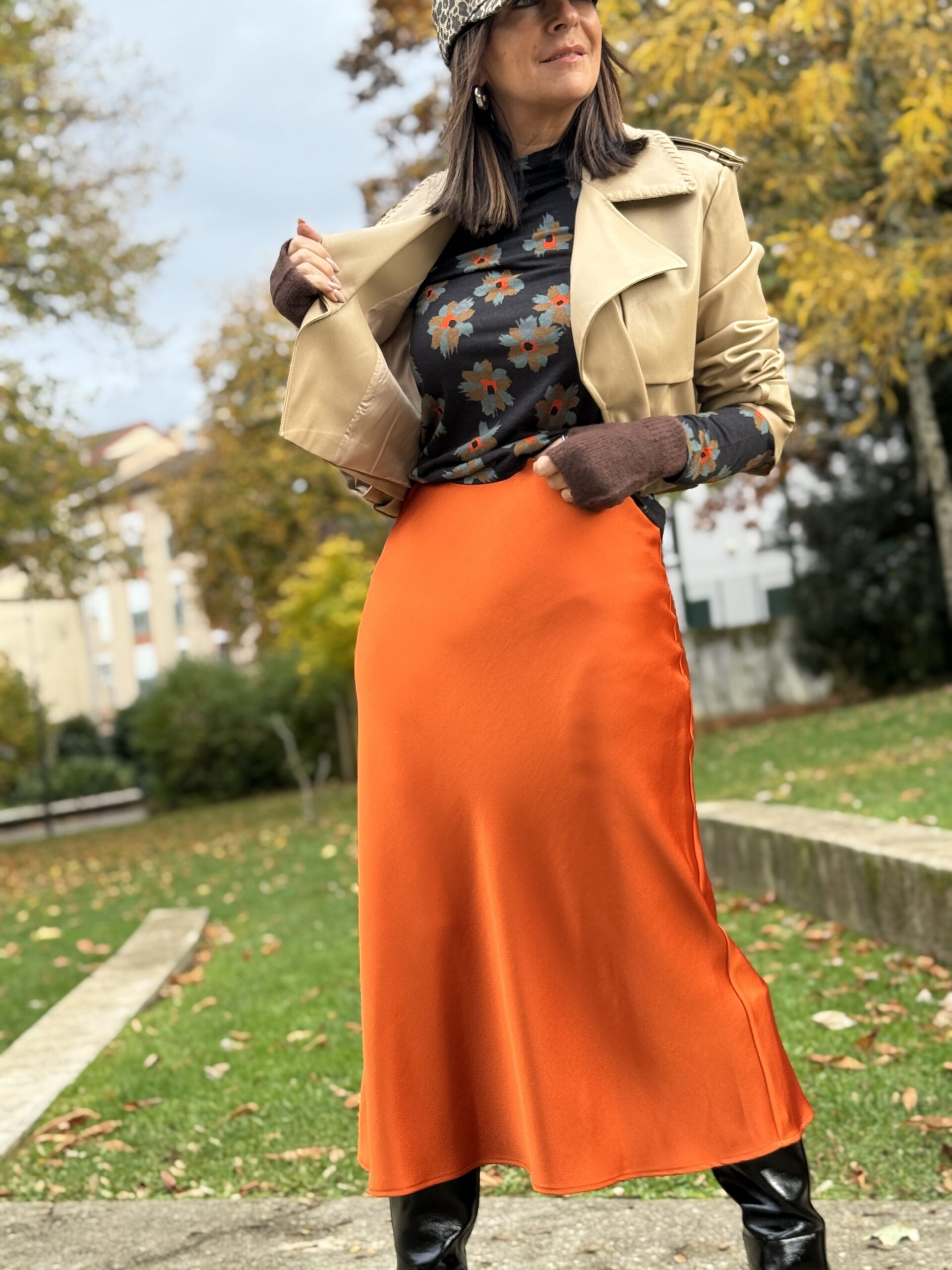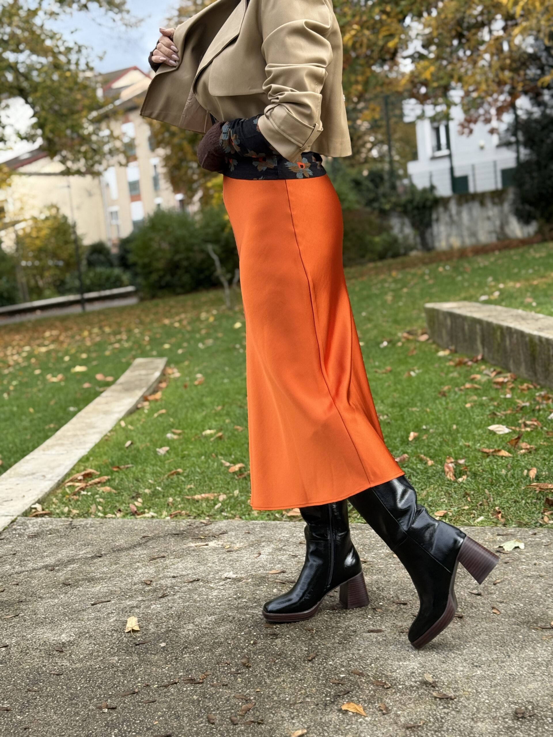 Apportez une touche de lumière à votre garde-robe avec cette jupe midi satinée au tombé fluide et élégant