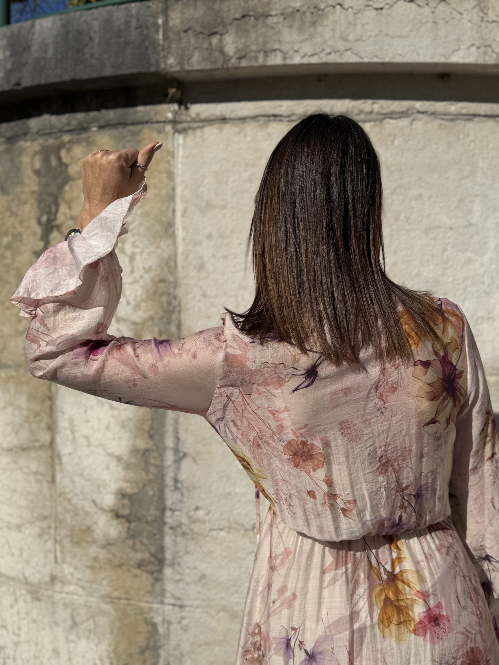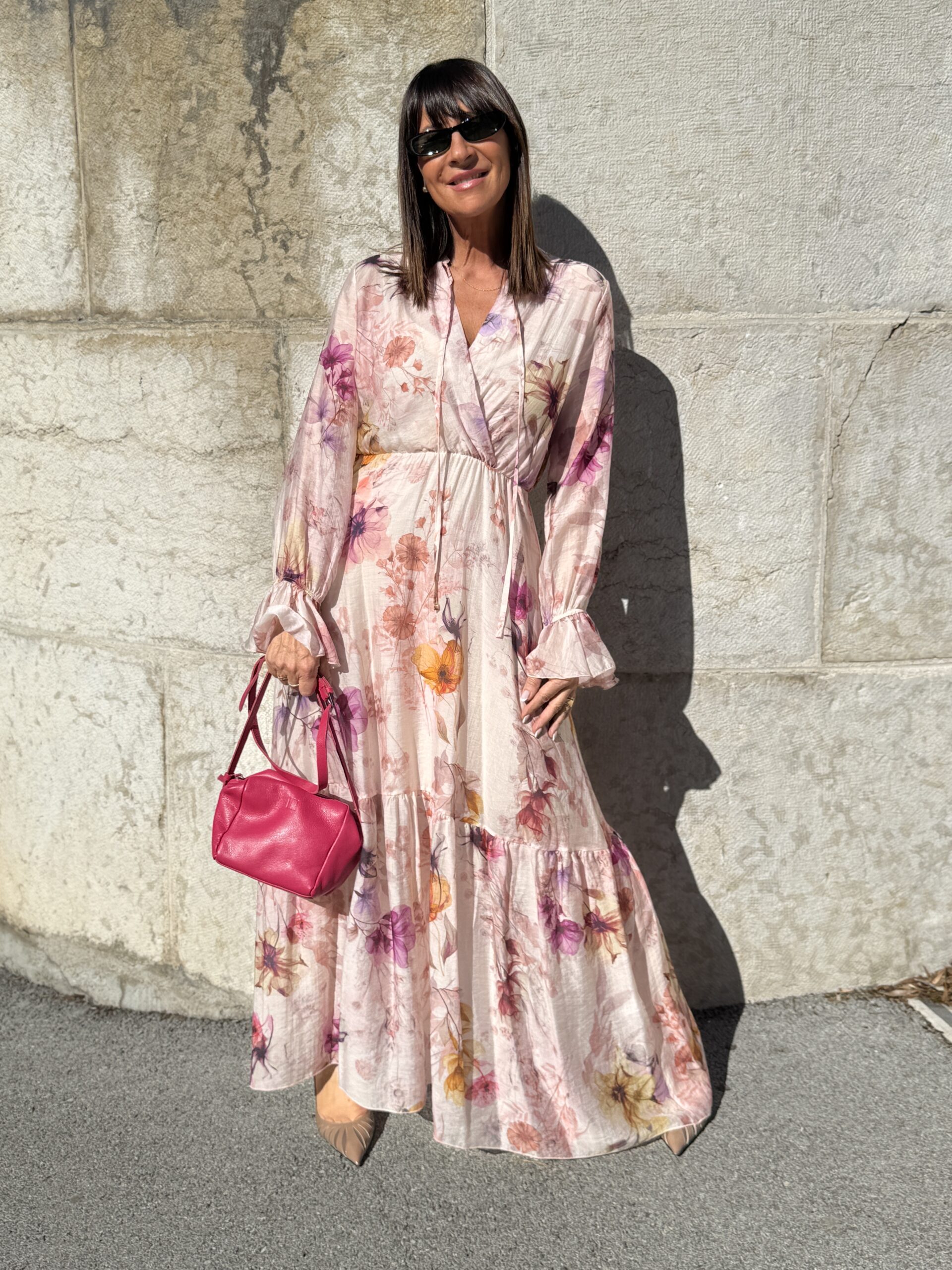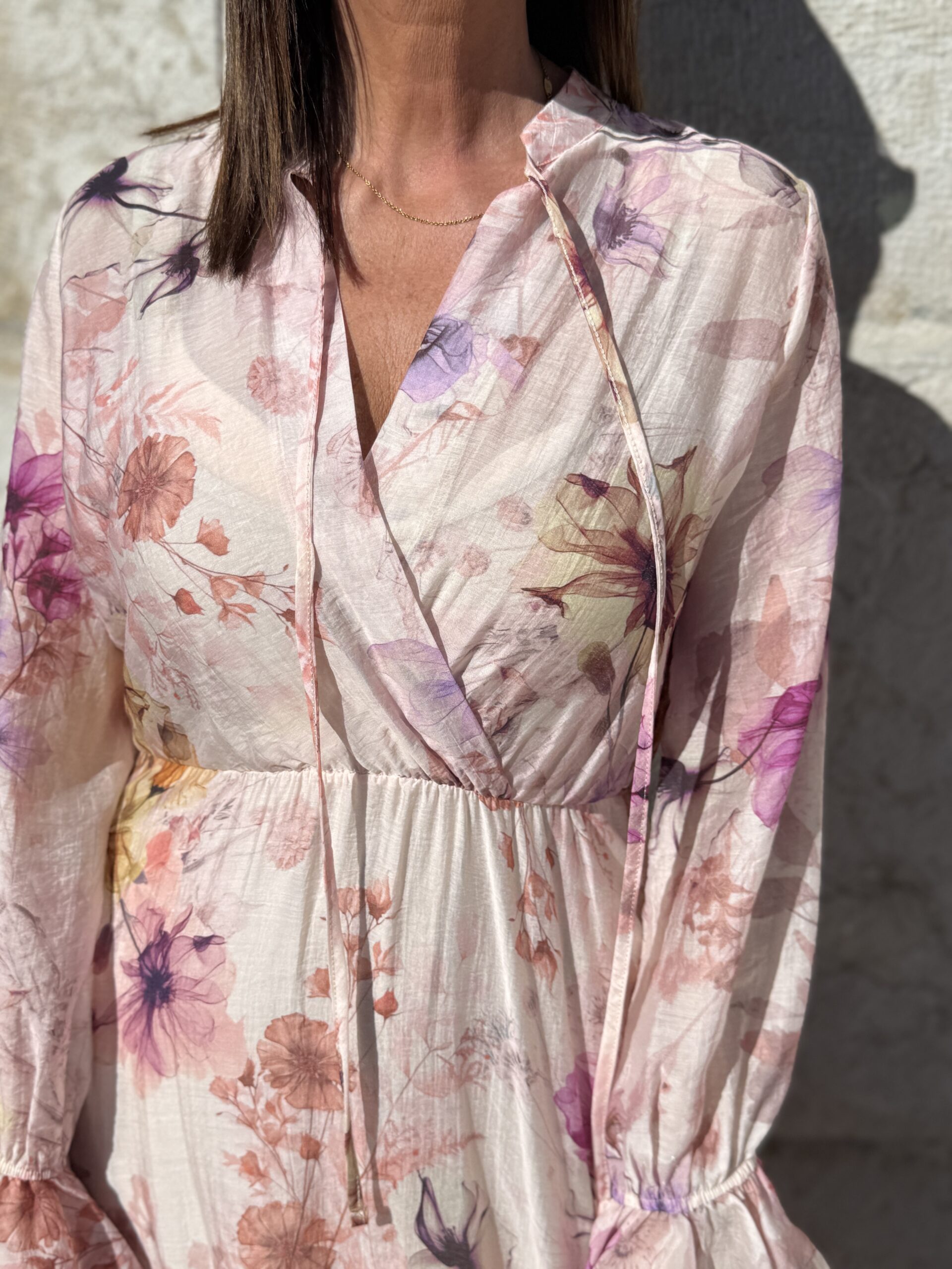 Trés jolie robe longue à imprimé floral délicat donc des tons pastel , pour un look romantique et féminin.
