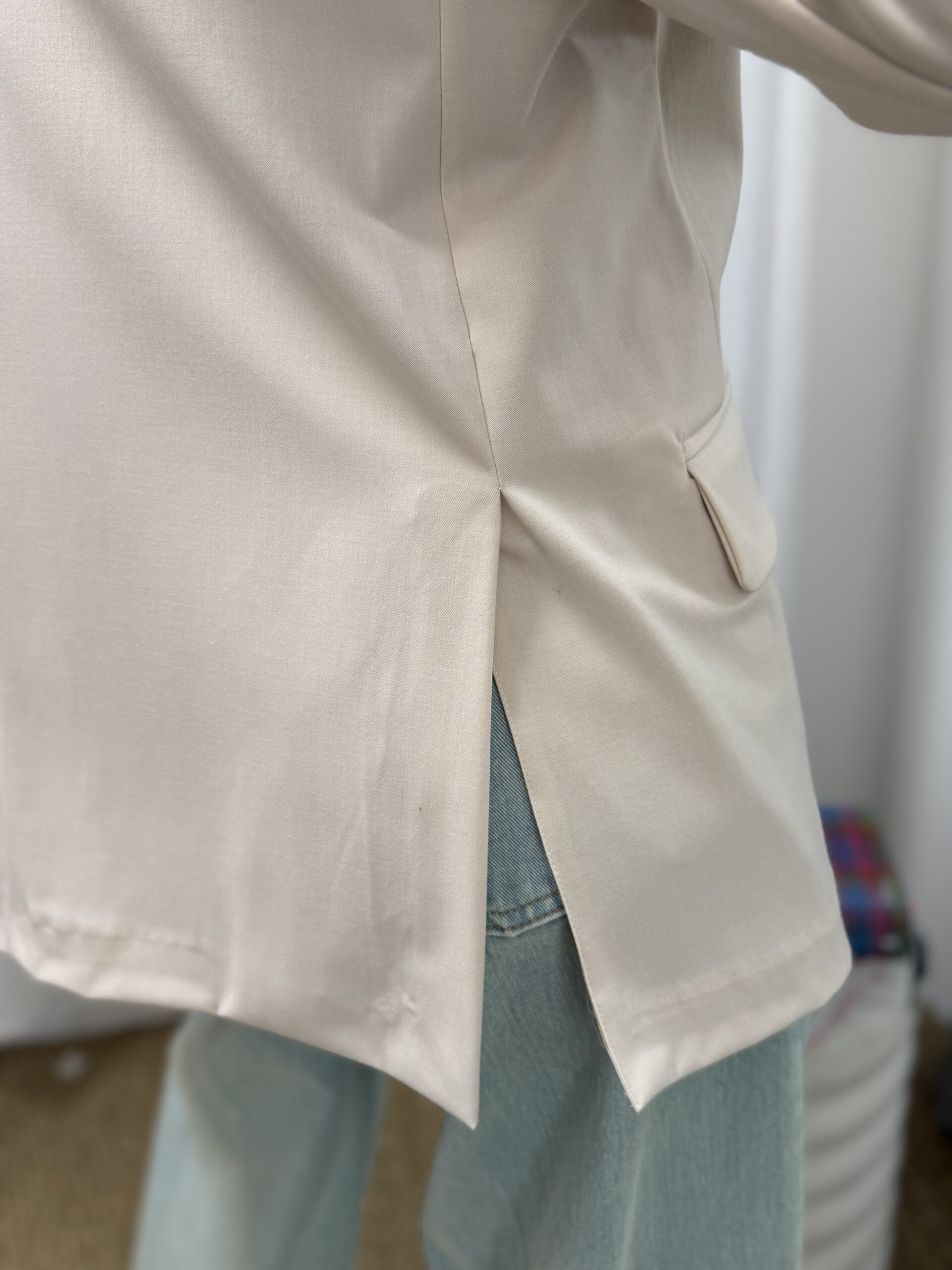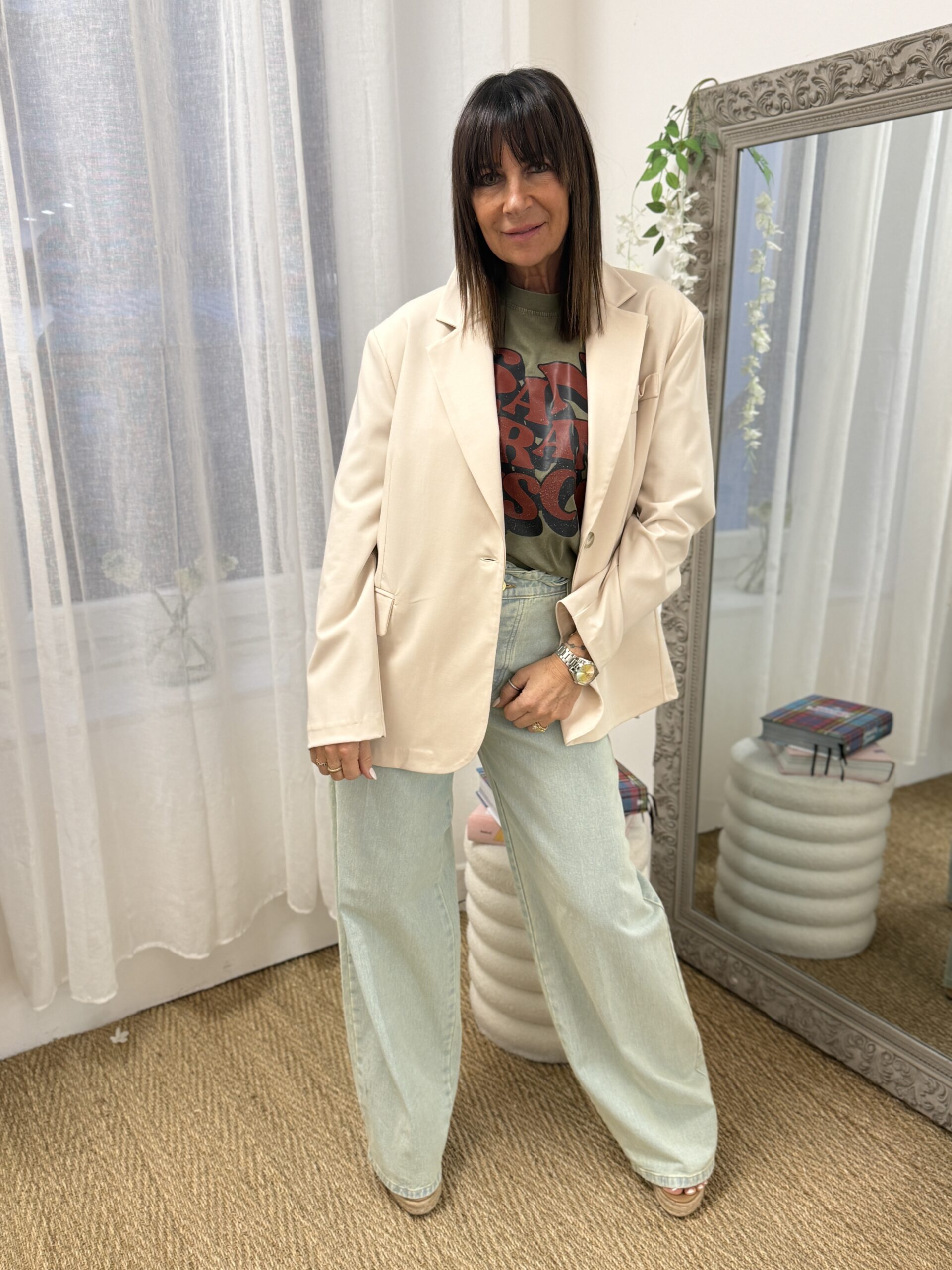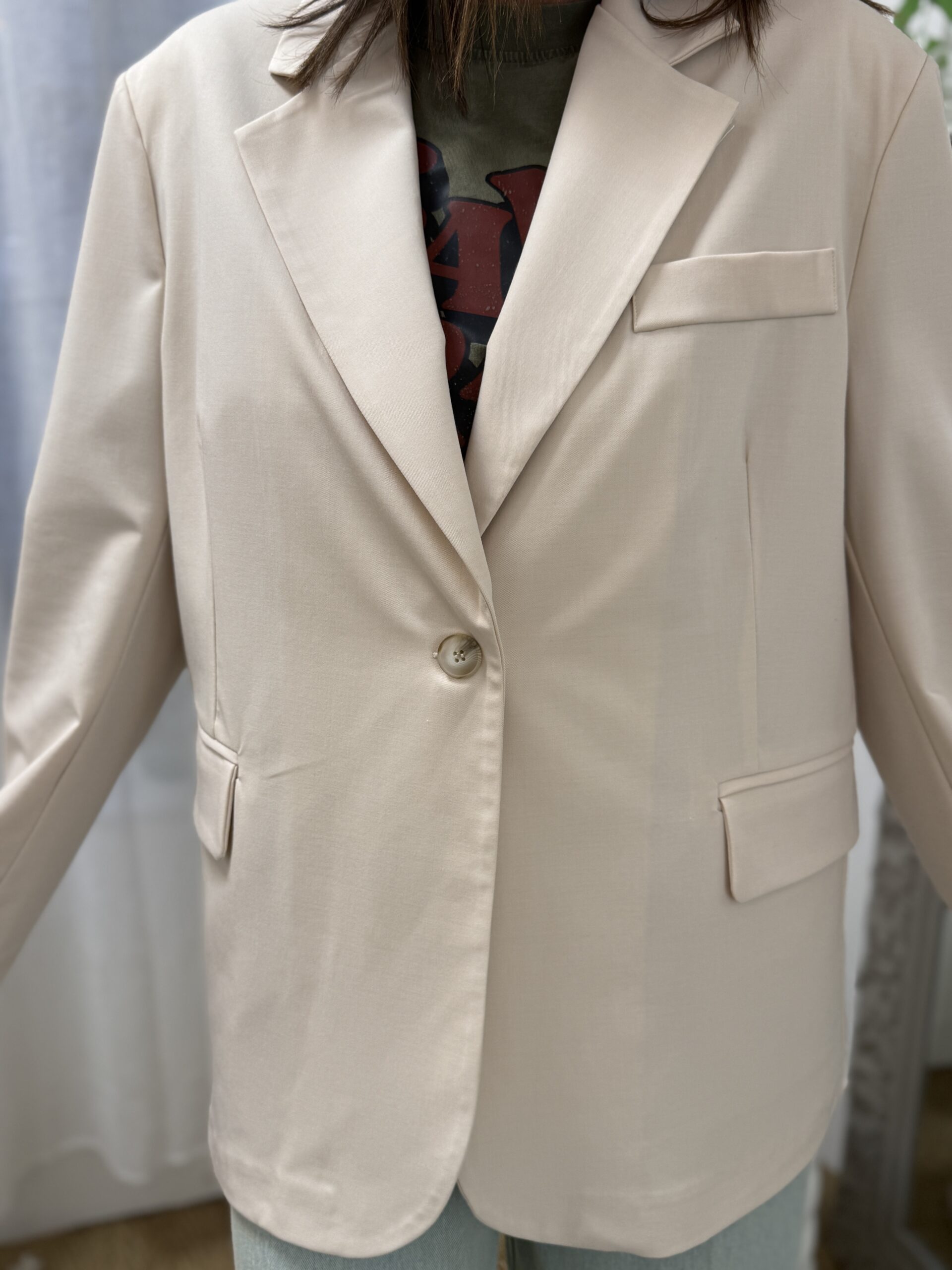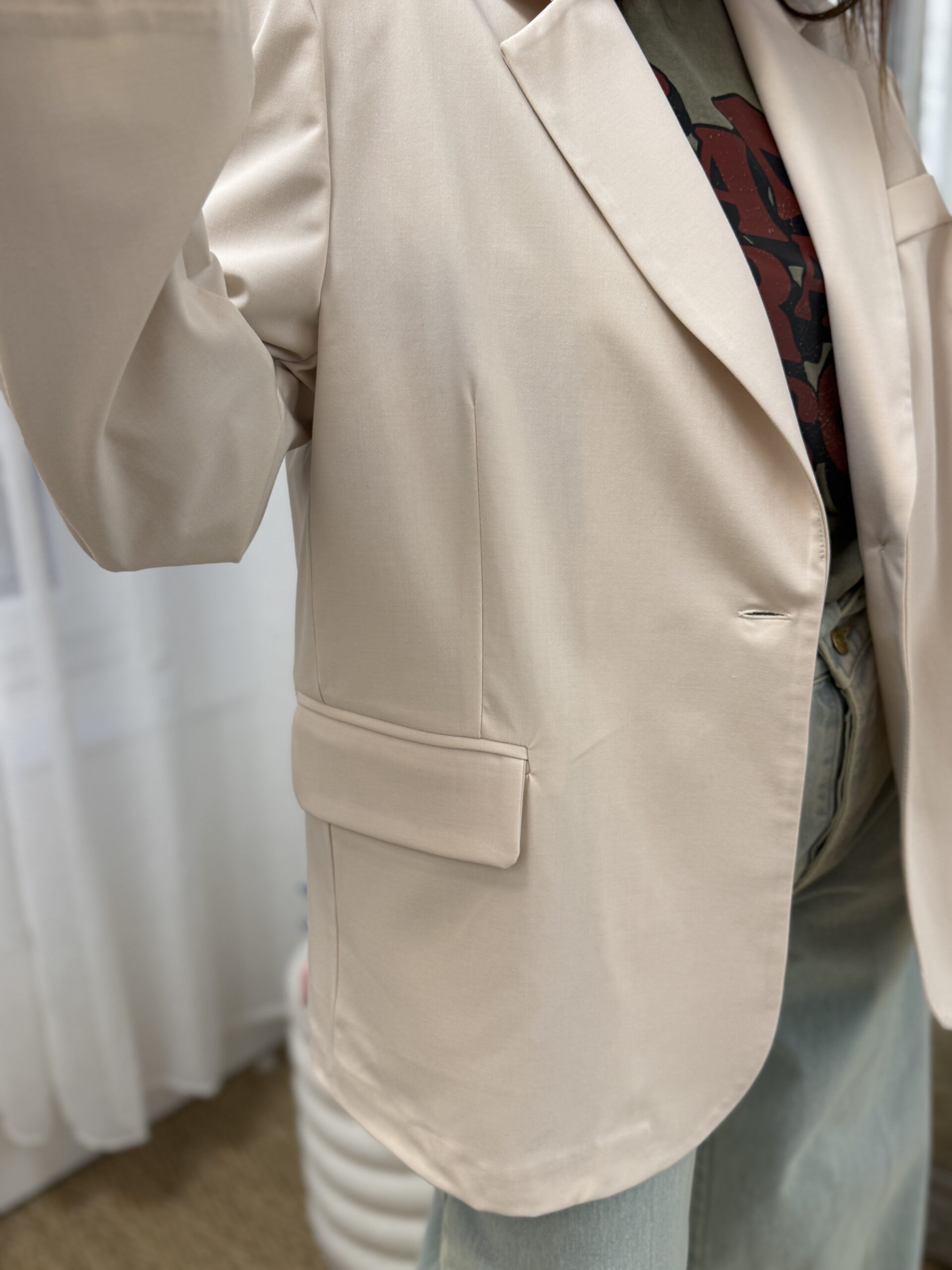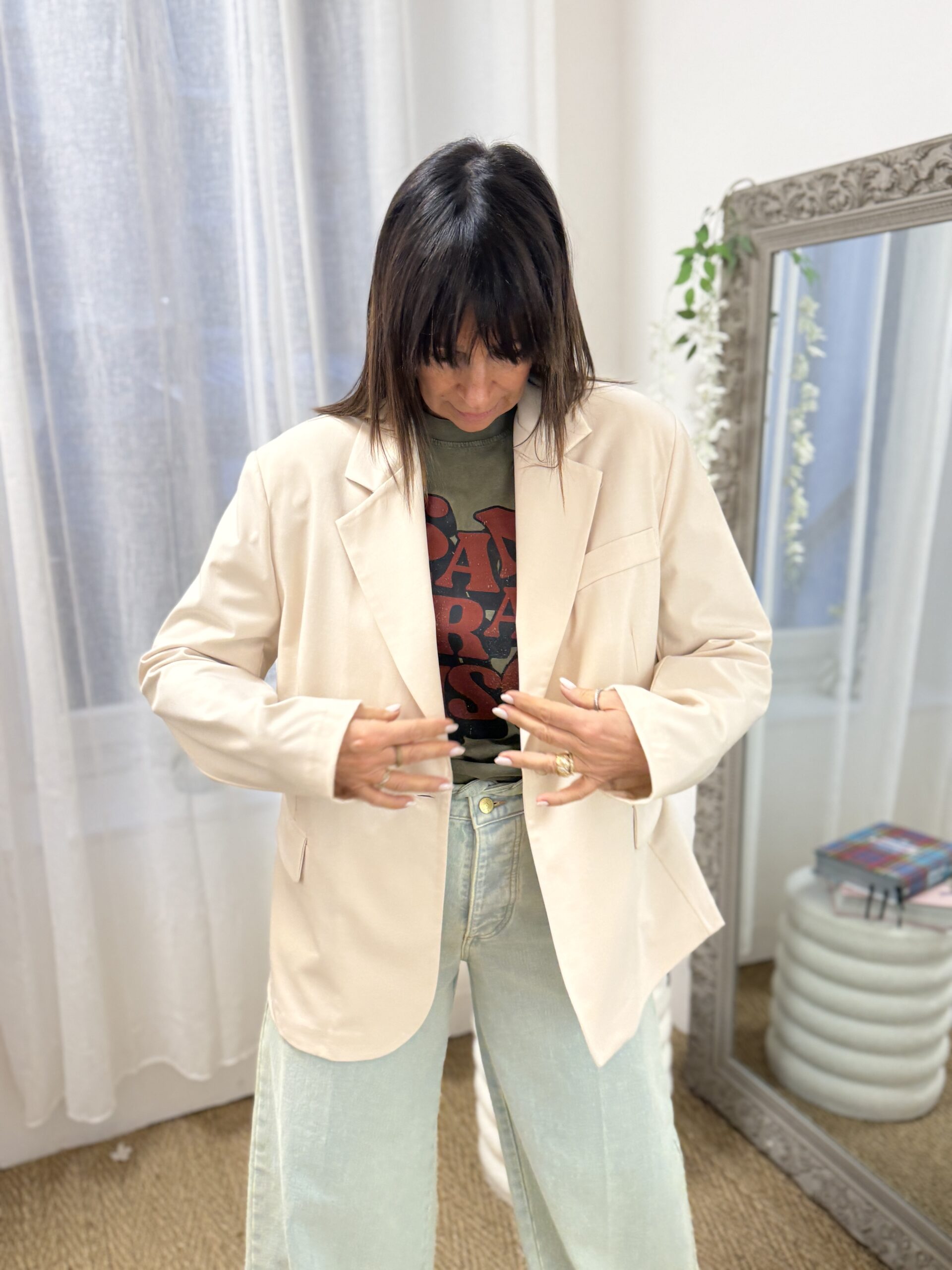 Conseil mode de Nathalie : Associez ce blazer beige avec un pantalon tailleur pour un ensemble professionnel ou portez-le avec un jean et T-shirt pour une allure moderne et décontractée.