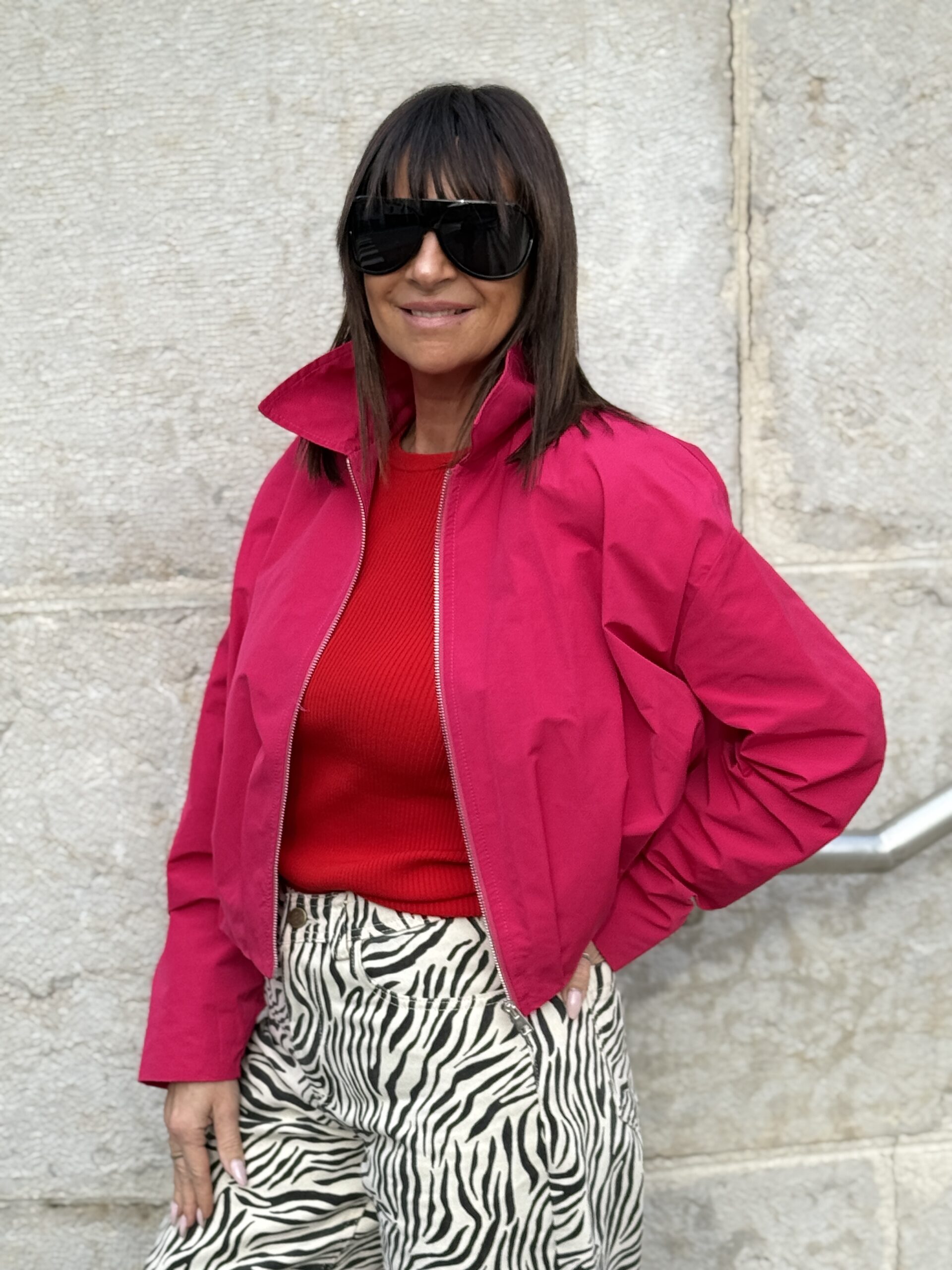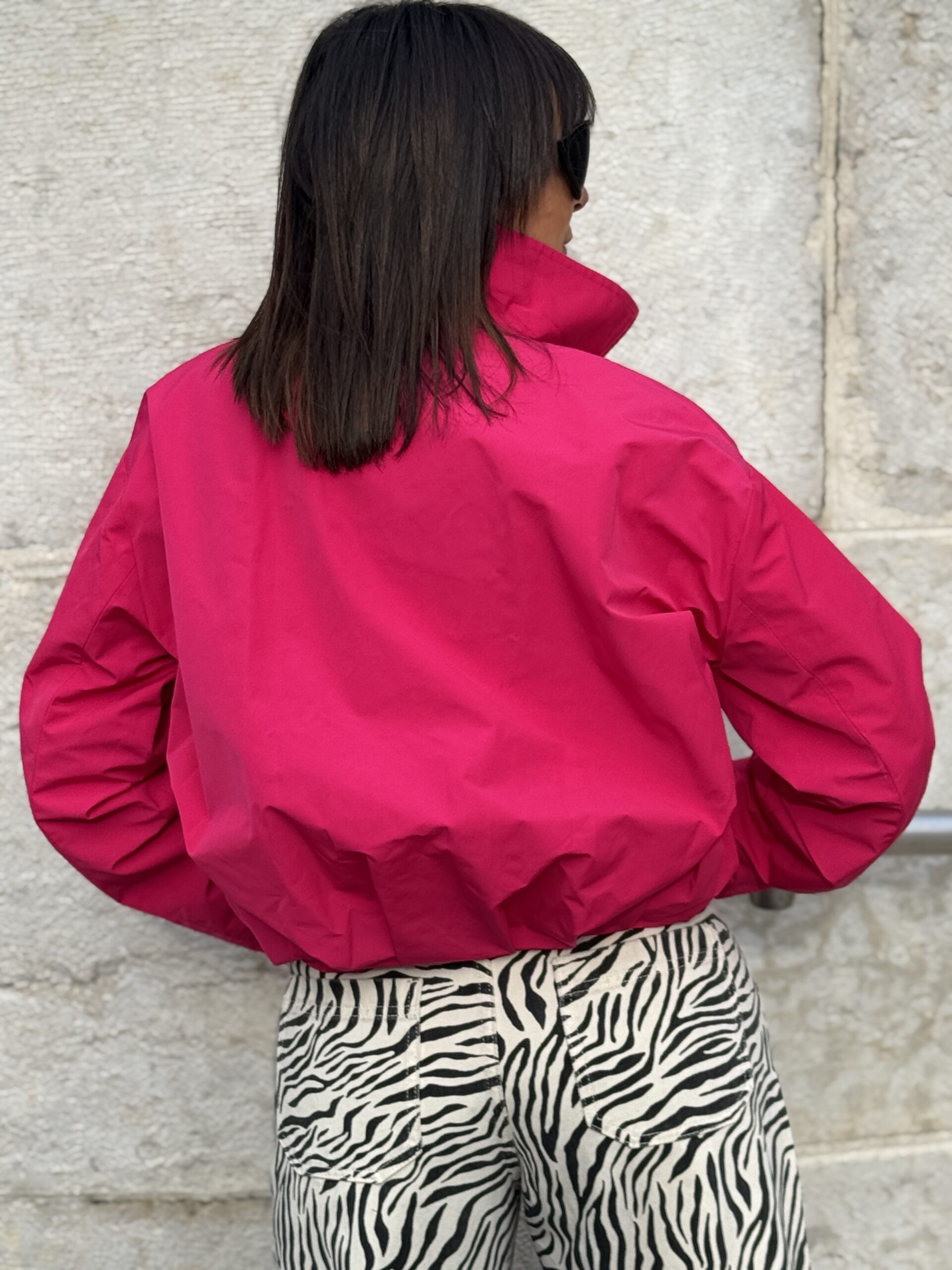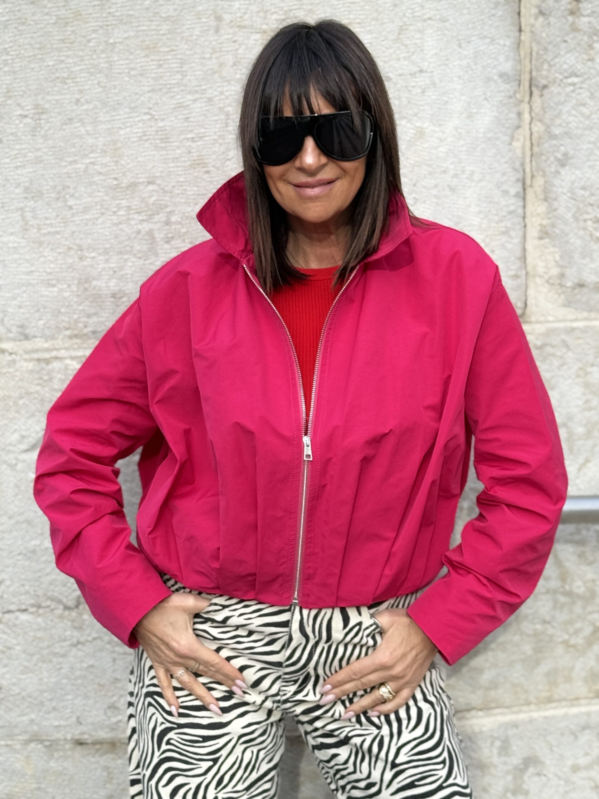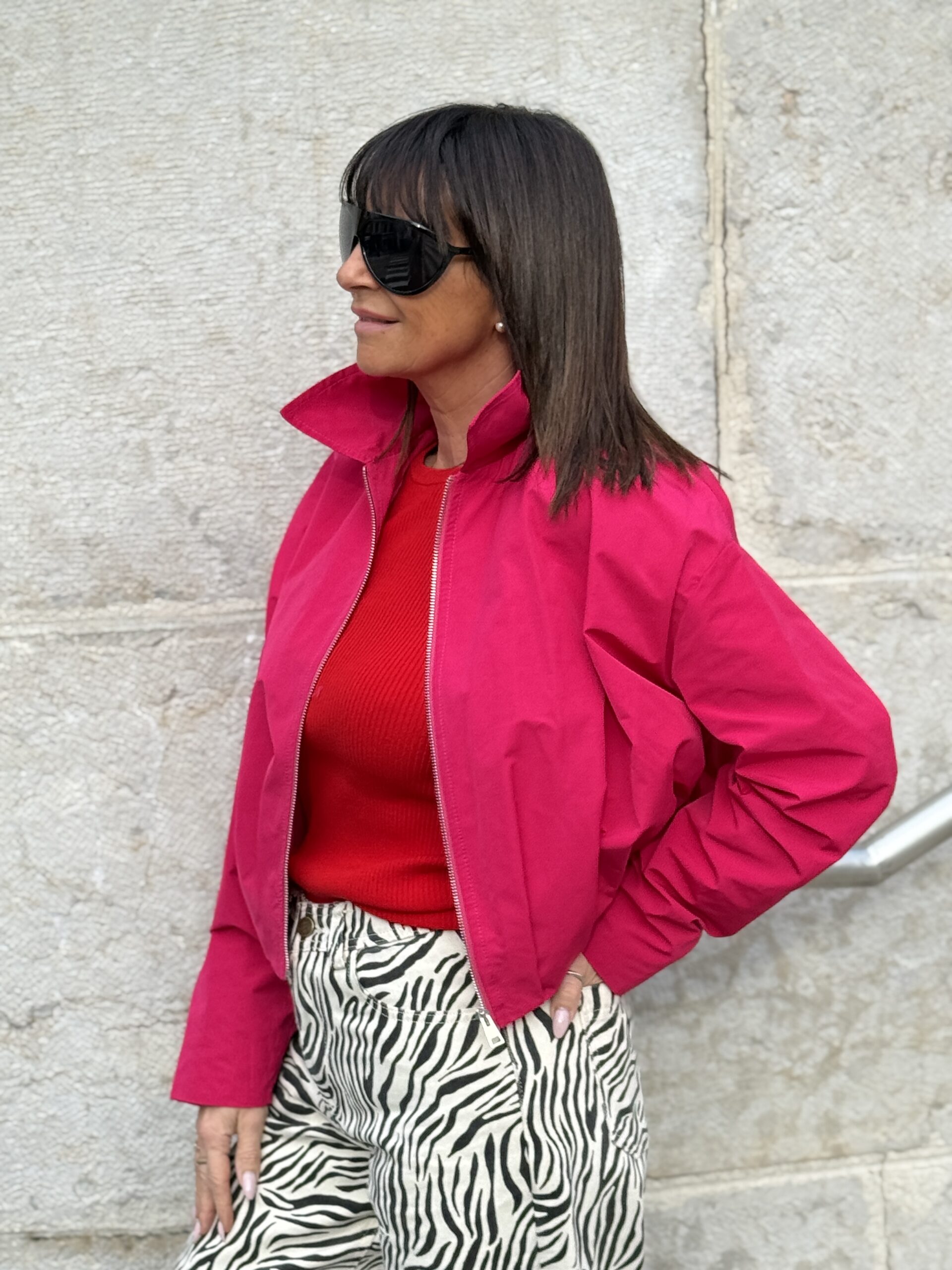Affirmer votre style avec le bomber impérial, une pièce forte au design structuré et contemporain. Sa couleur fuchsia vibrante et sa coupe architectural en font un incontournable pour dynamiser n’importe quelle silhouette