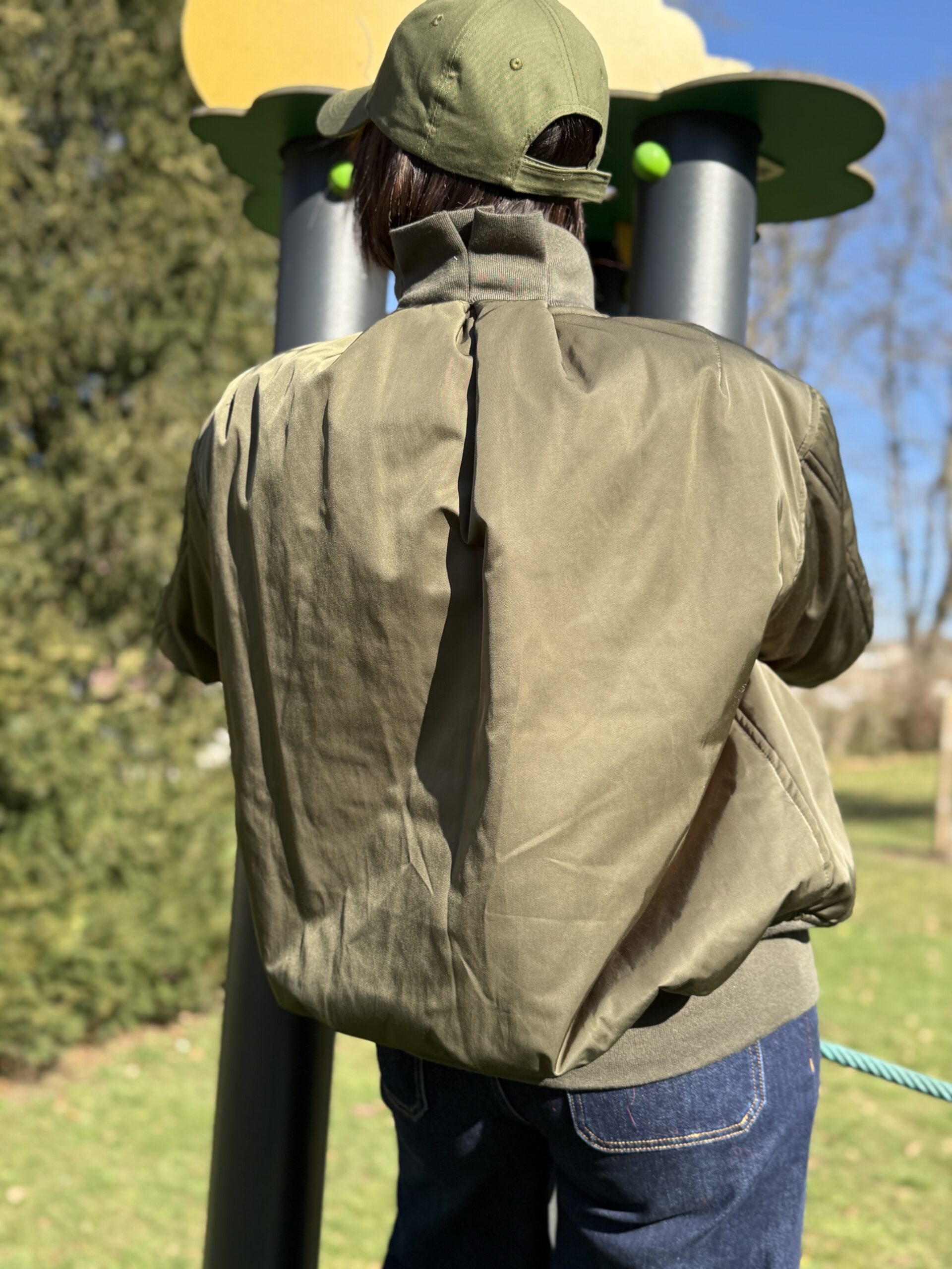 Bomber revisité au design contemporain. Ce modèle joue sur un effet de superposition structuré par une silhouette moderne et affirmée. Sa coupe ample est légèrement courte en fait une pièce forte. Idéal pour les looks urbains.