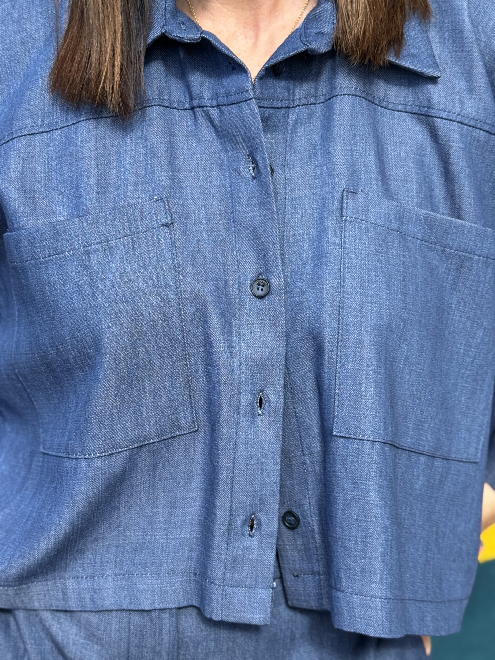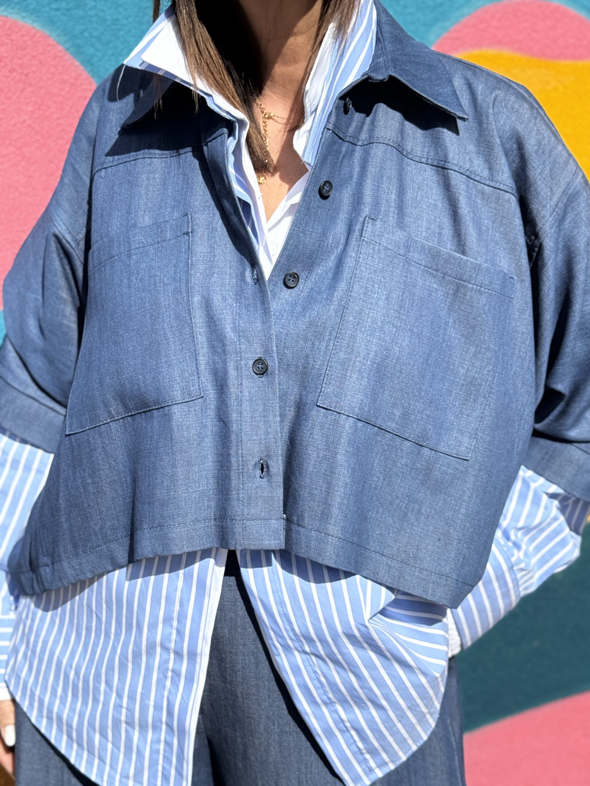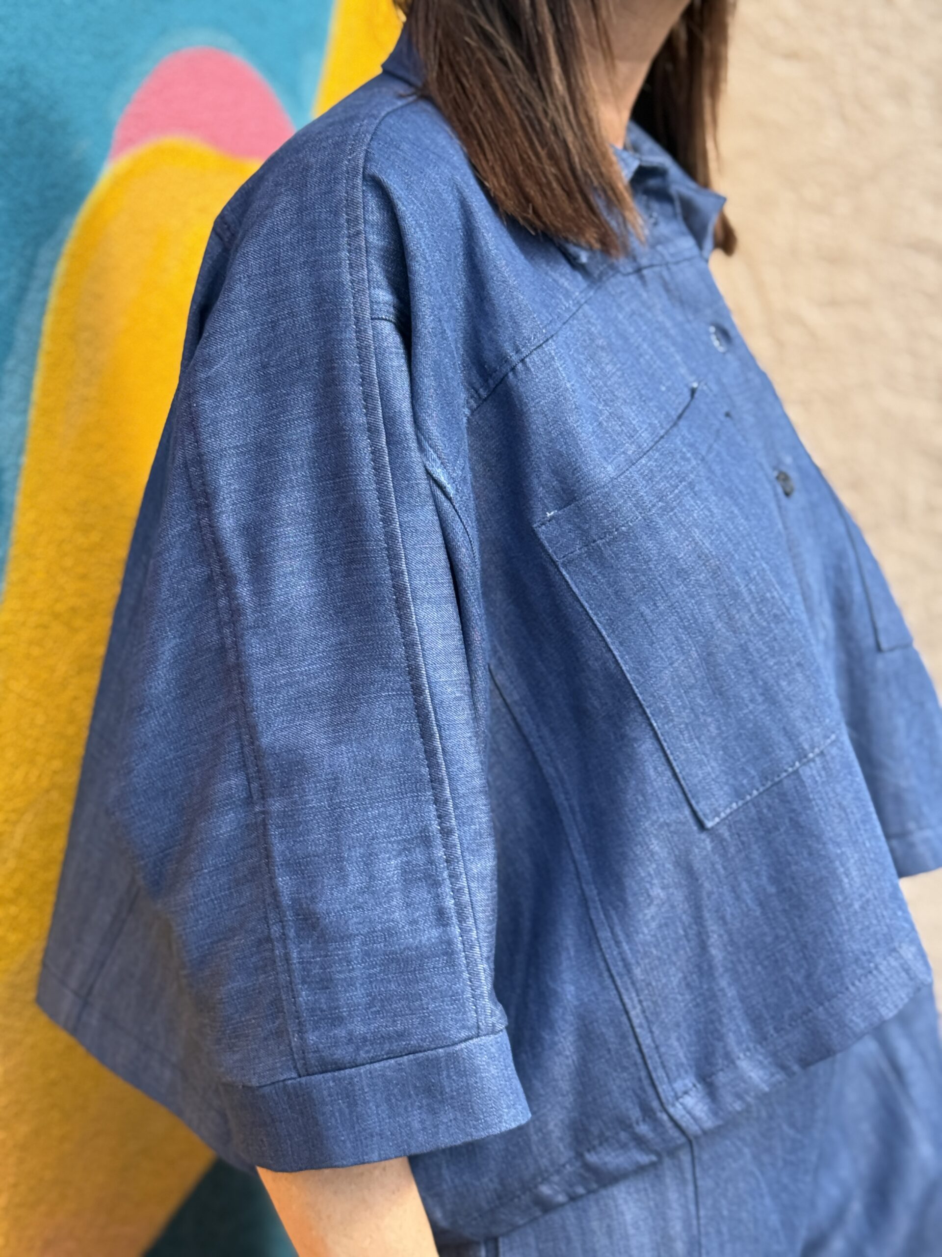 Chemise courte en denim léger, revisitée dans une coupe ample et moderne. Son volume oversize et sa longueur raccourcie créent une silhouette contemporaine et facile à porter. Une pièce minimaliste et tendance, parfaite pour un look casual chic.