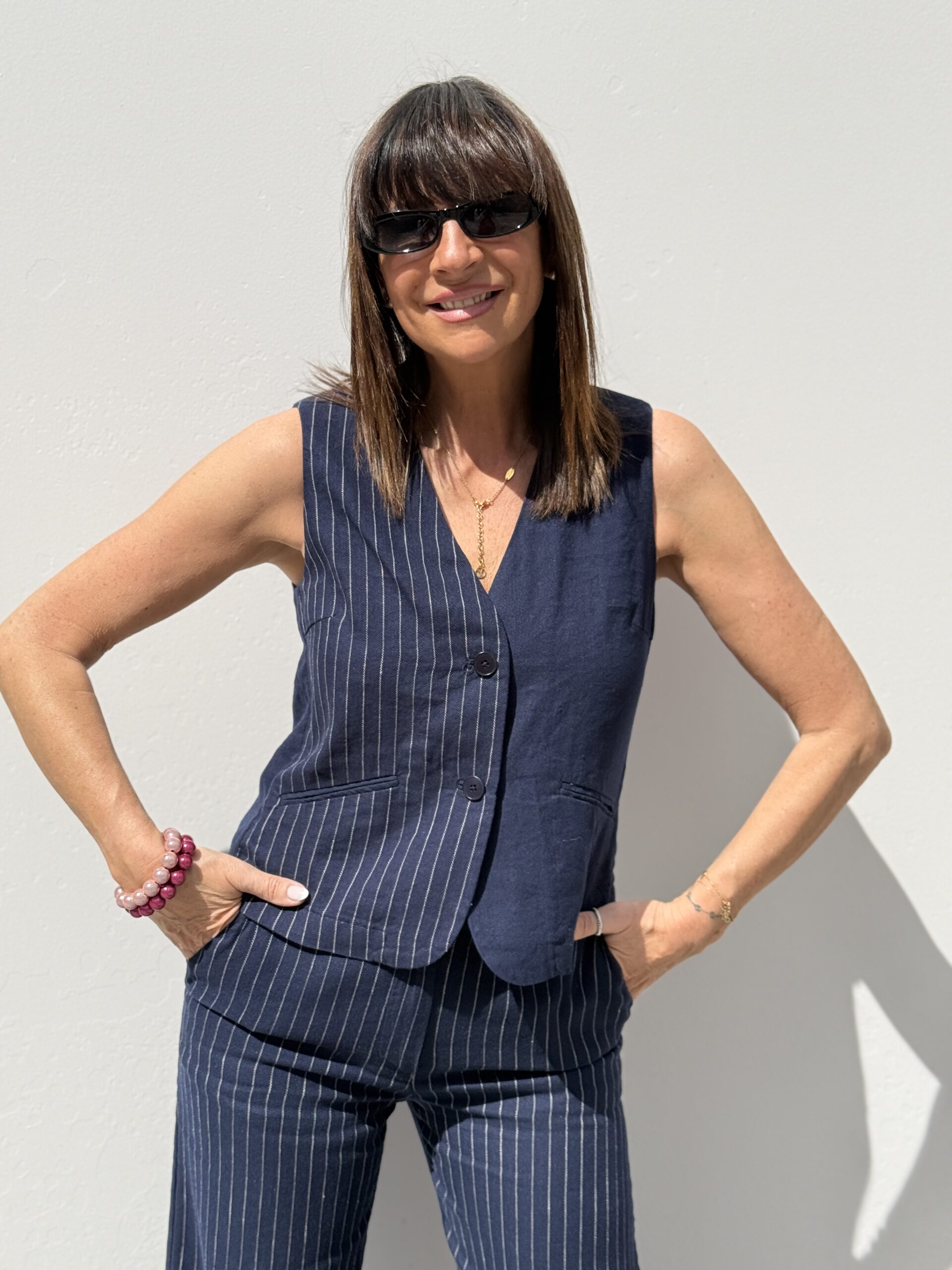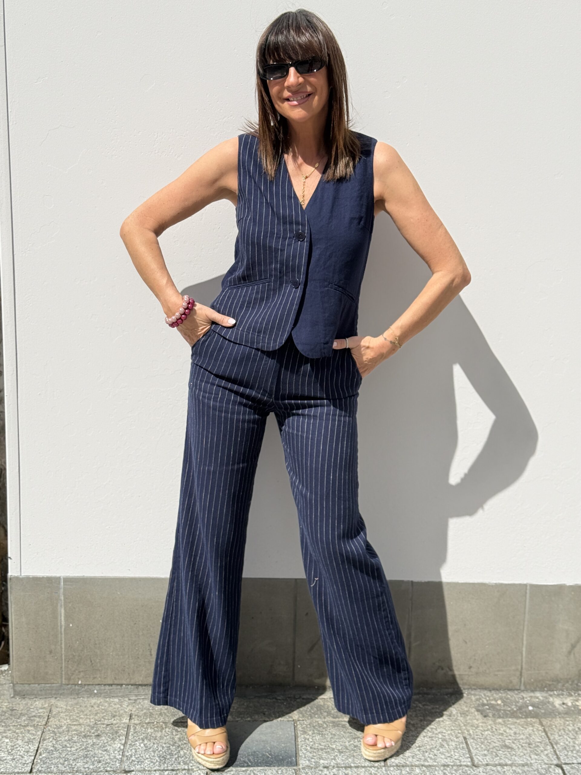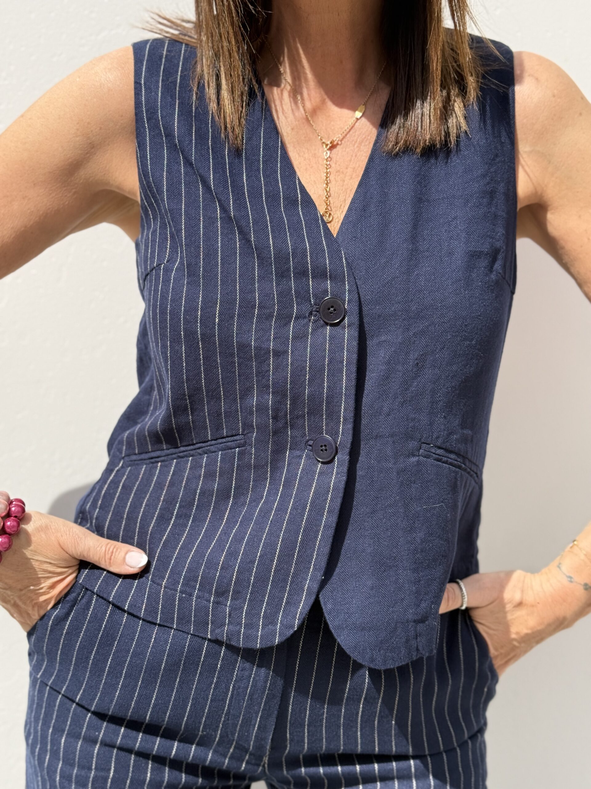 Conseil mode de Nathalie : Porter-le à même la peau avec le pantalon assortie