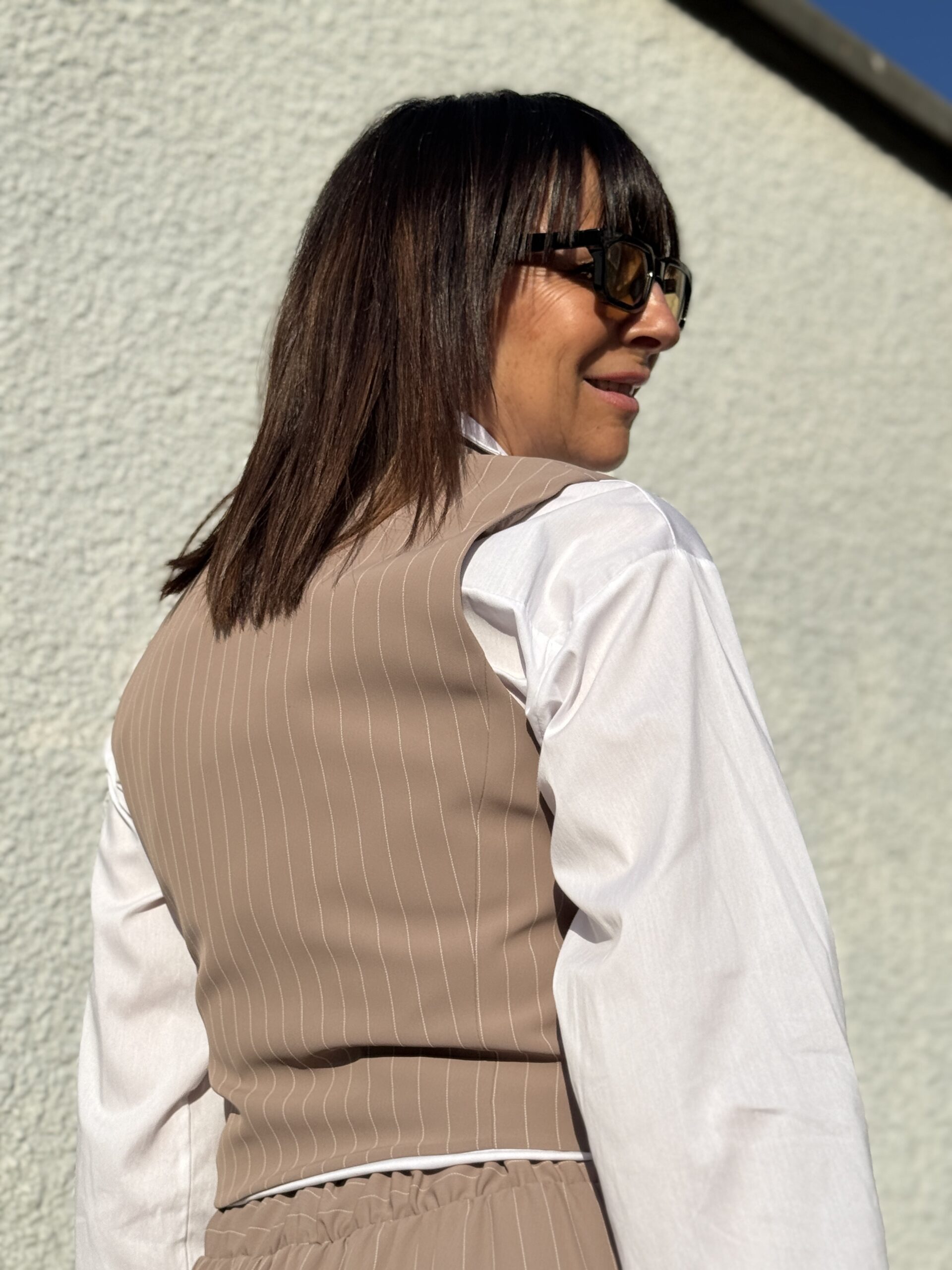 Gilet de tailleur sans manches à fines rayures un intemporel de votre garde robes !