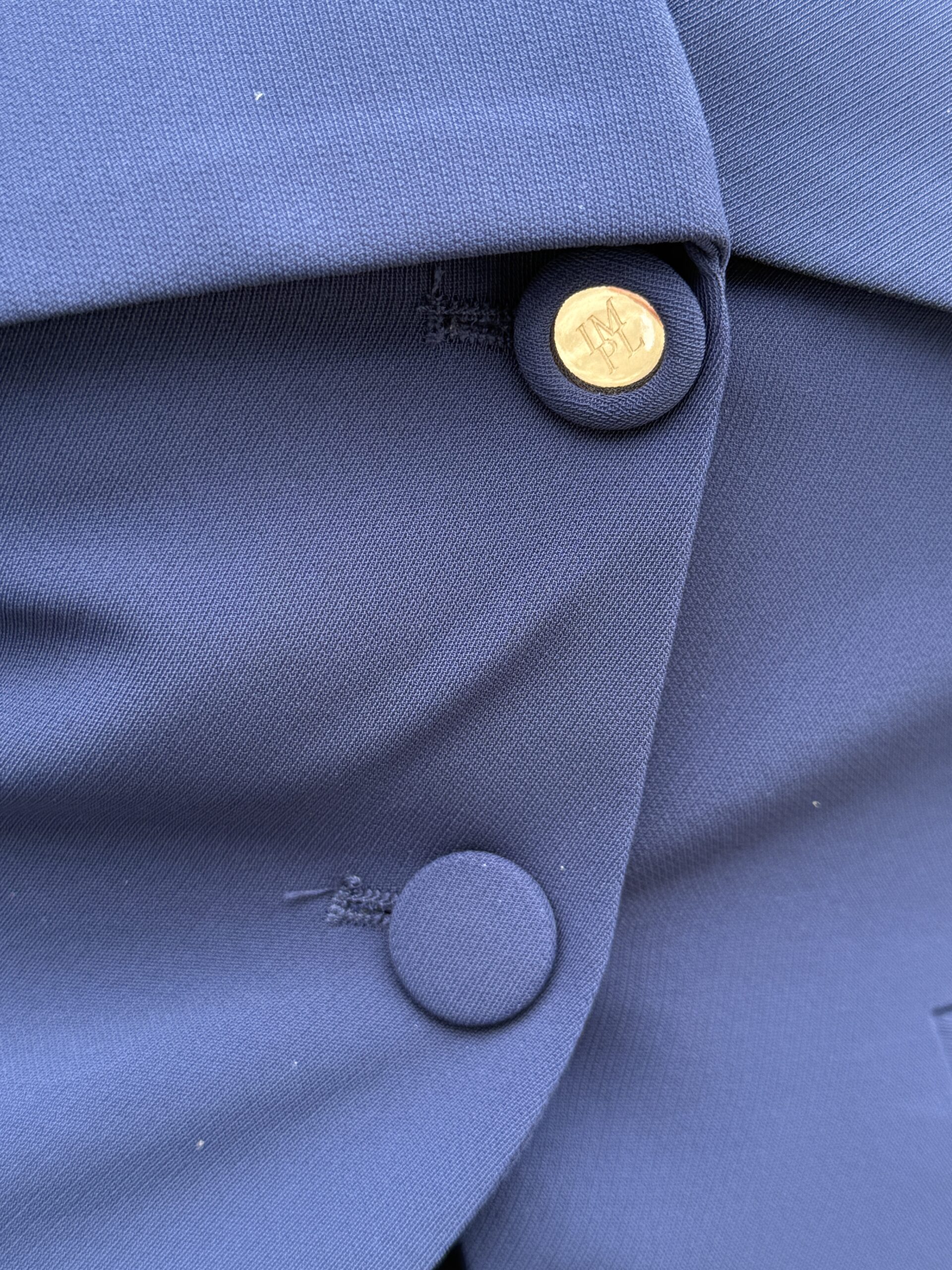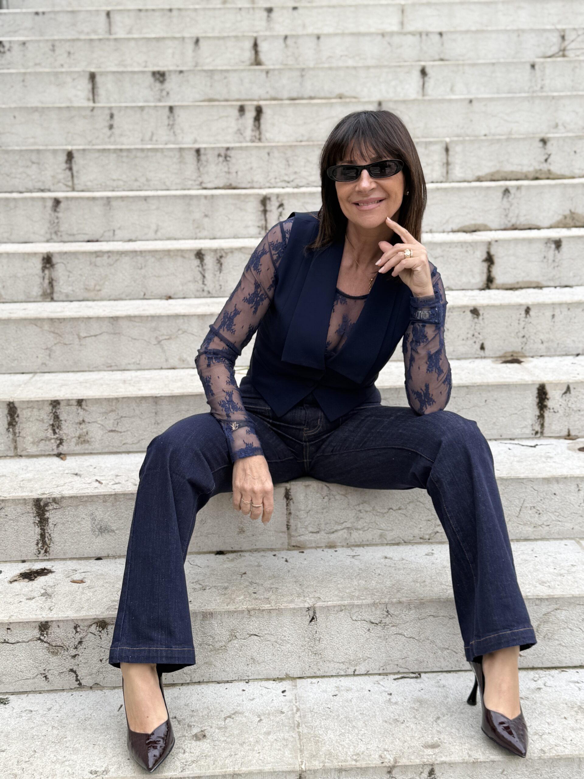 Conseil mode de Nathalie : A porter avec un pantalon tailleur marine ou ciel, une chemise blanche ou directement à même la peau et des bottines pour un look chic et affirmé.