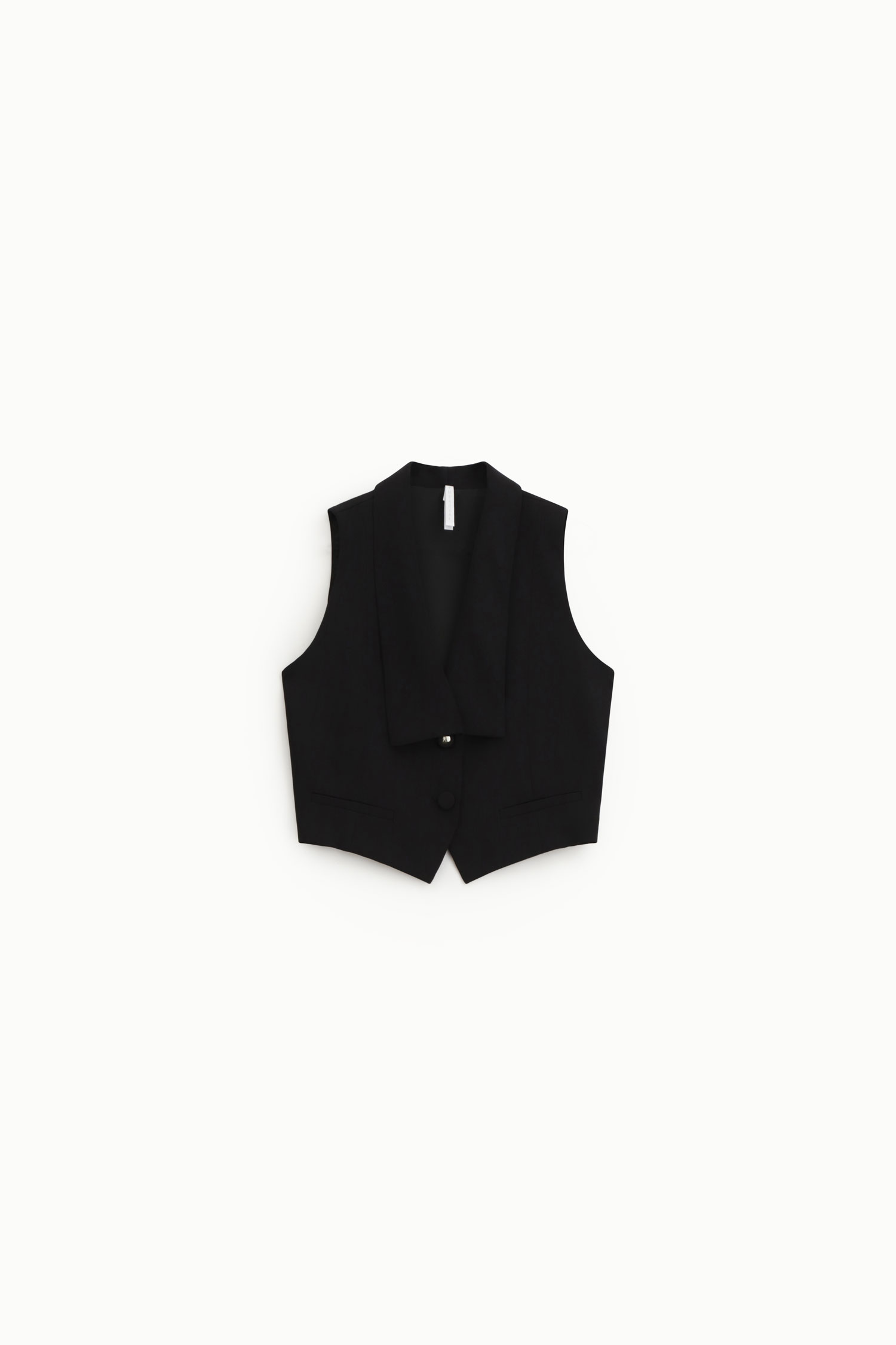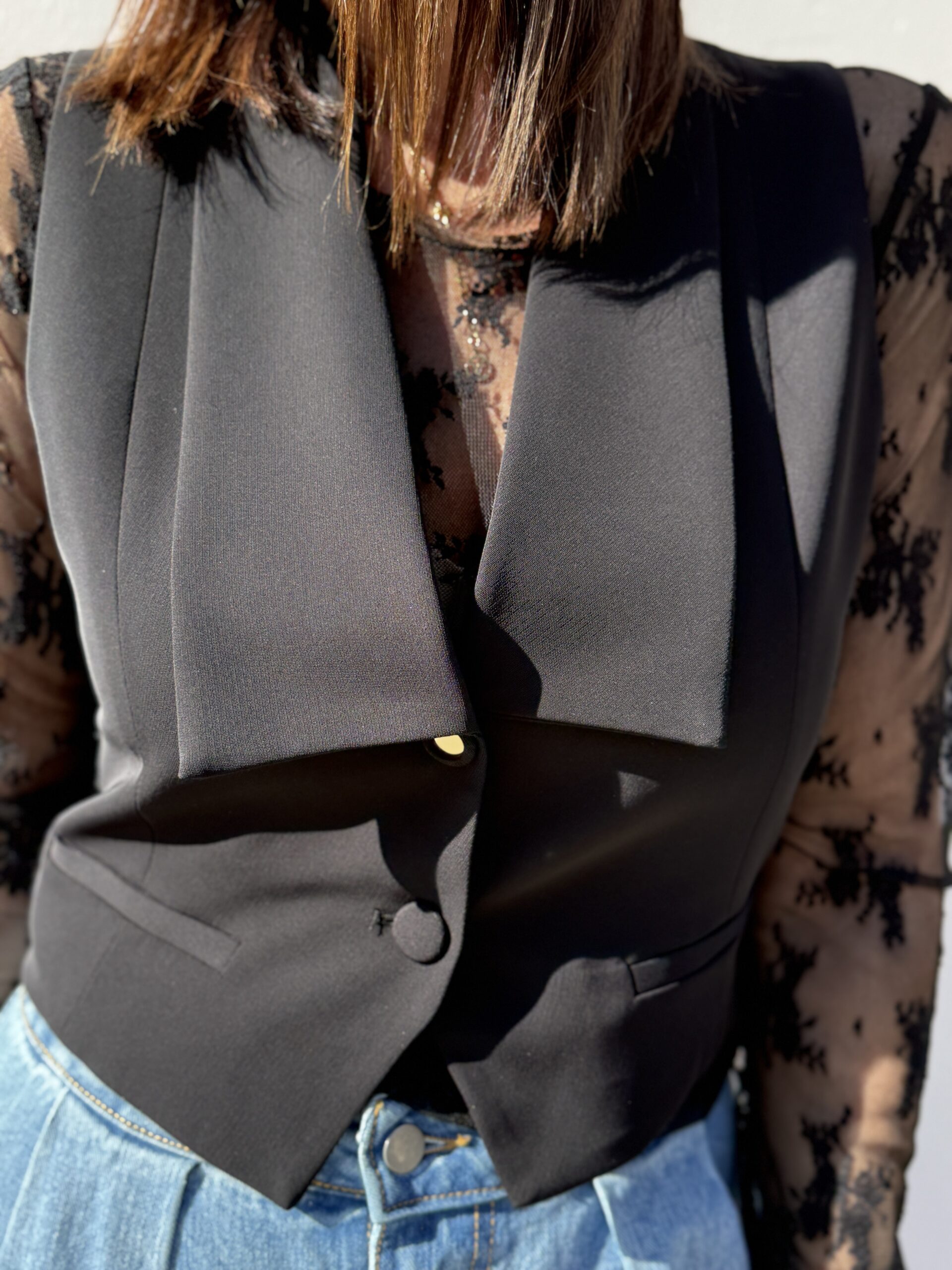 Gilet de tailleur sans manches noir à la coupe structurée et élégante.