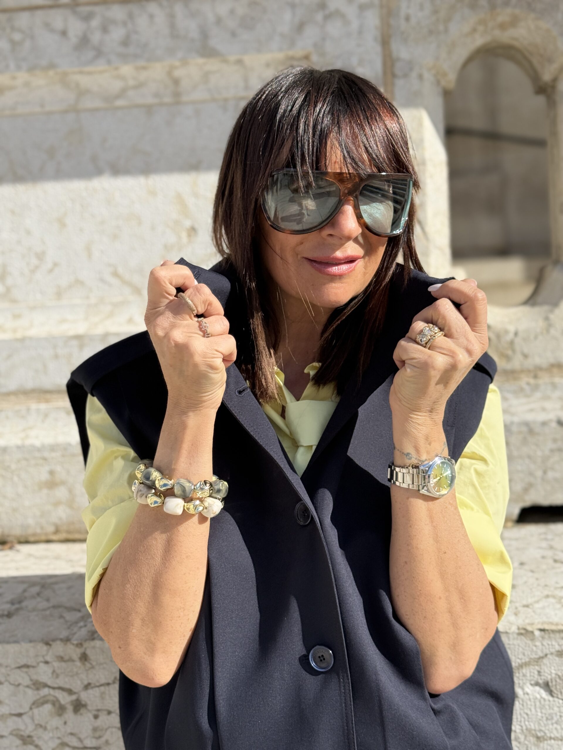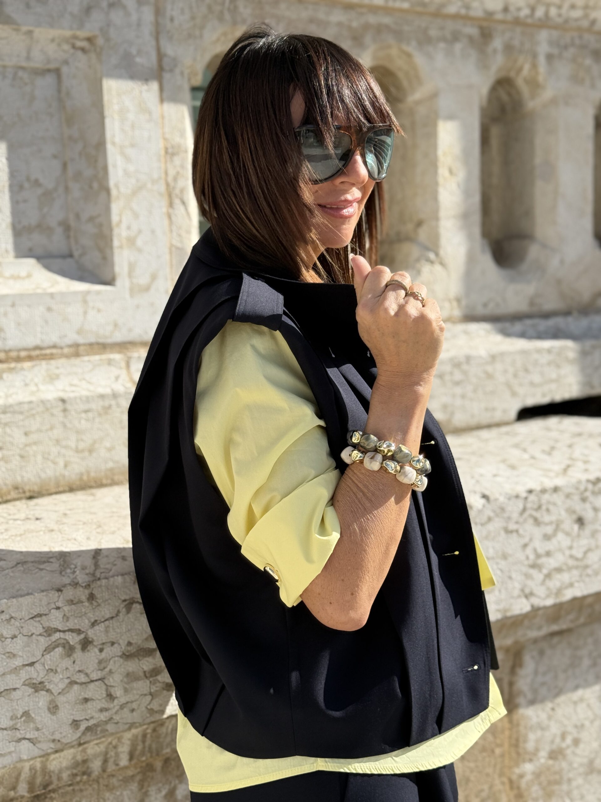 Conseil mode de Nathalie : A porter seul comme top statement ou en superposition sur une chemise, ou un pull fin. S’associe parfaitement avec un pantalon tailleur ou une jupe épurée