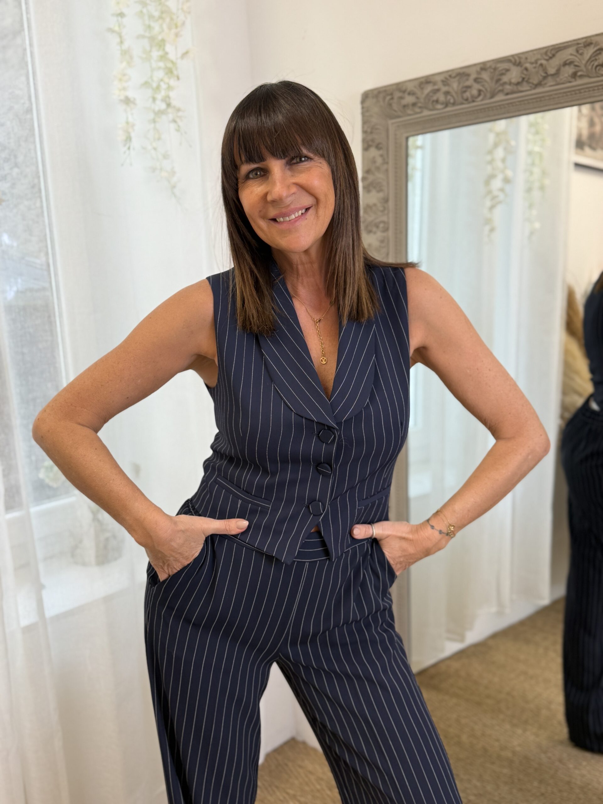 Gilet de tailleur sans manches à fines rayures un intemporel de votre garde robes !