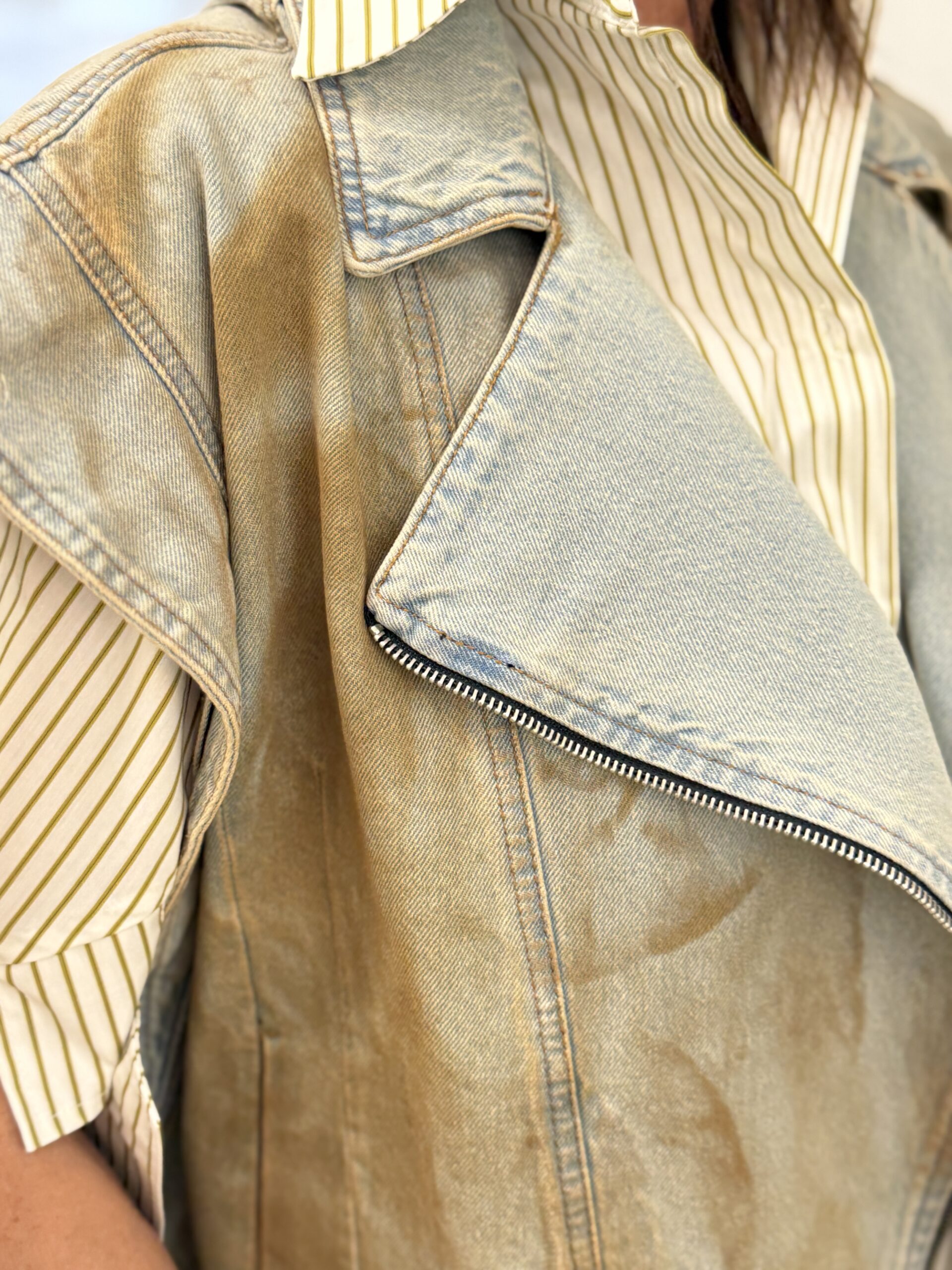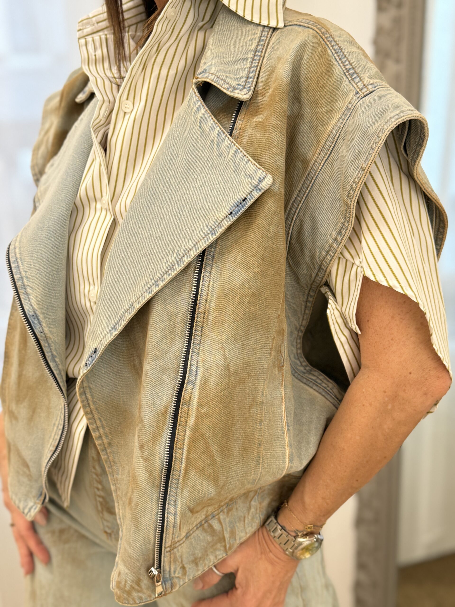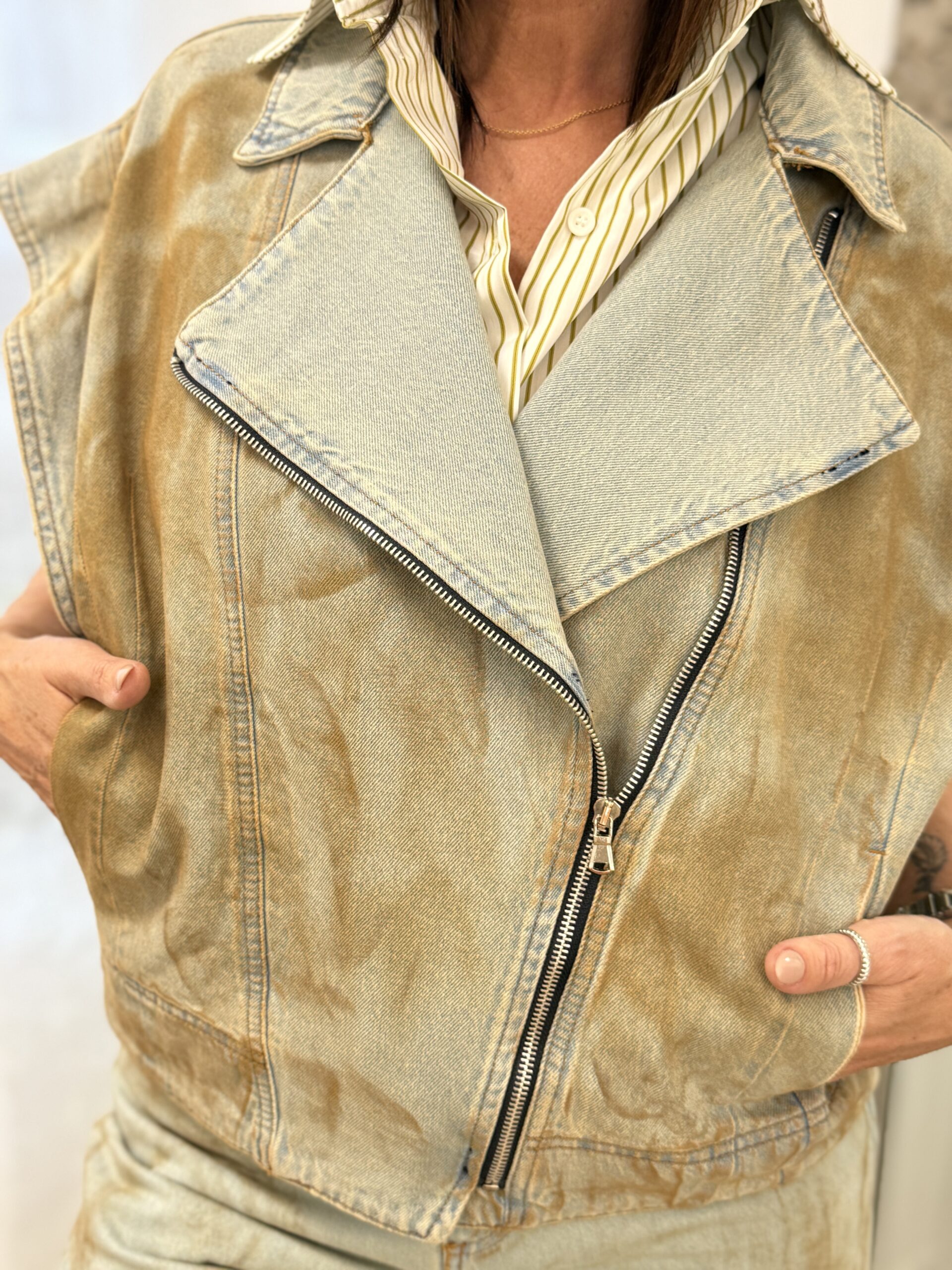 Une pièce forte au caractère affirmé, idéale pour structurer un look avec style. Cette veste sans manches revisite l’esprit biker dans une version moderne et audacieuse.