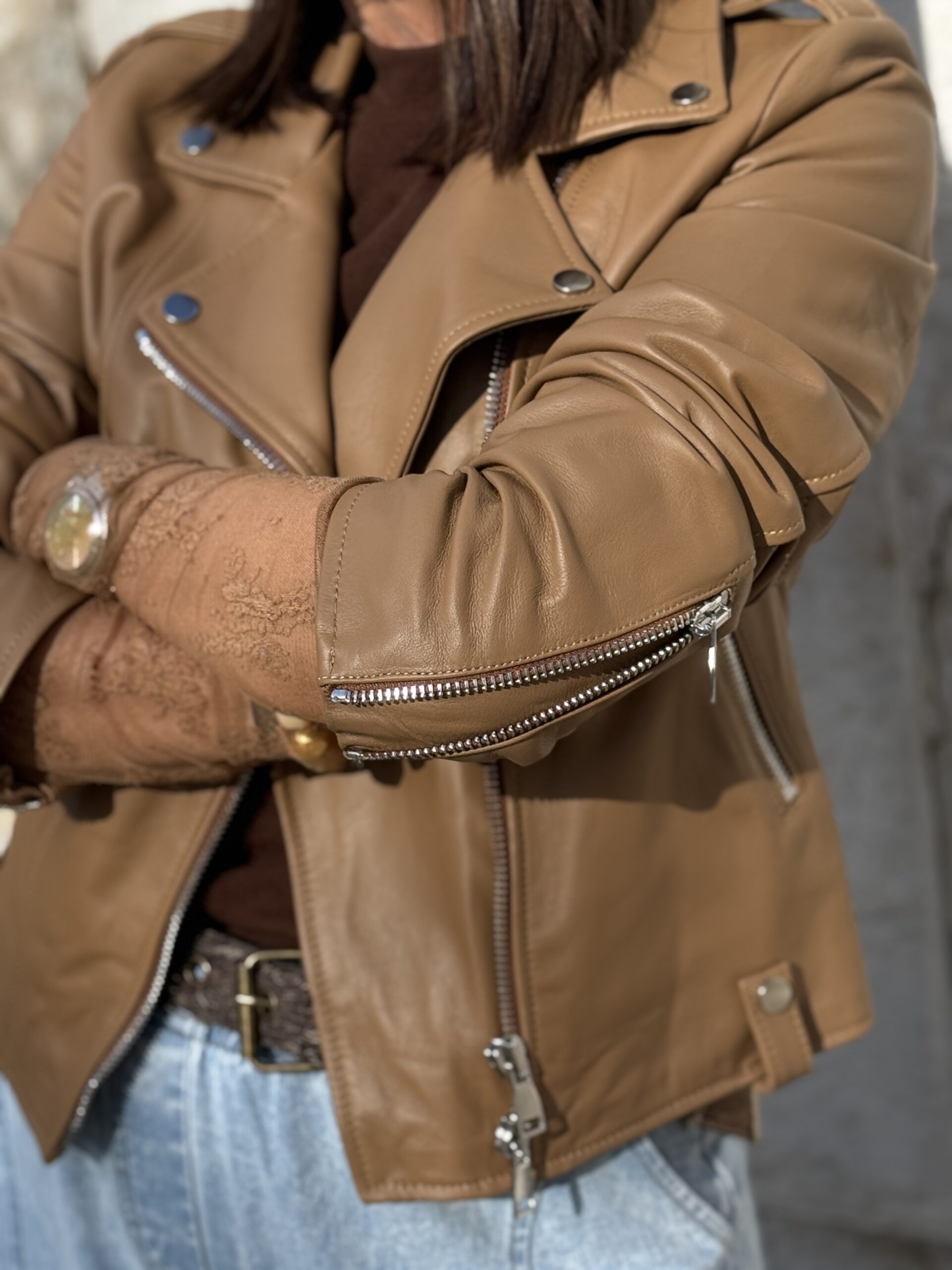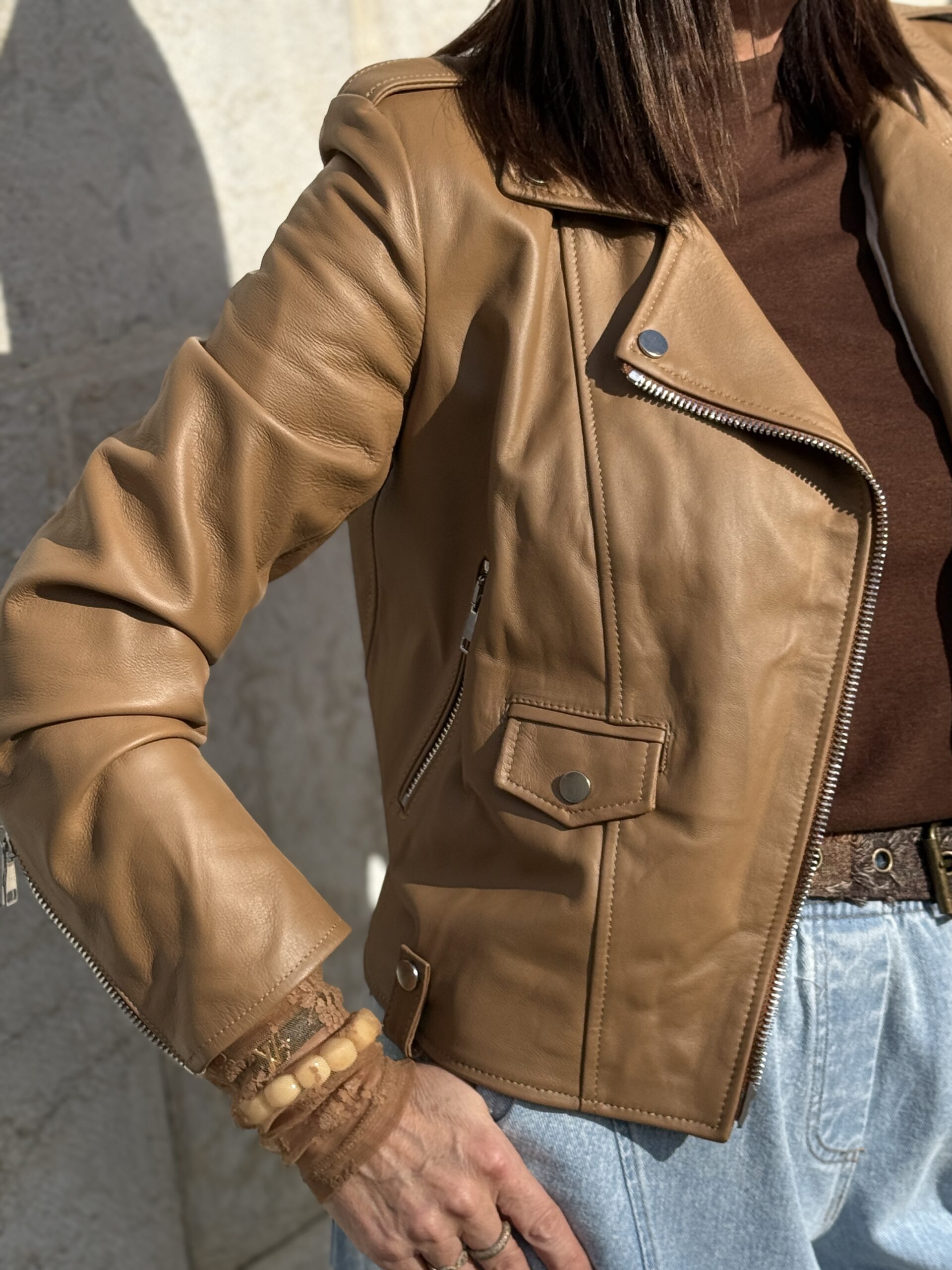 Le Perfecto en cuir camel est une pièce forte qui apporte immédiatement du caractère à une tenue!