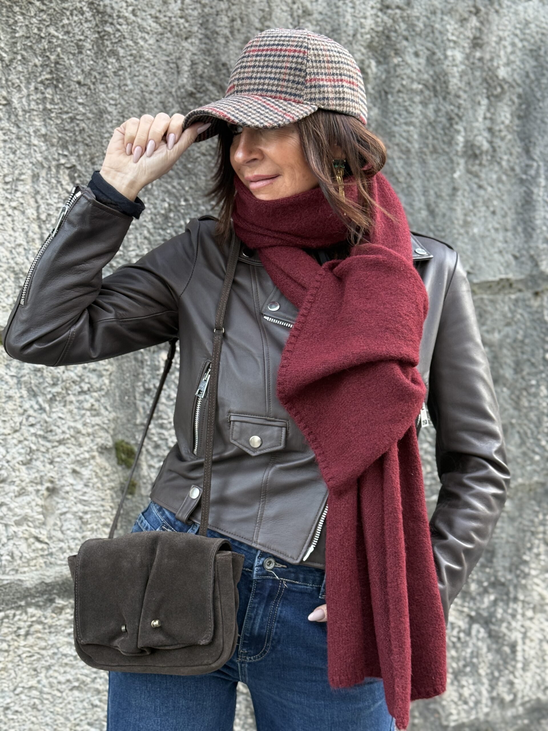 Conseil mode de Nathalie : Portez-le avec une robe satinée noir et des bottes en cuir pour un look féminin et rebelle!