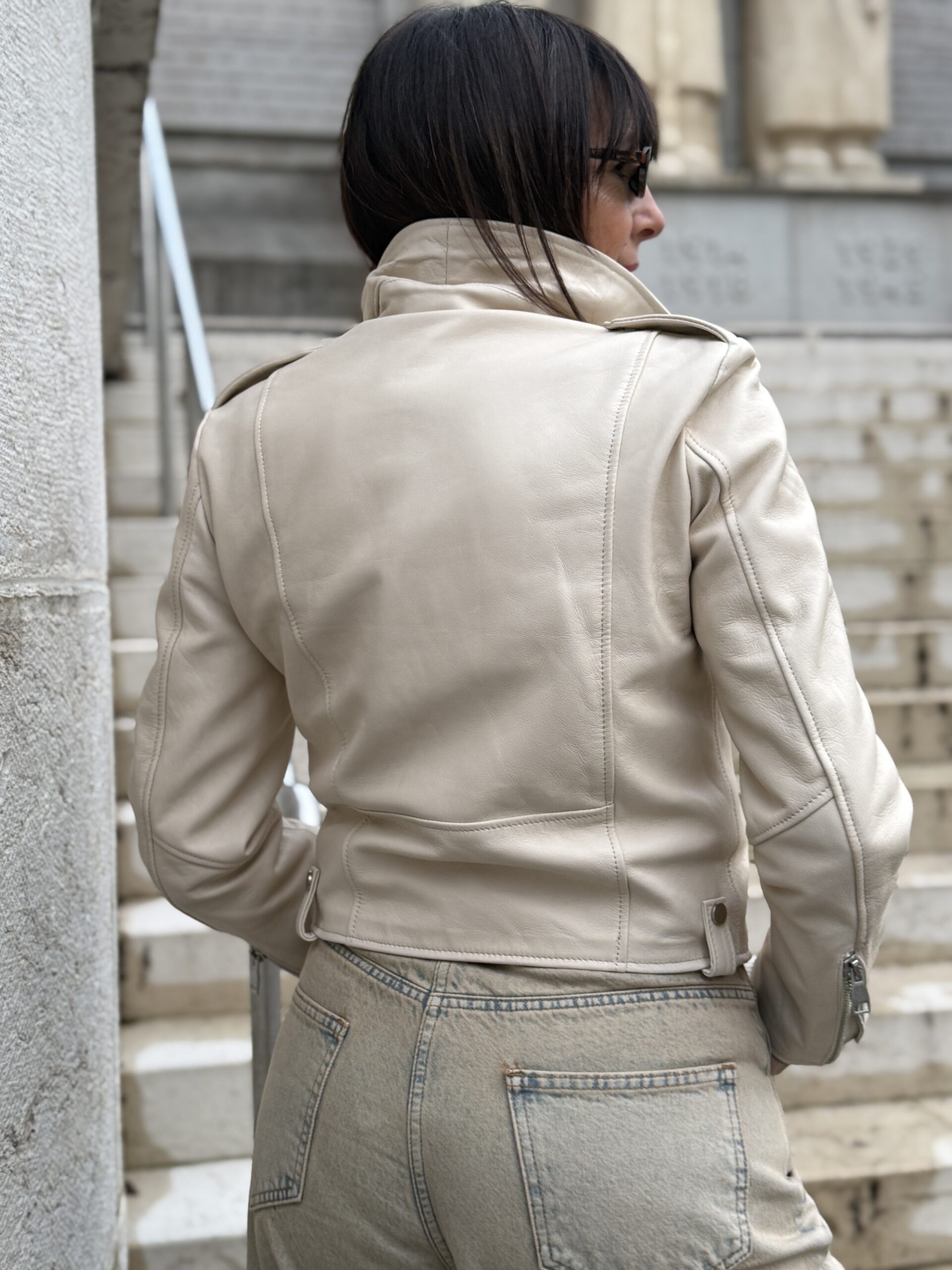 Le Perfecto en cuir crème est une pièce forte qui apporte immédiatement du caractère à une tenue!