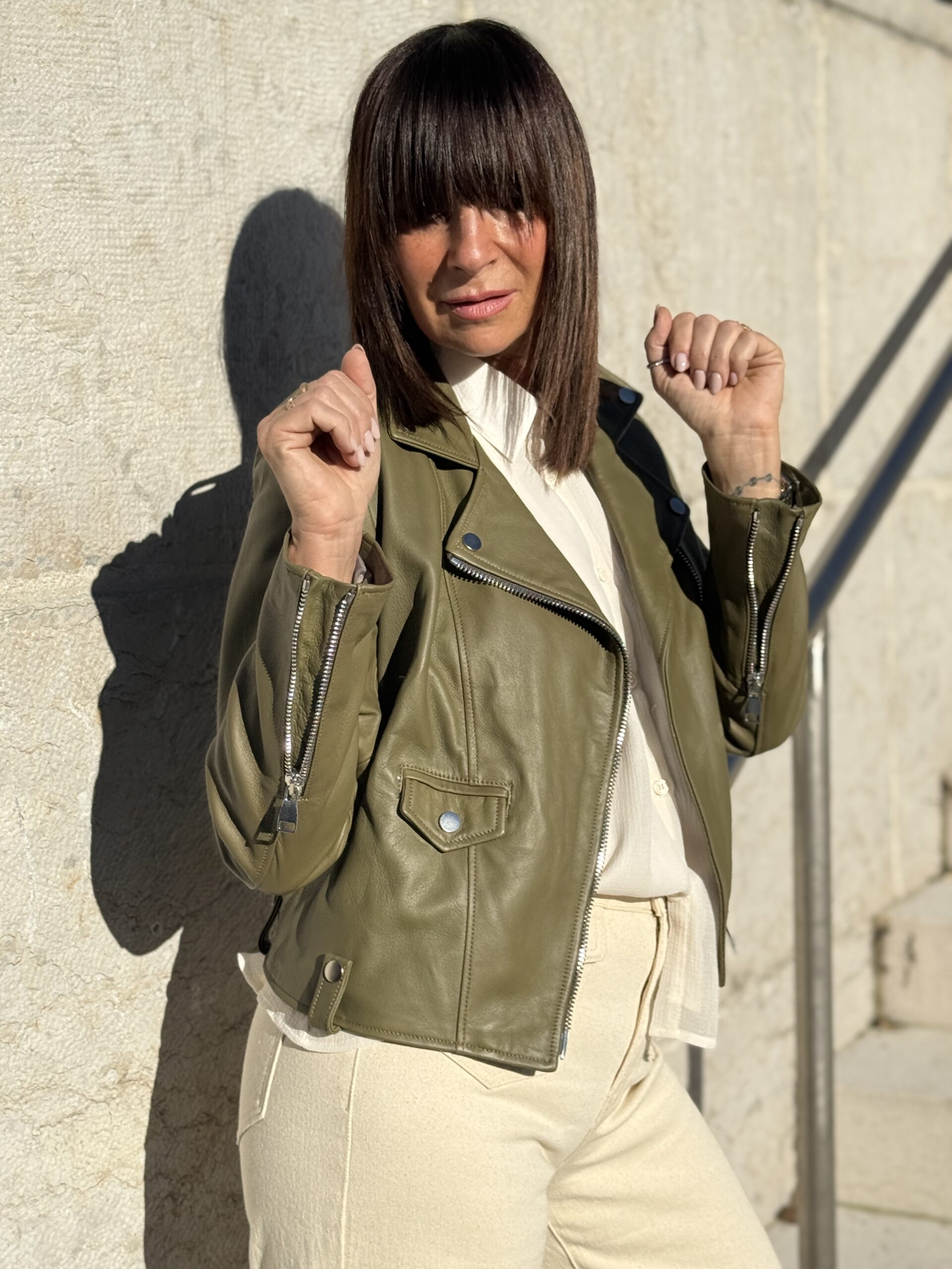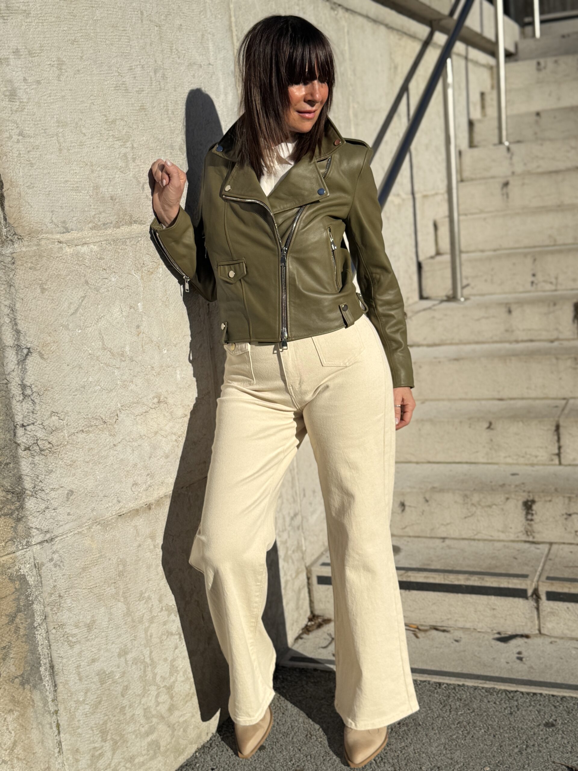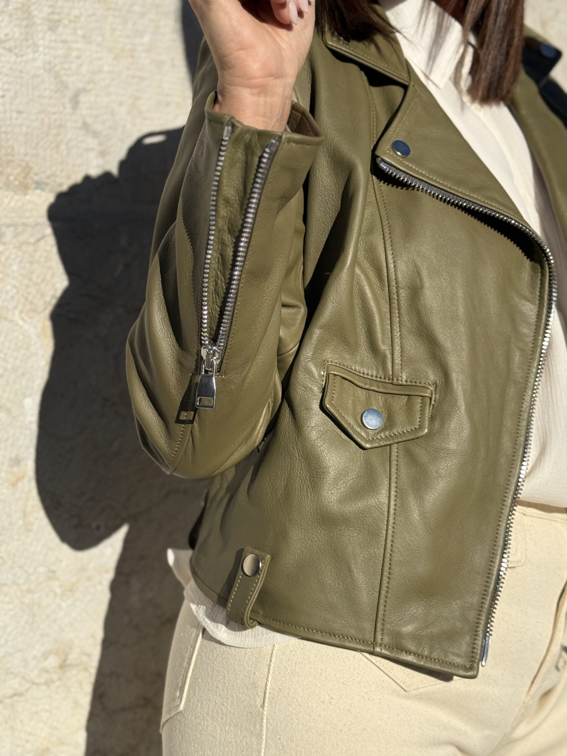Le Perfecto en cuir kaki est une pièce forte qui apporte immédiatement du caractère à une tenue!