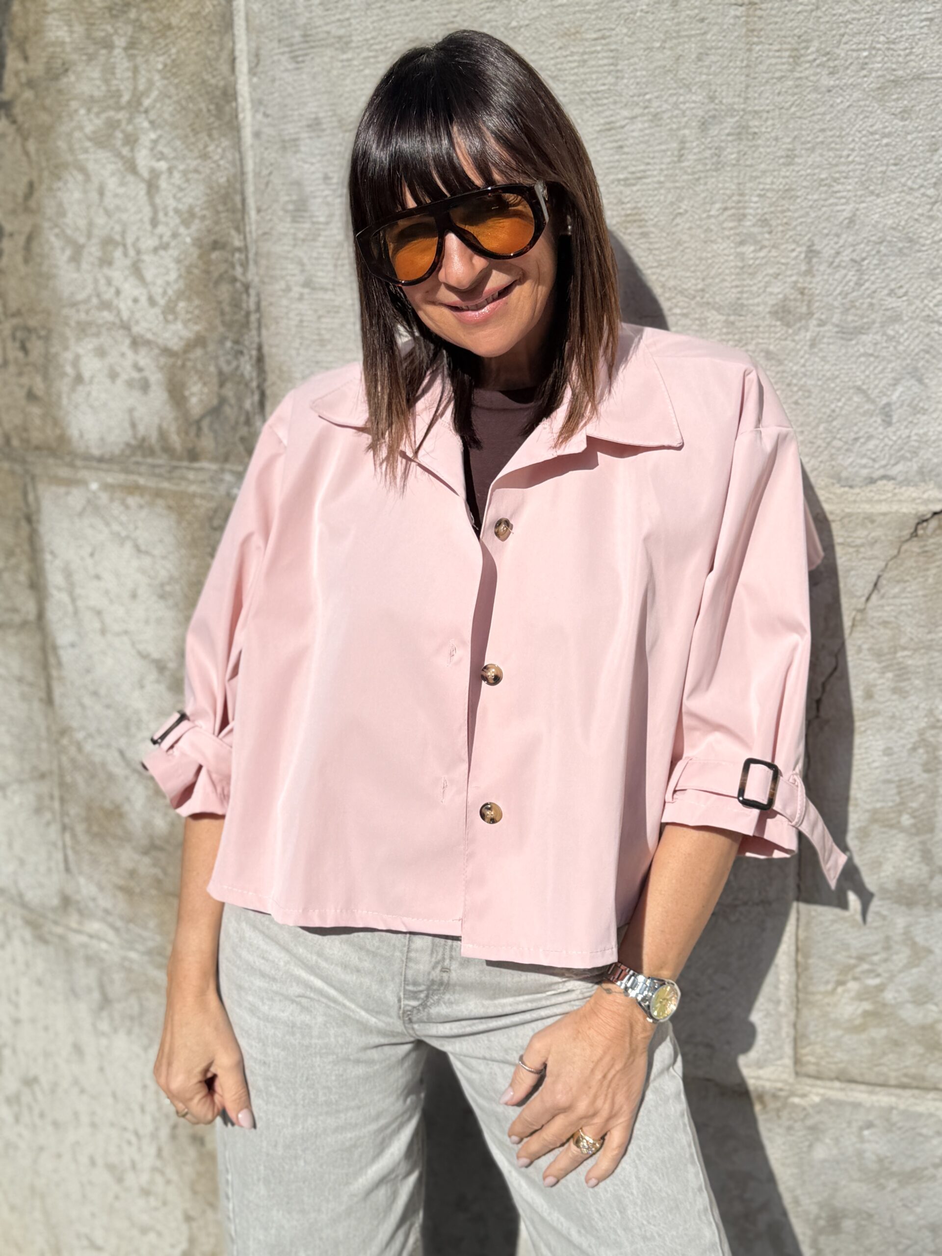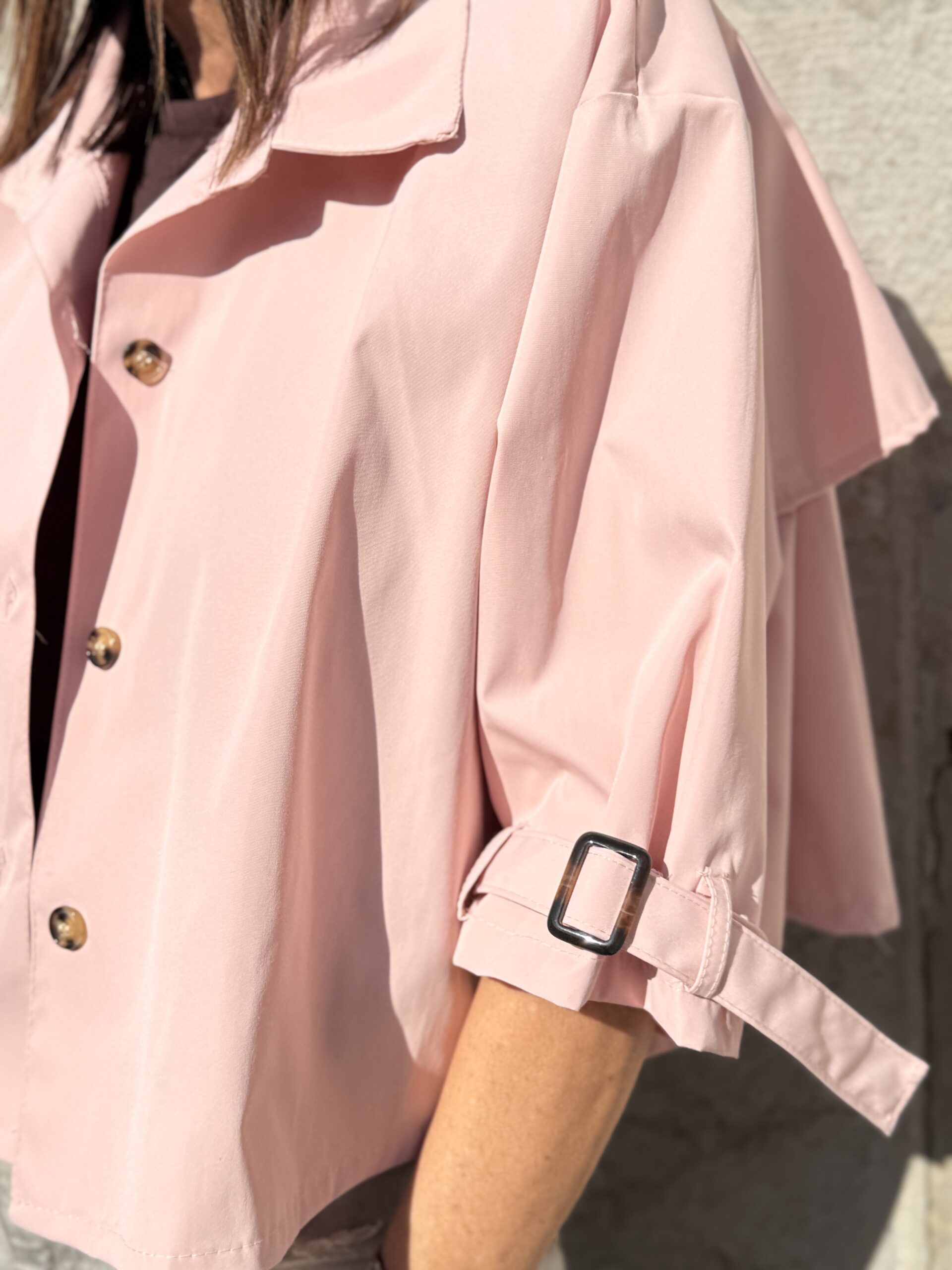 Trench rose poudré à la coupe courte revisitant un classique du vestiaire. Sa ligne épurée et structurée apporte une allure élégante et contemporaine. Une pièce idéale pour la mi-saison, facile à intégrer dans des silhouettes casual ou habillées.
