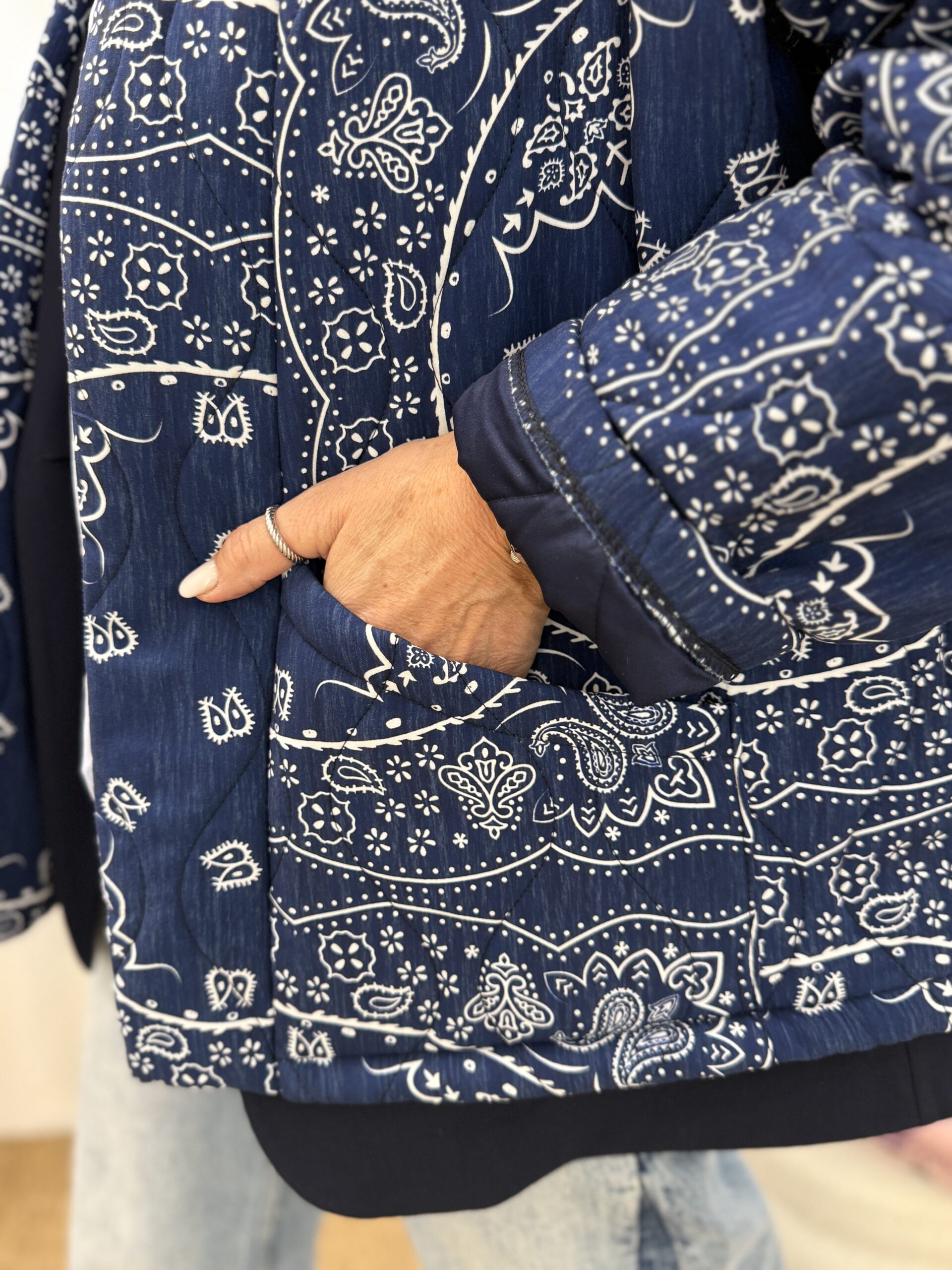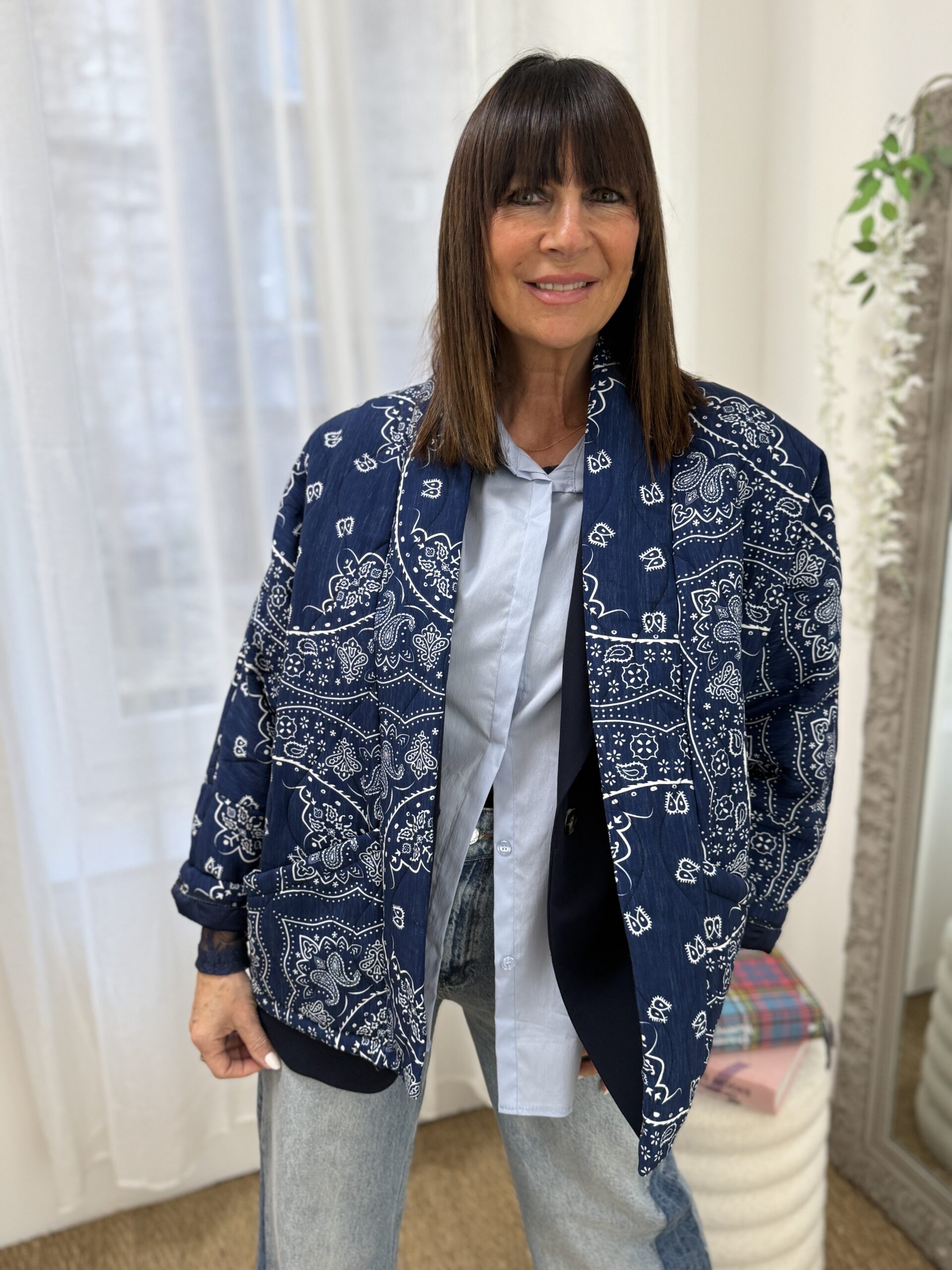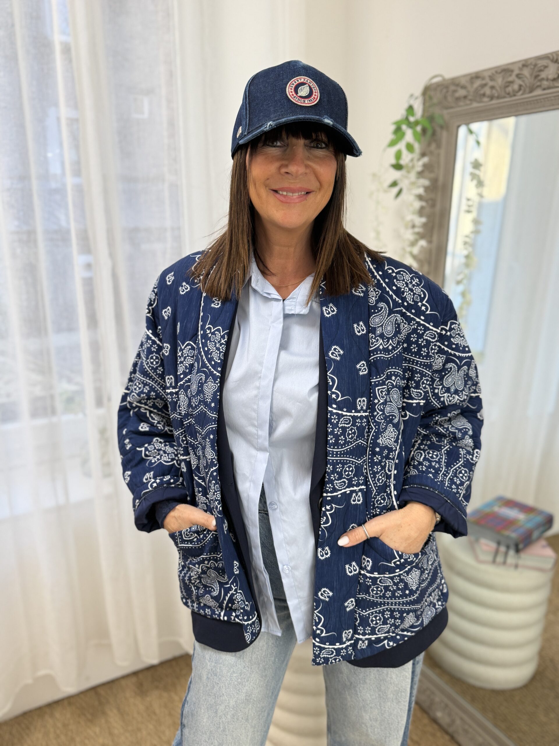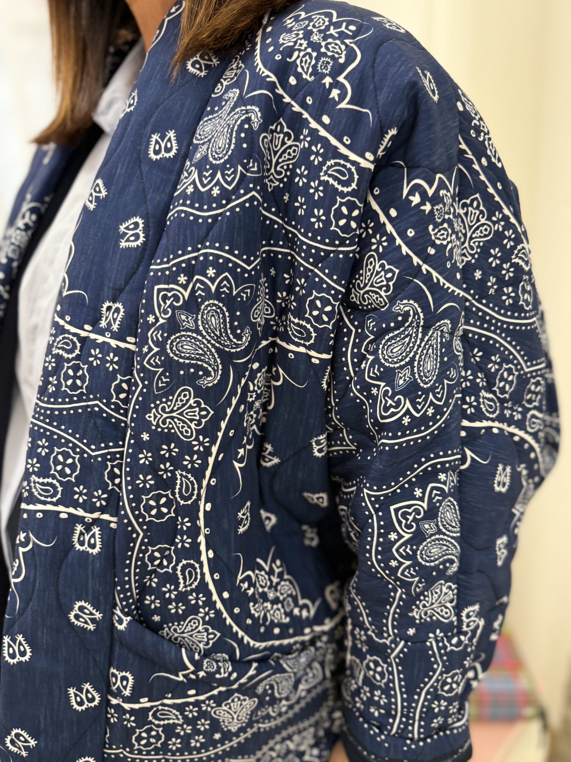 Cette veste légère au motif bandana revisité, parfaite pour apporter du caractère à une tenue simple.