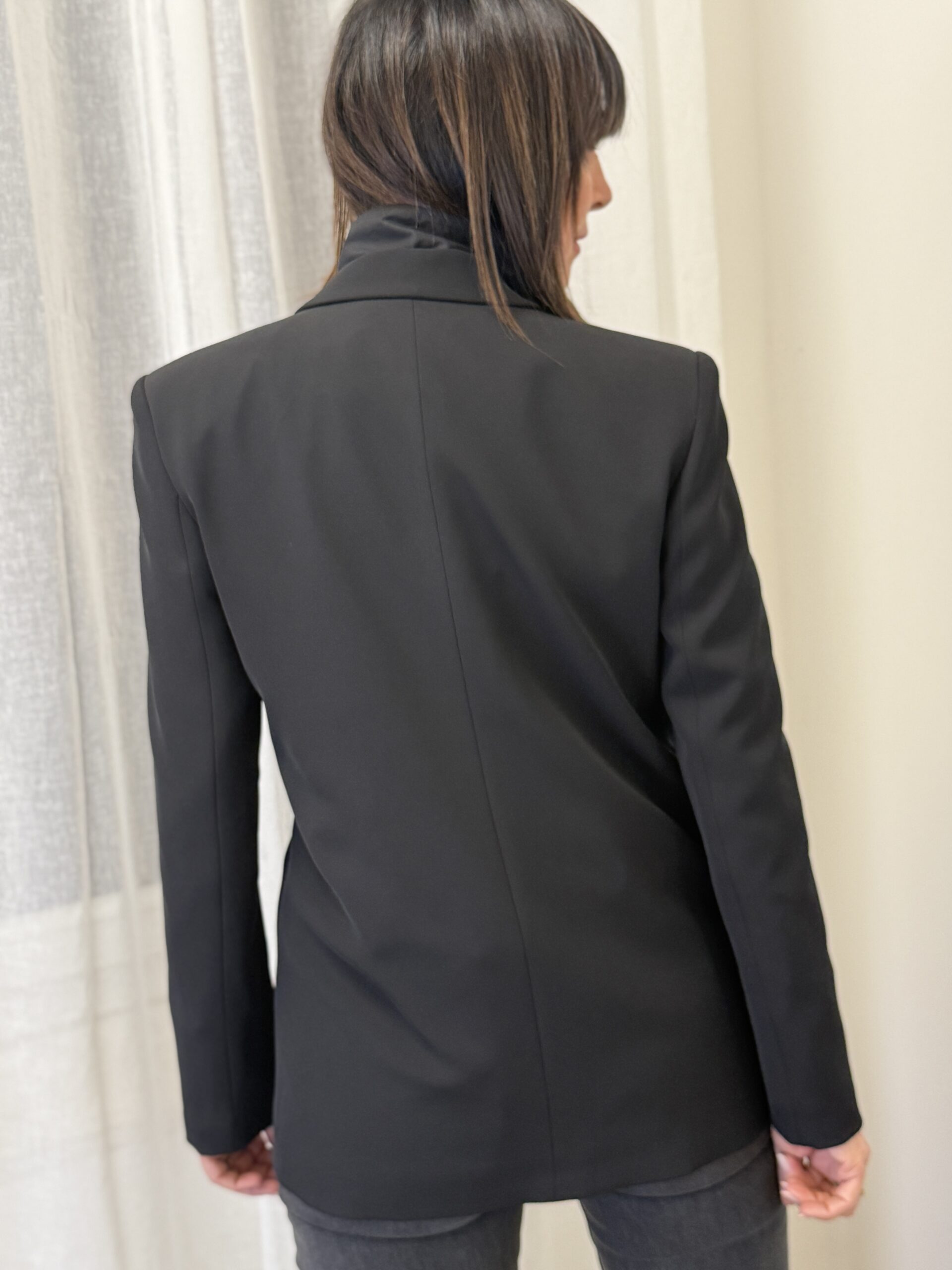 Blazer noir au design intemporel, parfait pour composer des tenues élégantes et modernes. Sa coupe structurée et ses finitions épurées en font une pièce essentielle du vestiaire, adaptée aussi bien au bureau qu’aux sorties habillées.