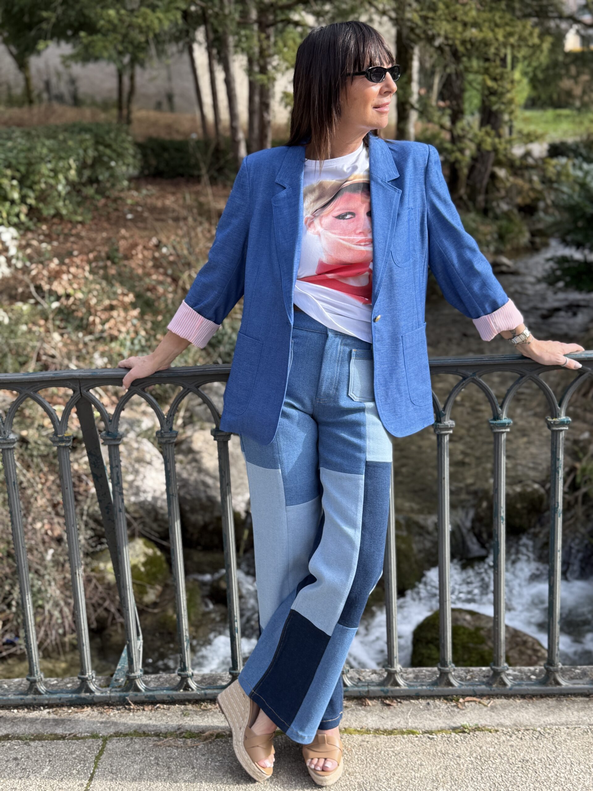 Conseil mode de Nathalie : Portez-la un T-shirt à motif et un jean pour une tenue facile porter au quotidien.