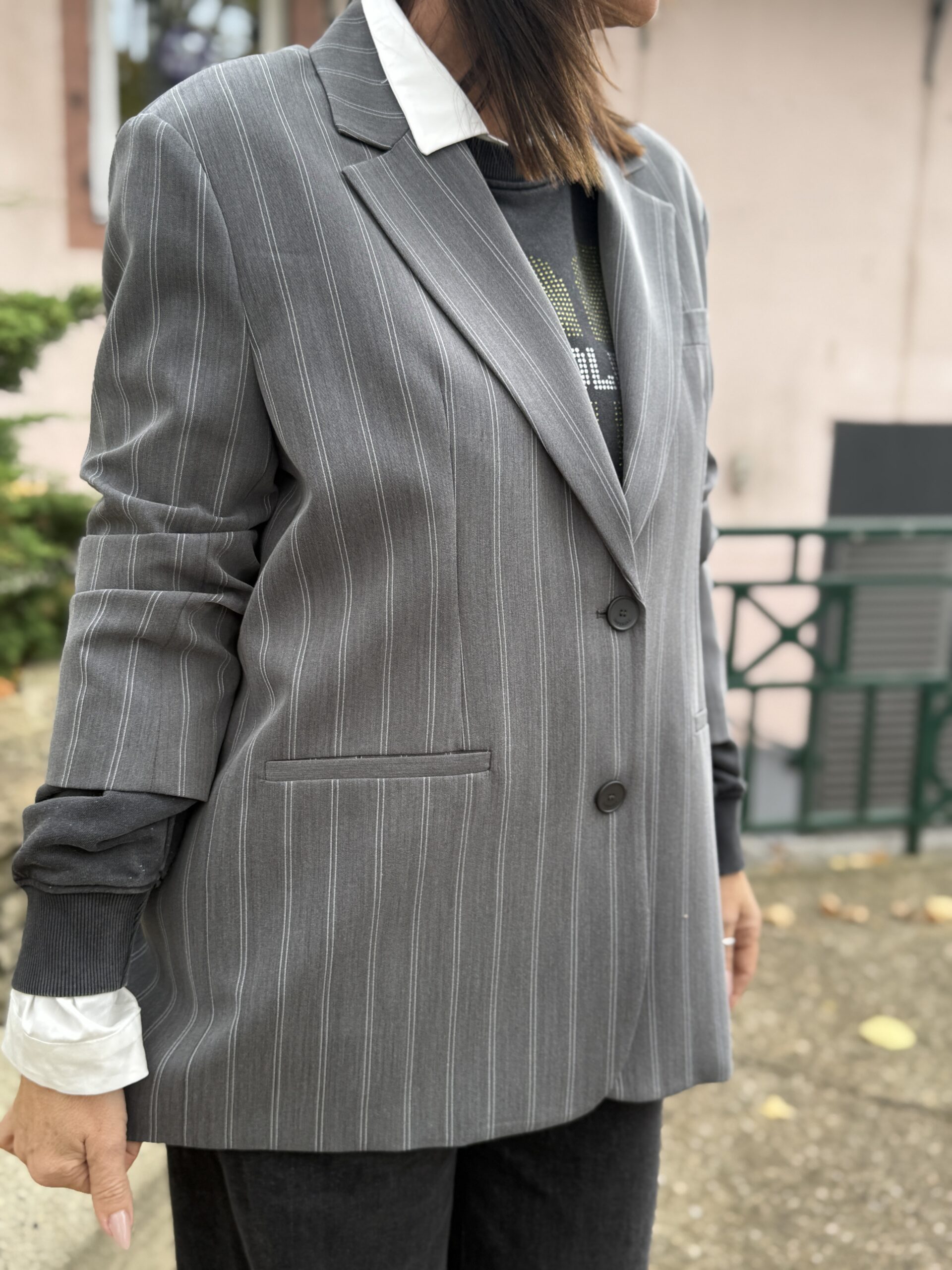 La veste à rayures grise oversize apporte une touche chic et moderne à toutes tes tenues!