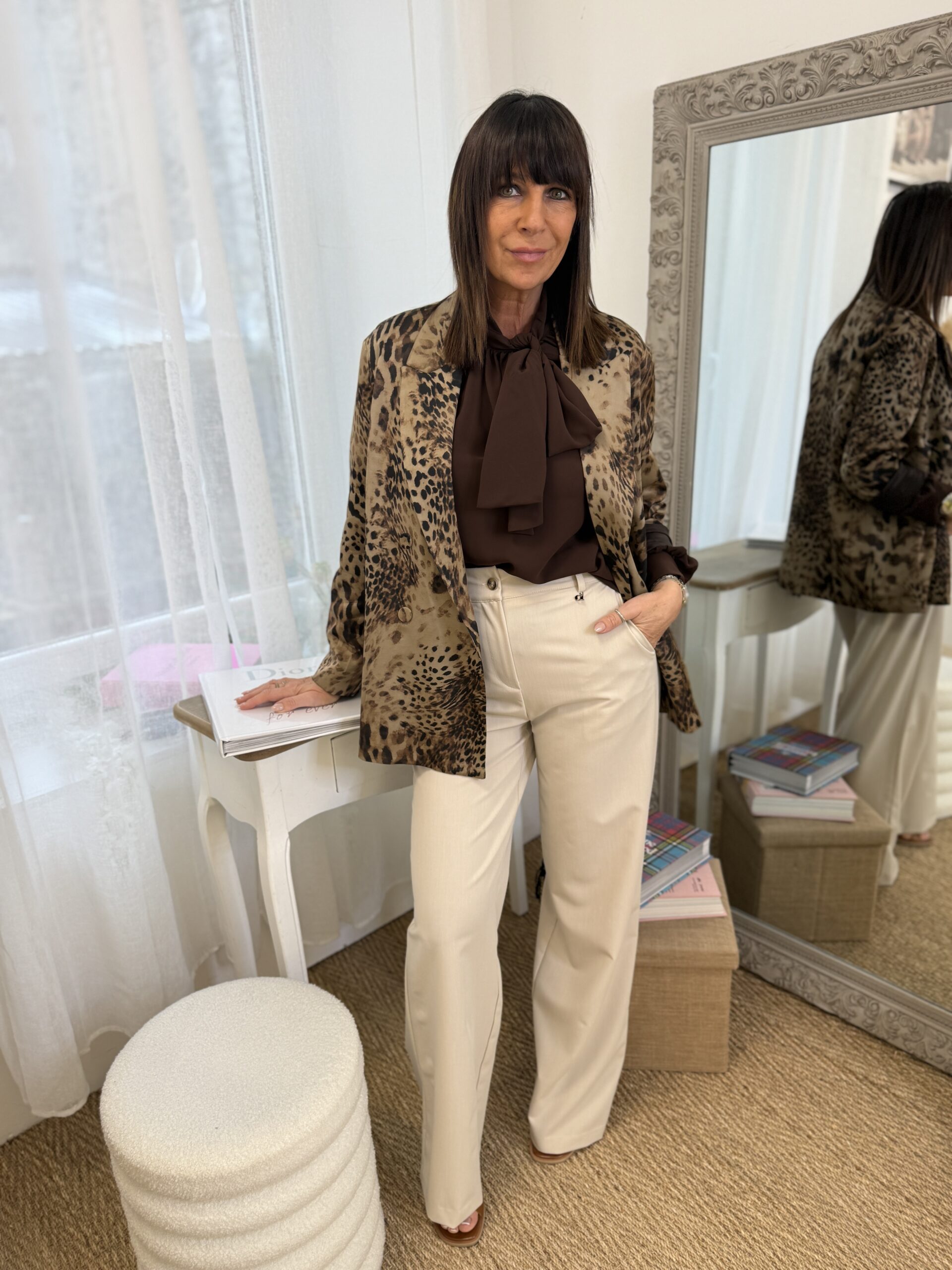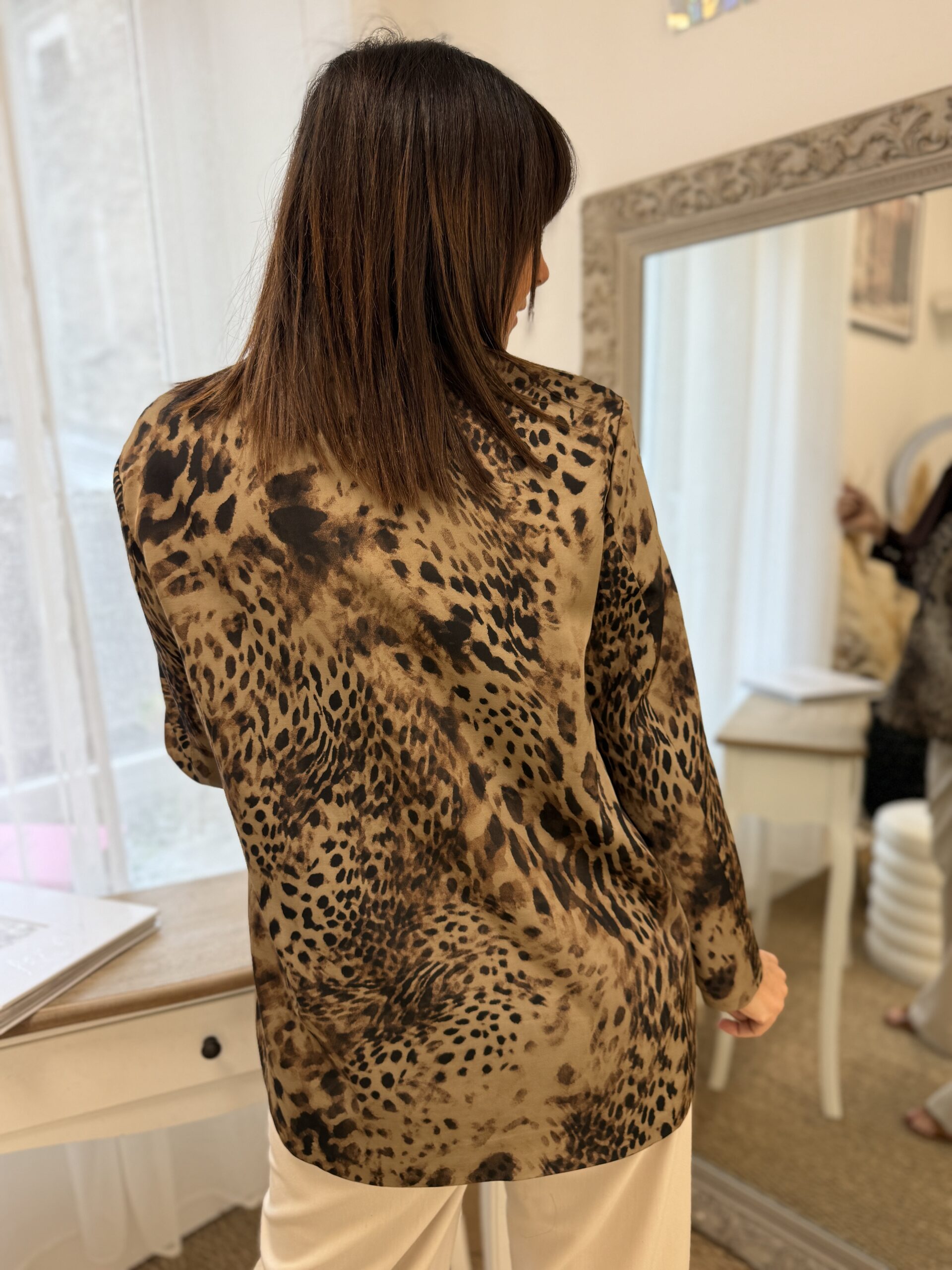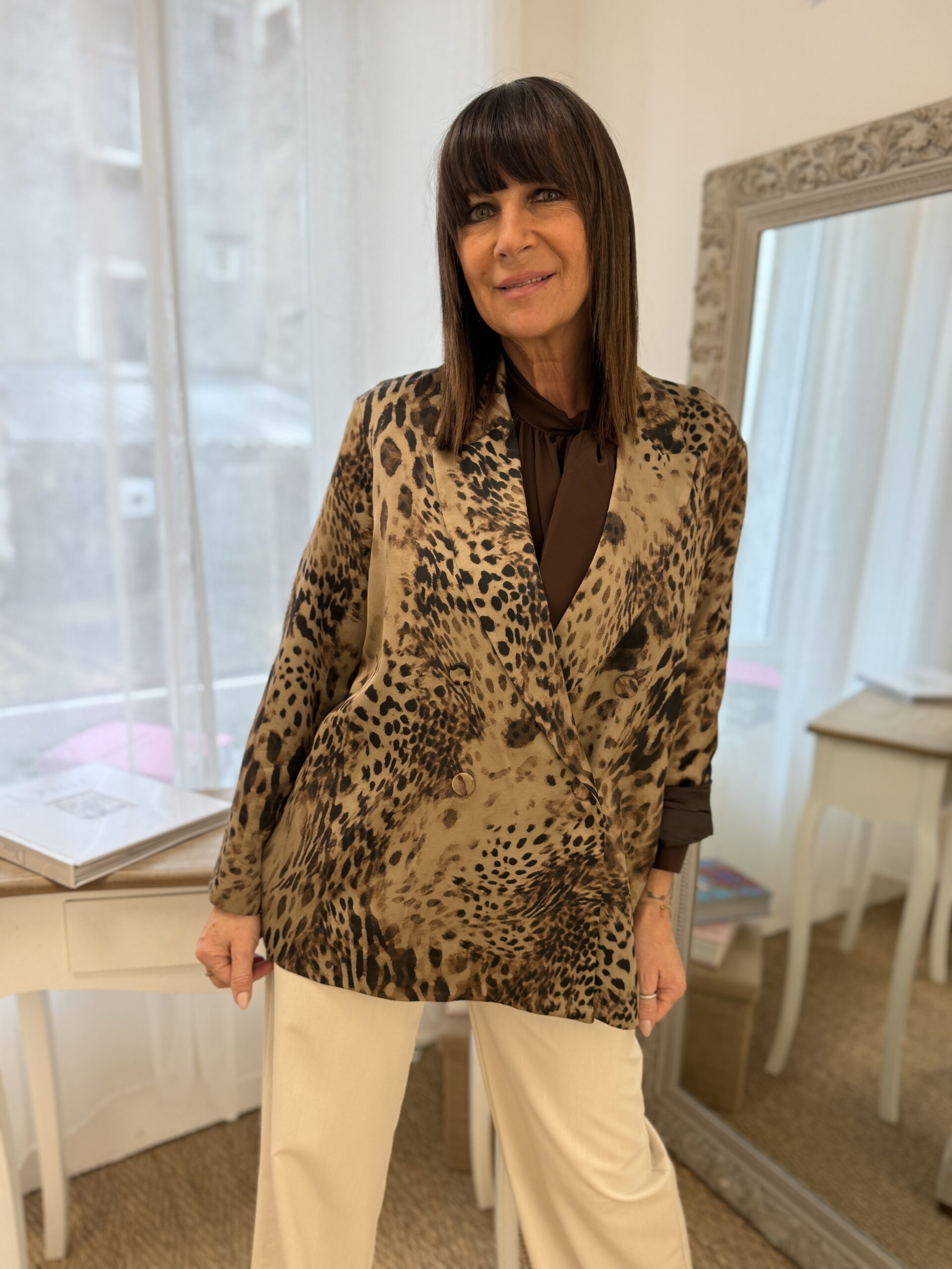 Conseil mode de Nathalie : Portez-le avec un jean brut et un top noir pour un look chic et décontracté, ou avec un pantalon tailleur pour une silhouette plus sophistiquée. Il s’associe également très bien avec pièces unies pour mettre en valeur l’imprimé.