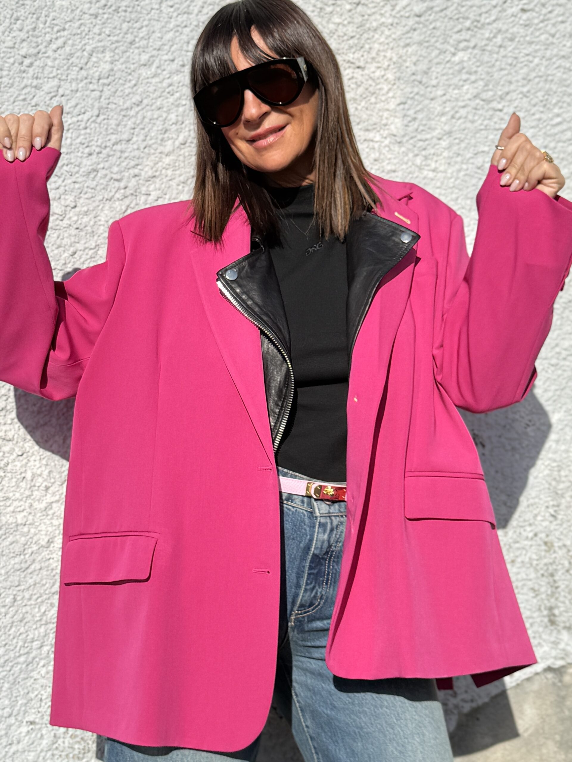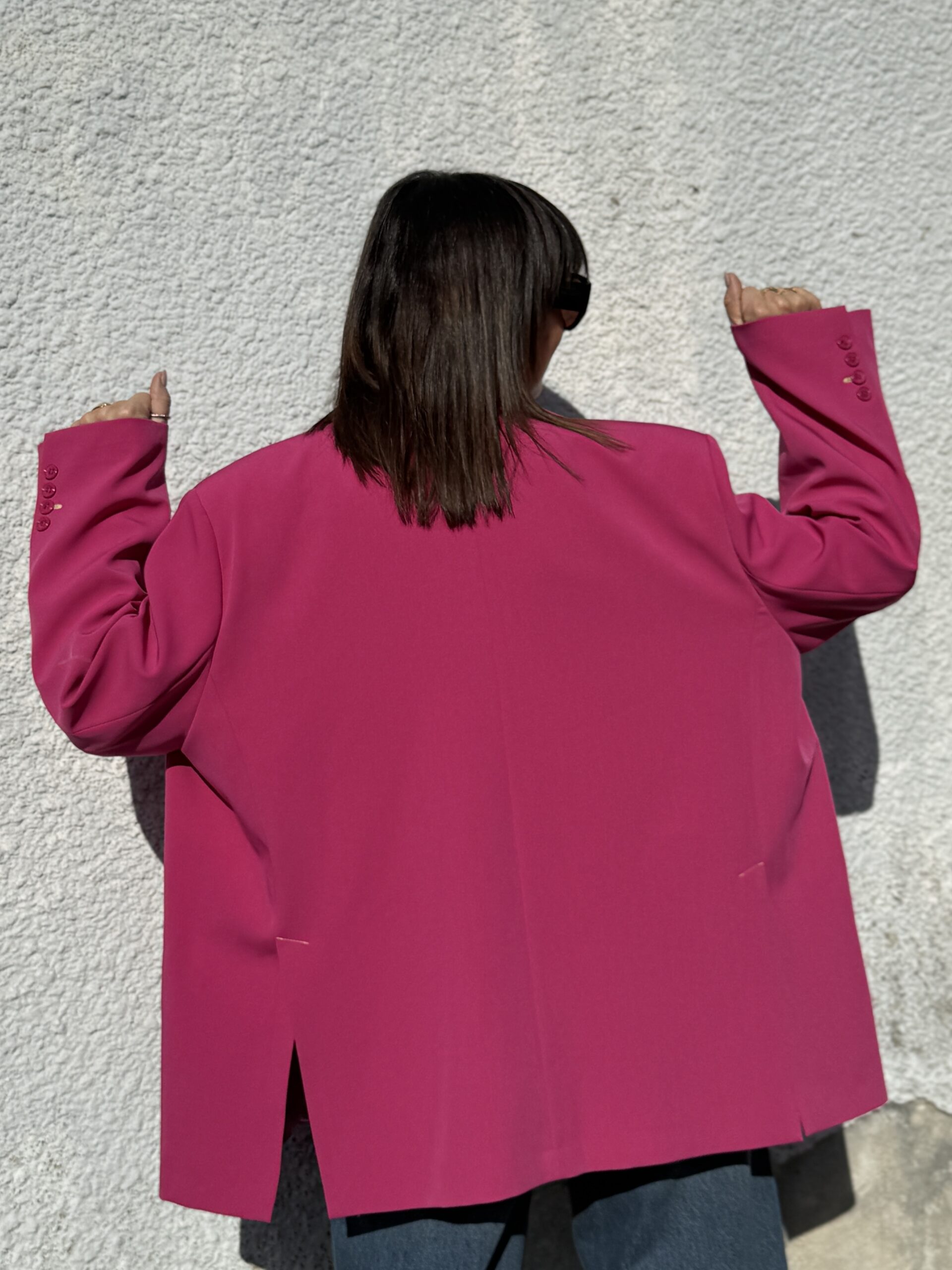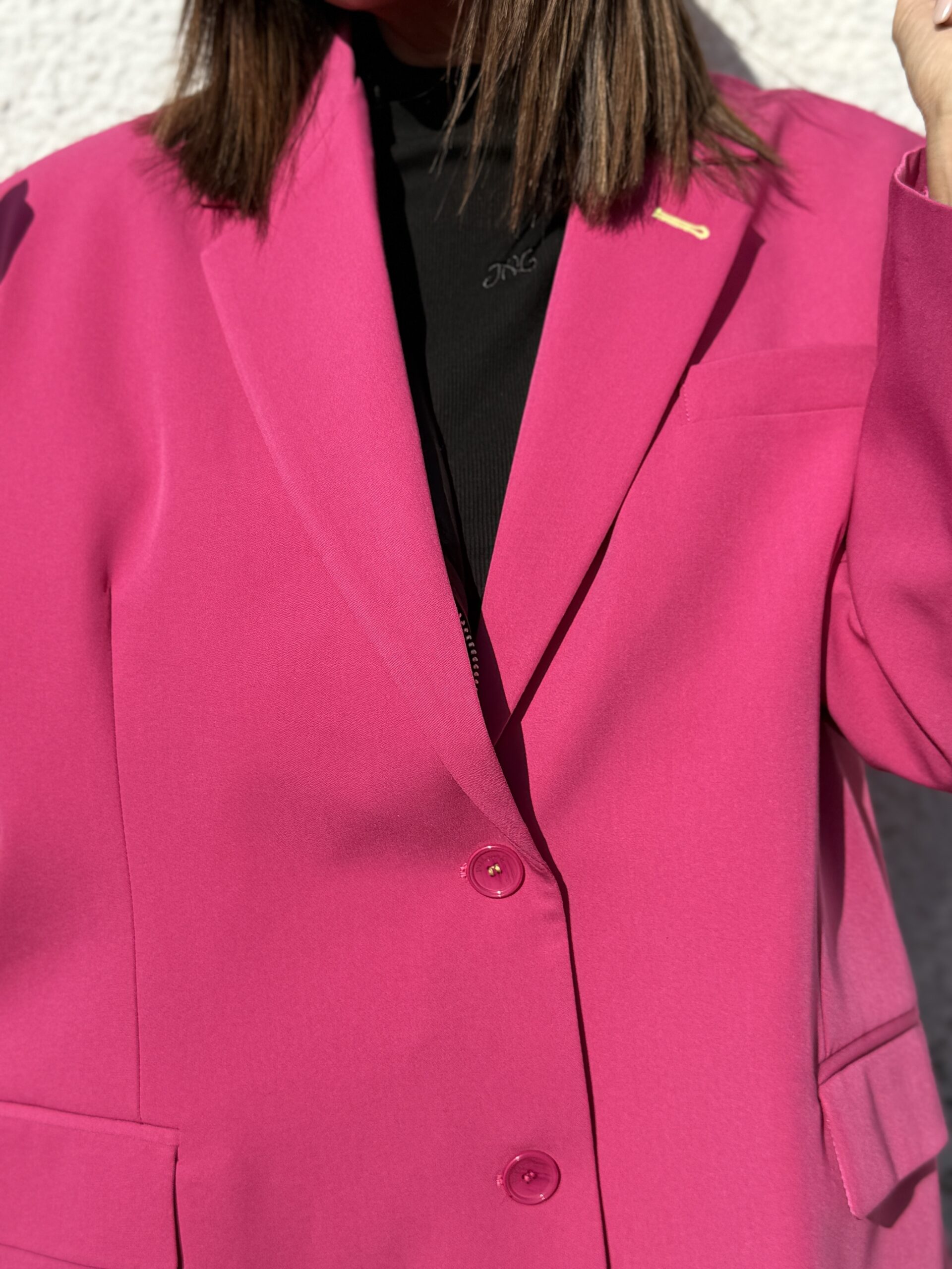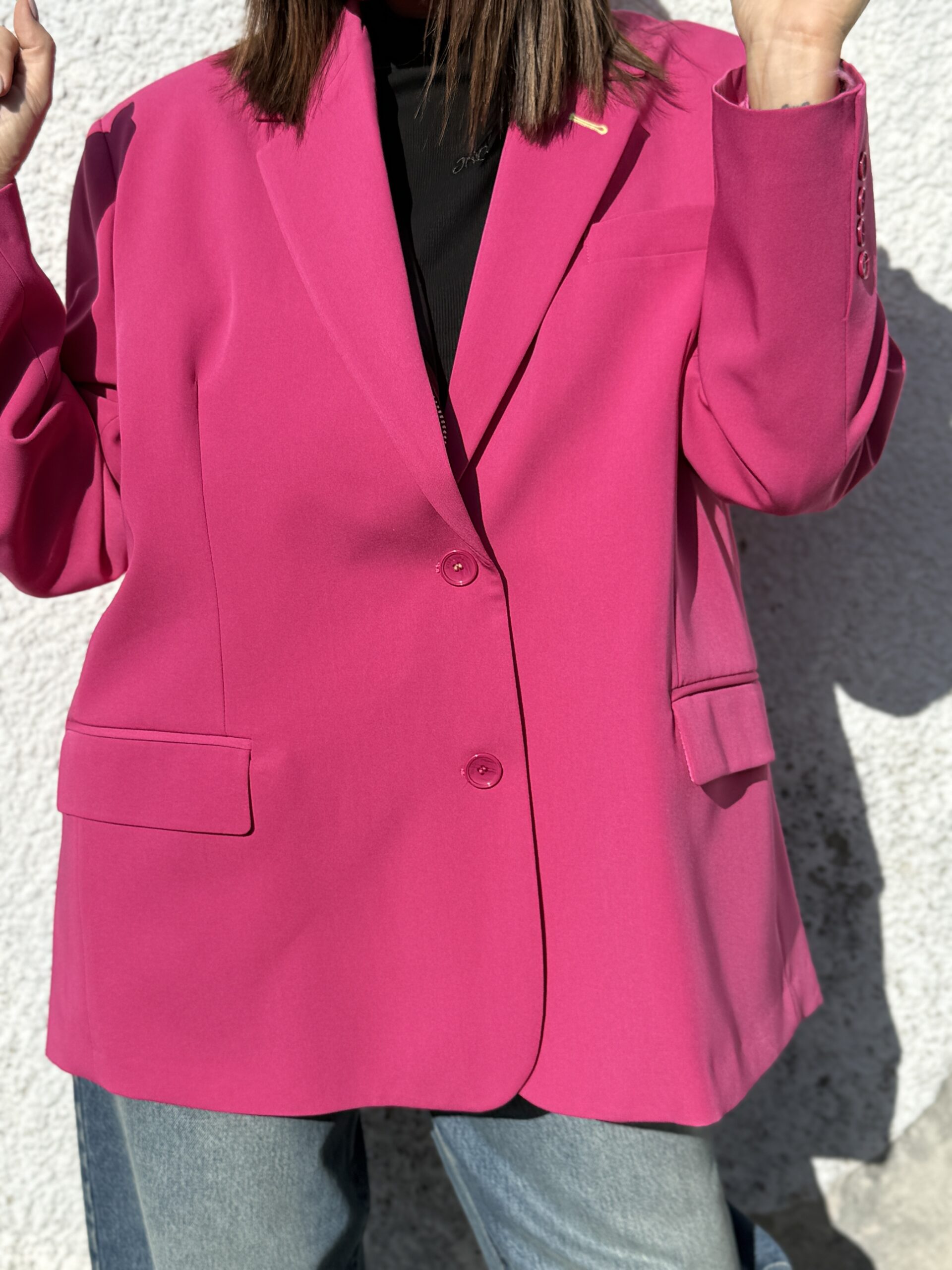 Un blazer fuchsia à la coupe oversize et structurée, parfait pour affirmer votre style avec audace et féminité.