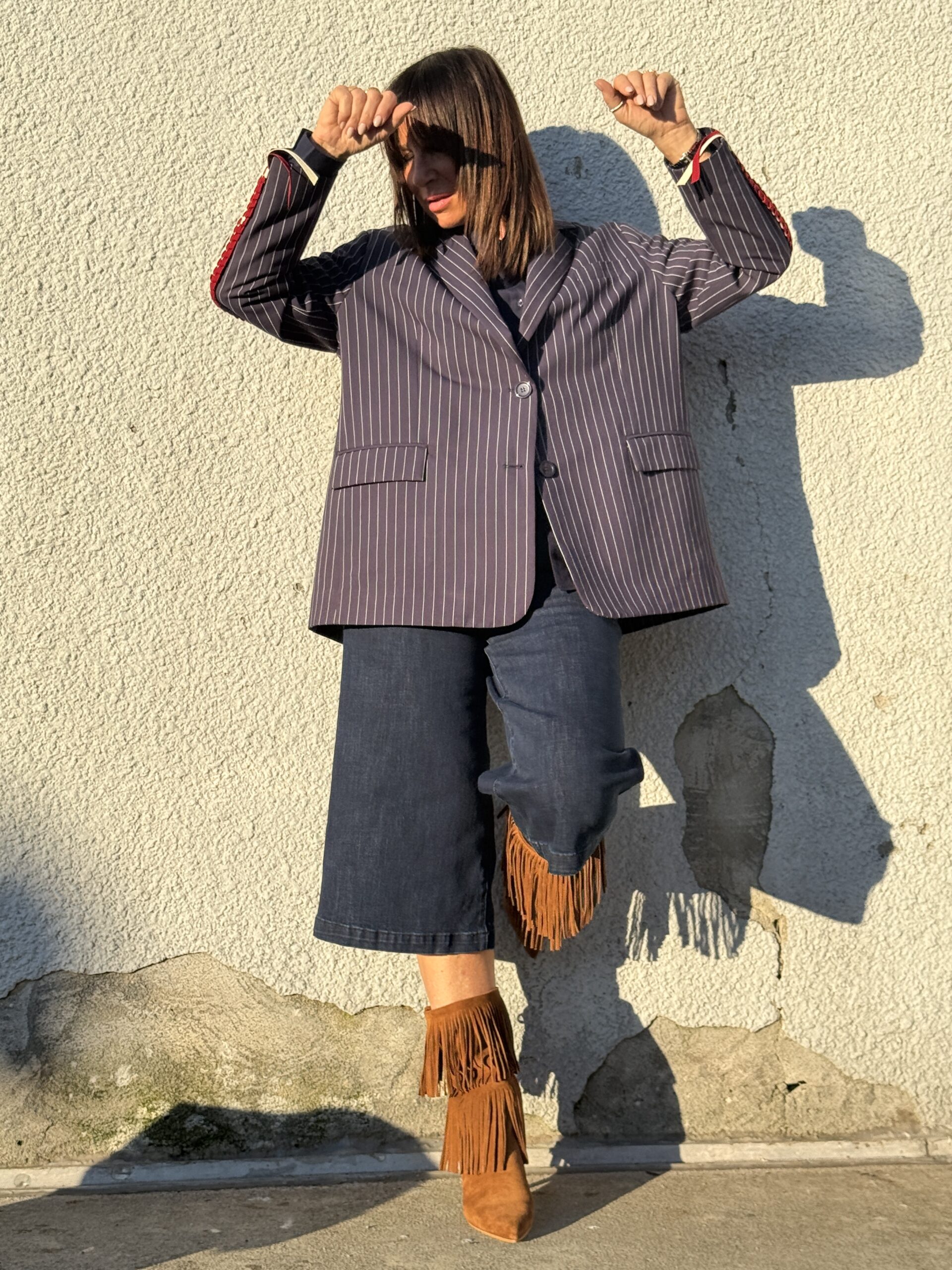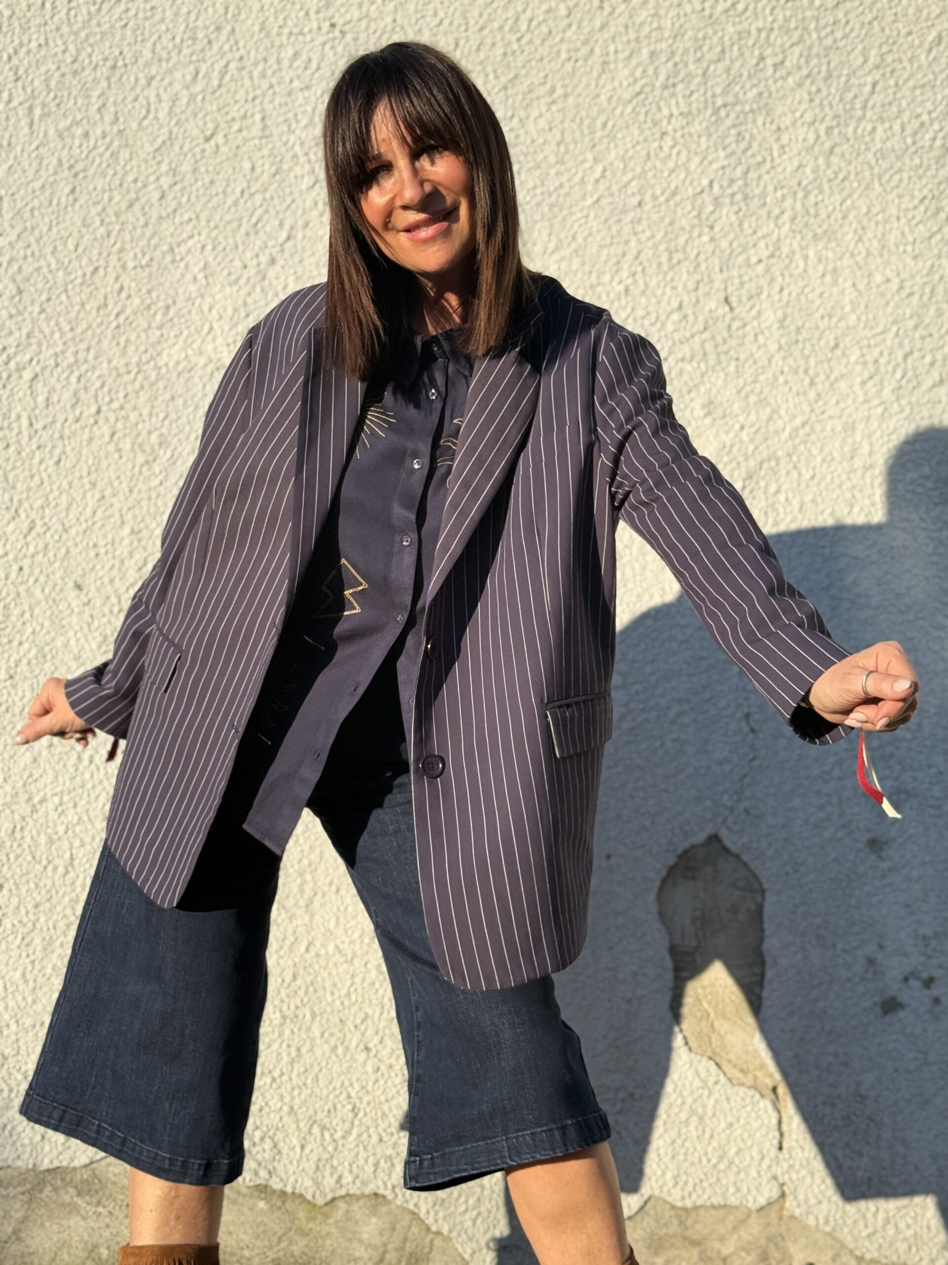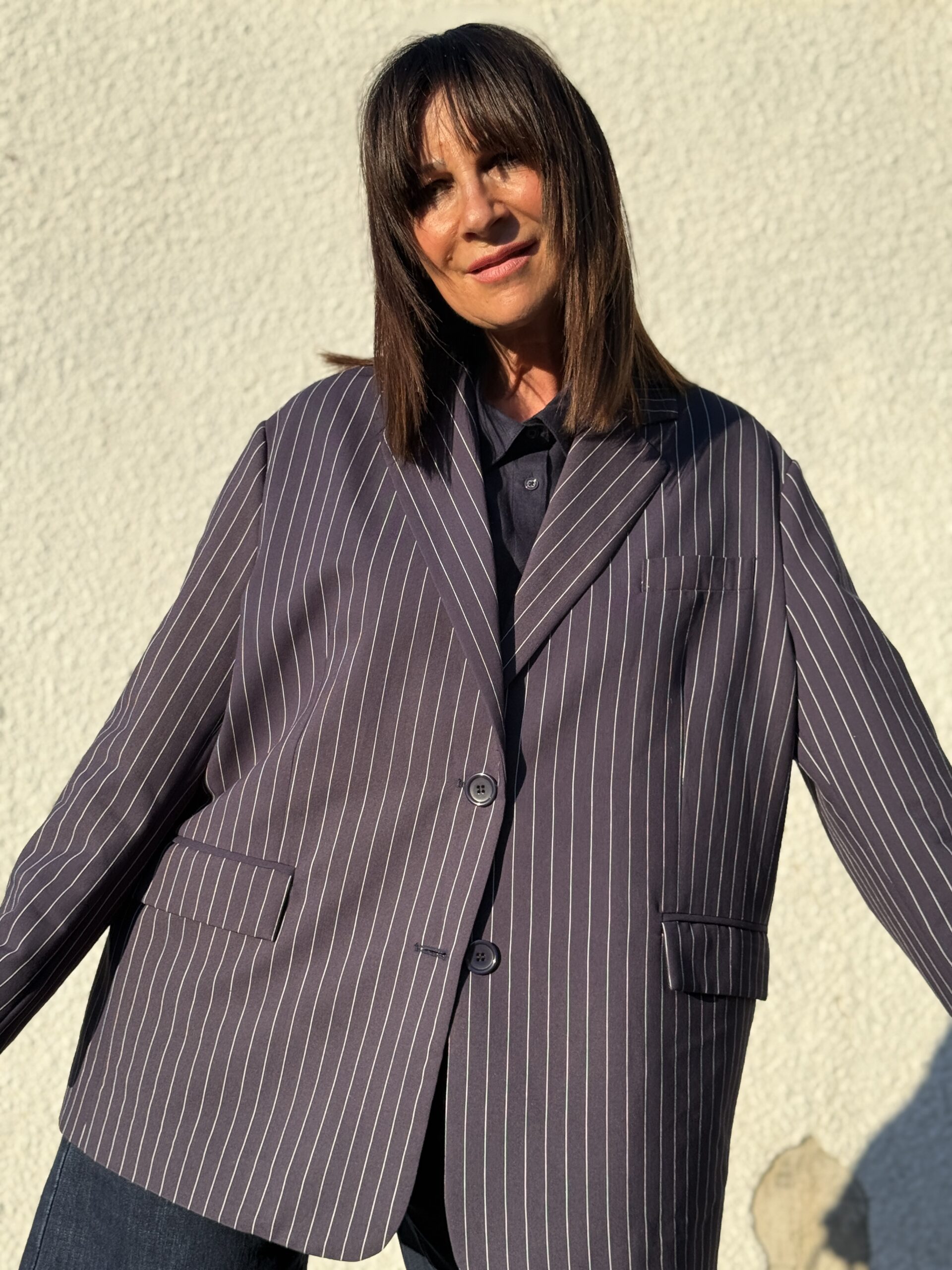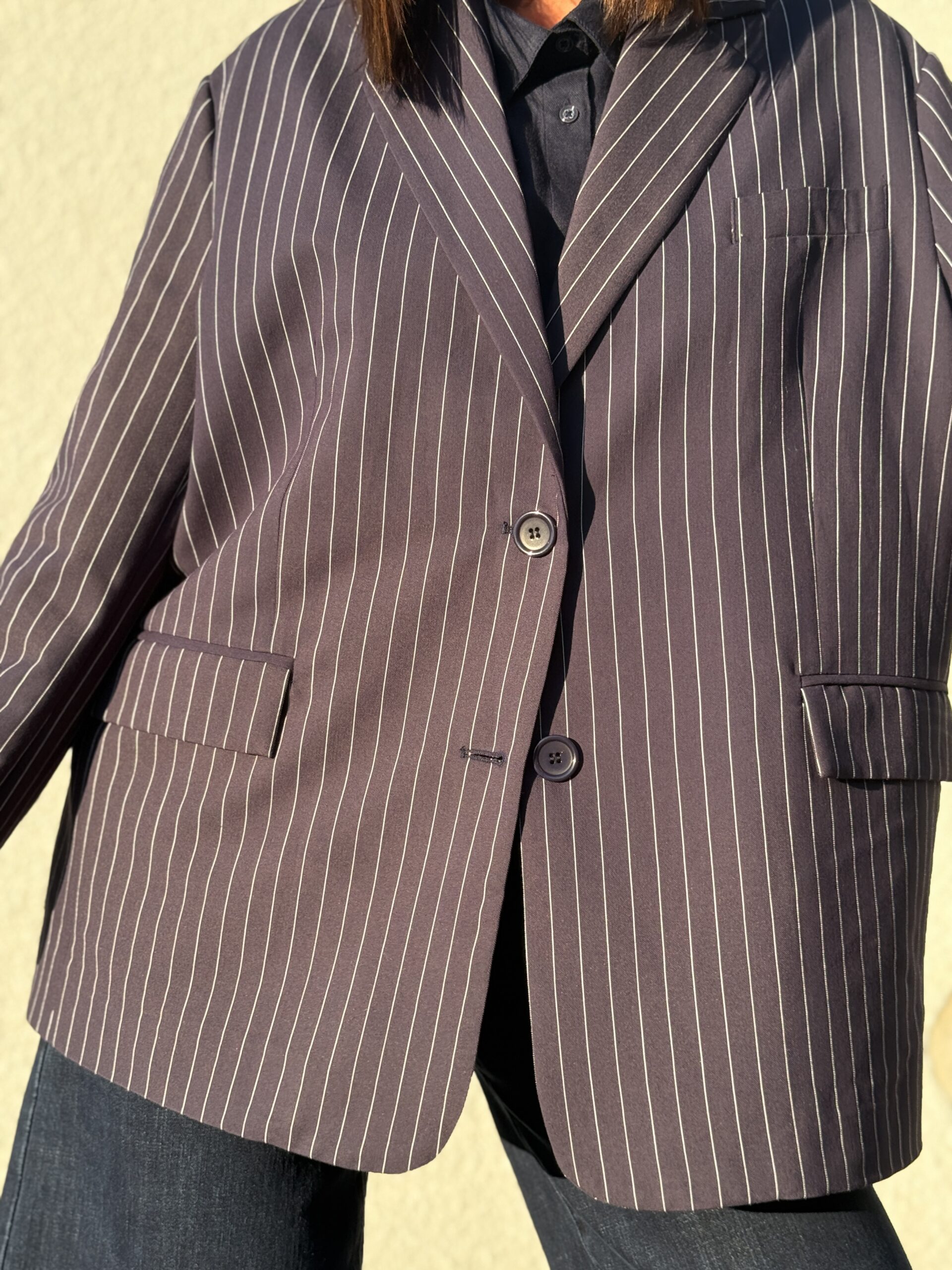 Conseil mode de Nathalie : Idéale avec un pantalon tailleur, un jean ou une jupe minimaliste. Peut se porter en total look costume ou en pièce statement sur une tenue sobre.
