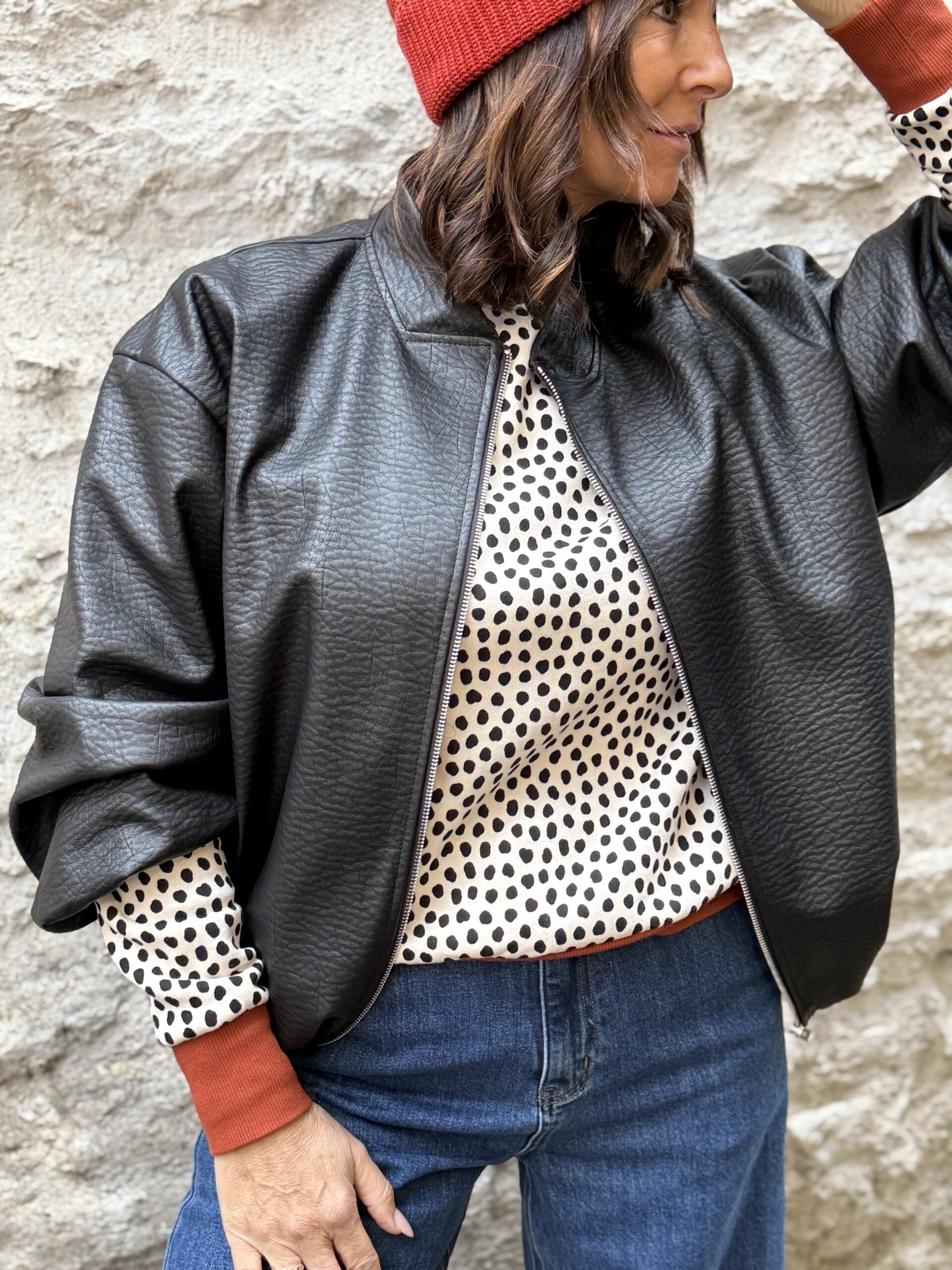 Un look urbain, contemporain et décontracté. Cette veste bomber oversize effet cuir est parfaite pour la saison !