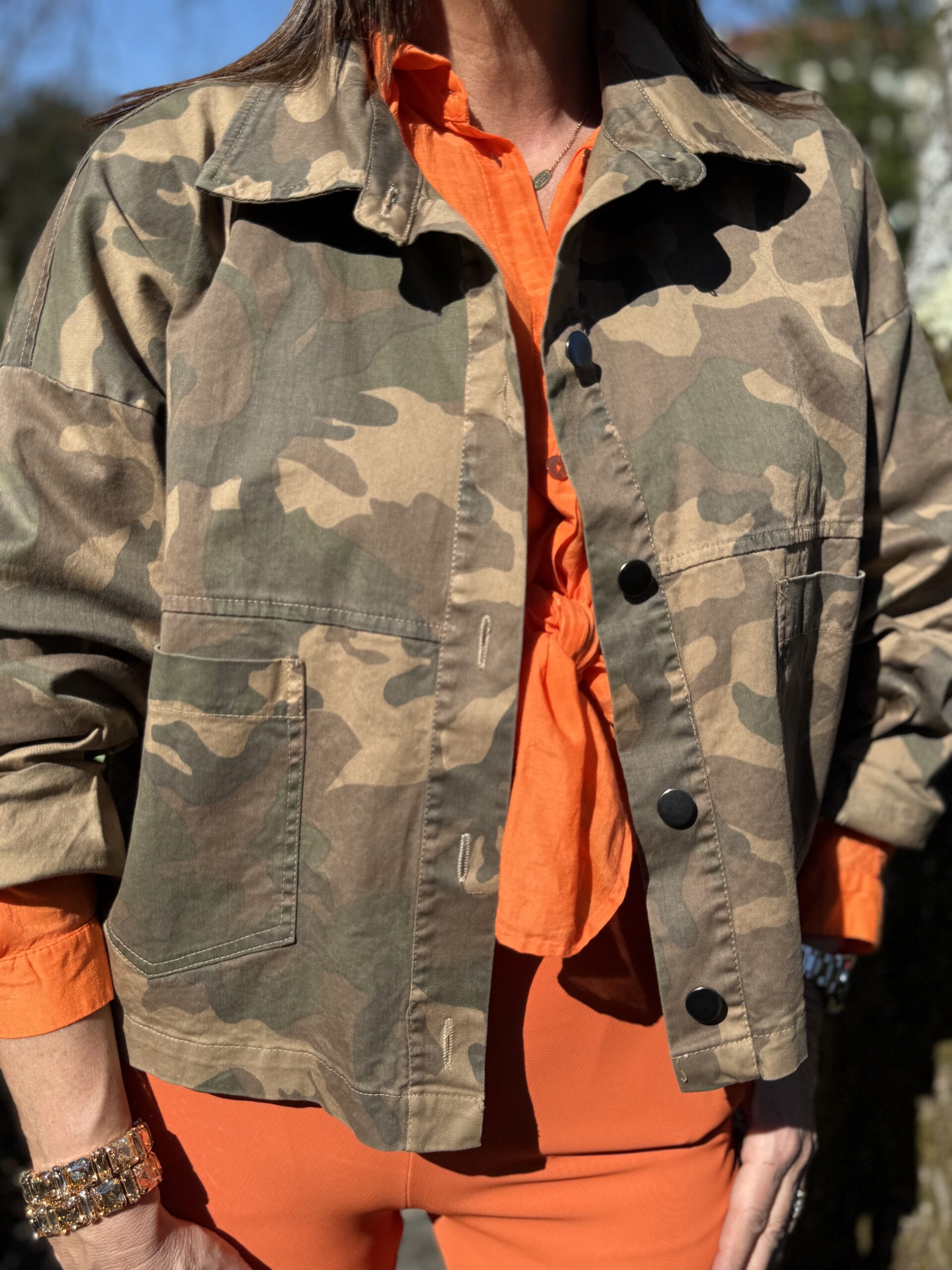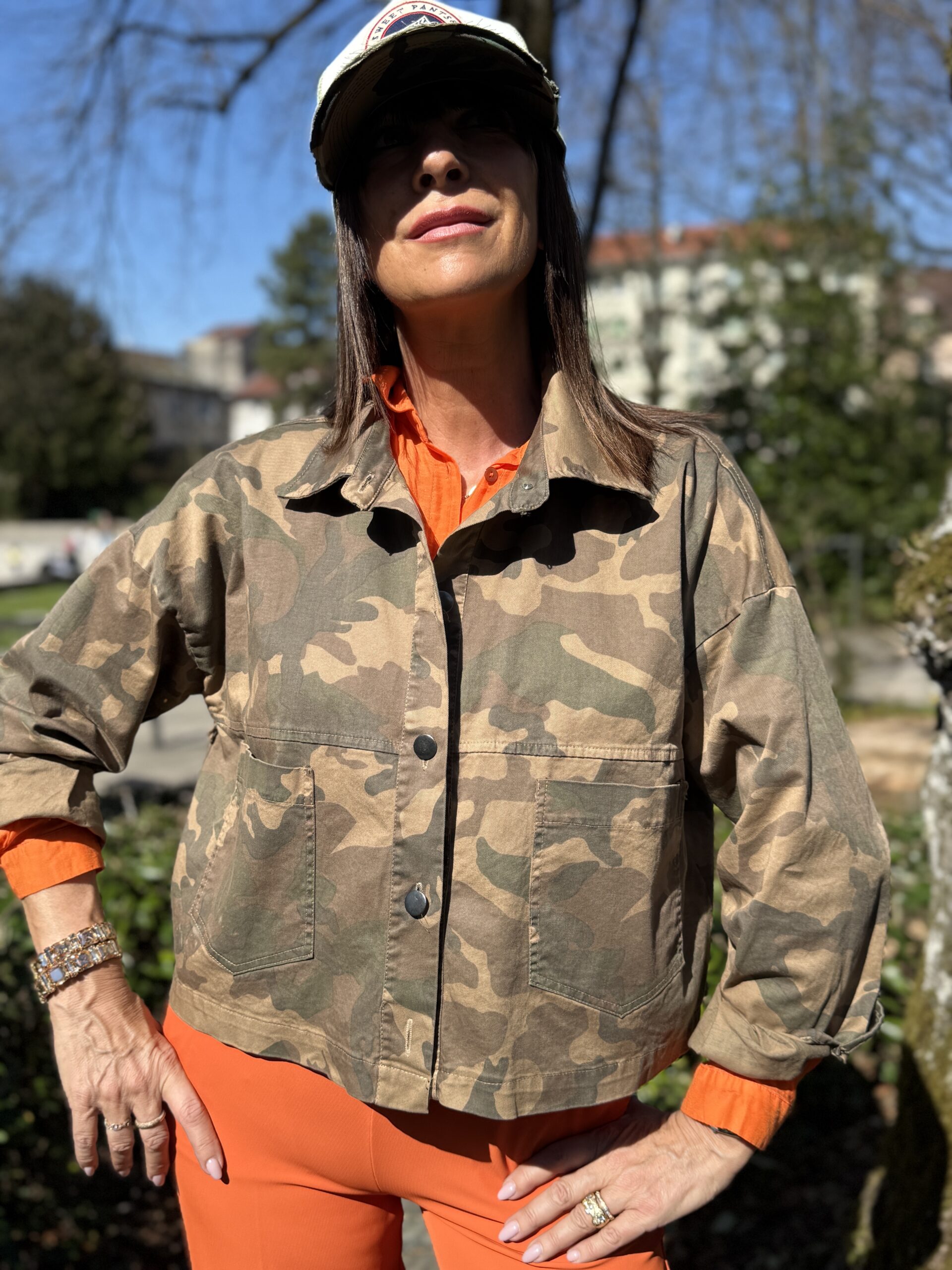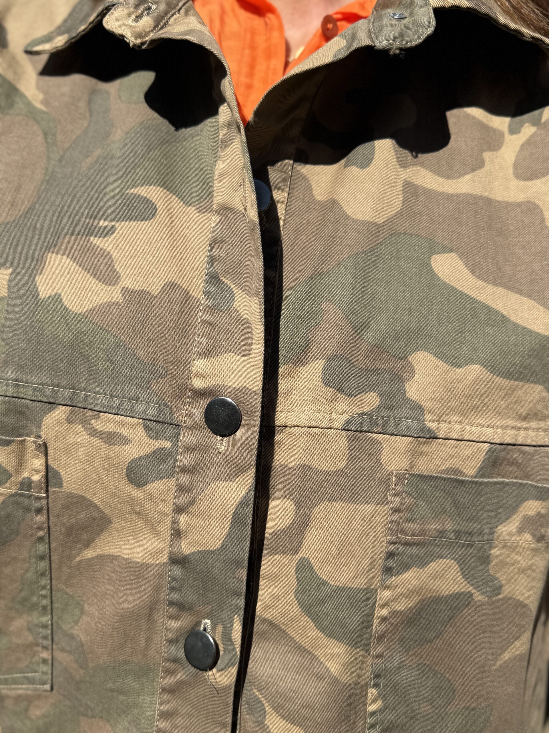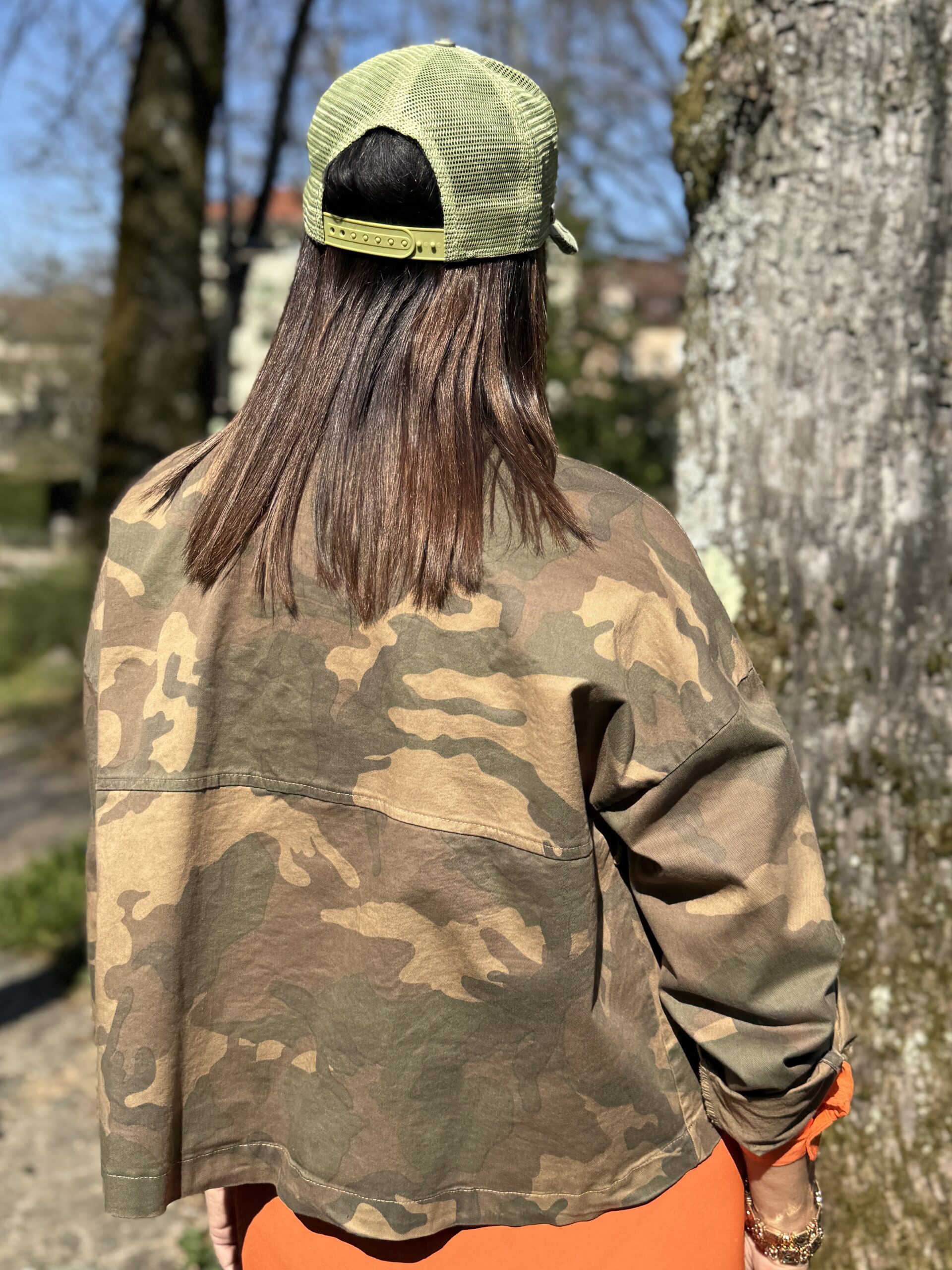 Avec son imprimé camouflage revisité, cette veste courte apporte une touche audacieuse et ultra tendance à votre looK