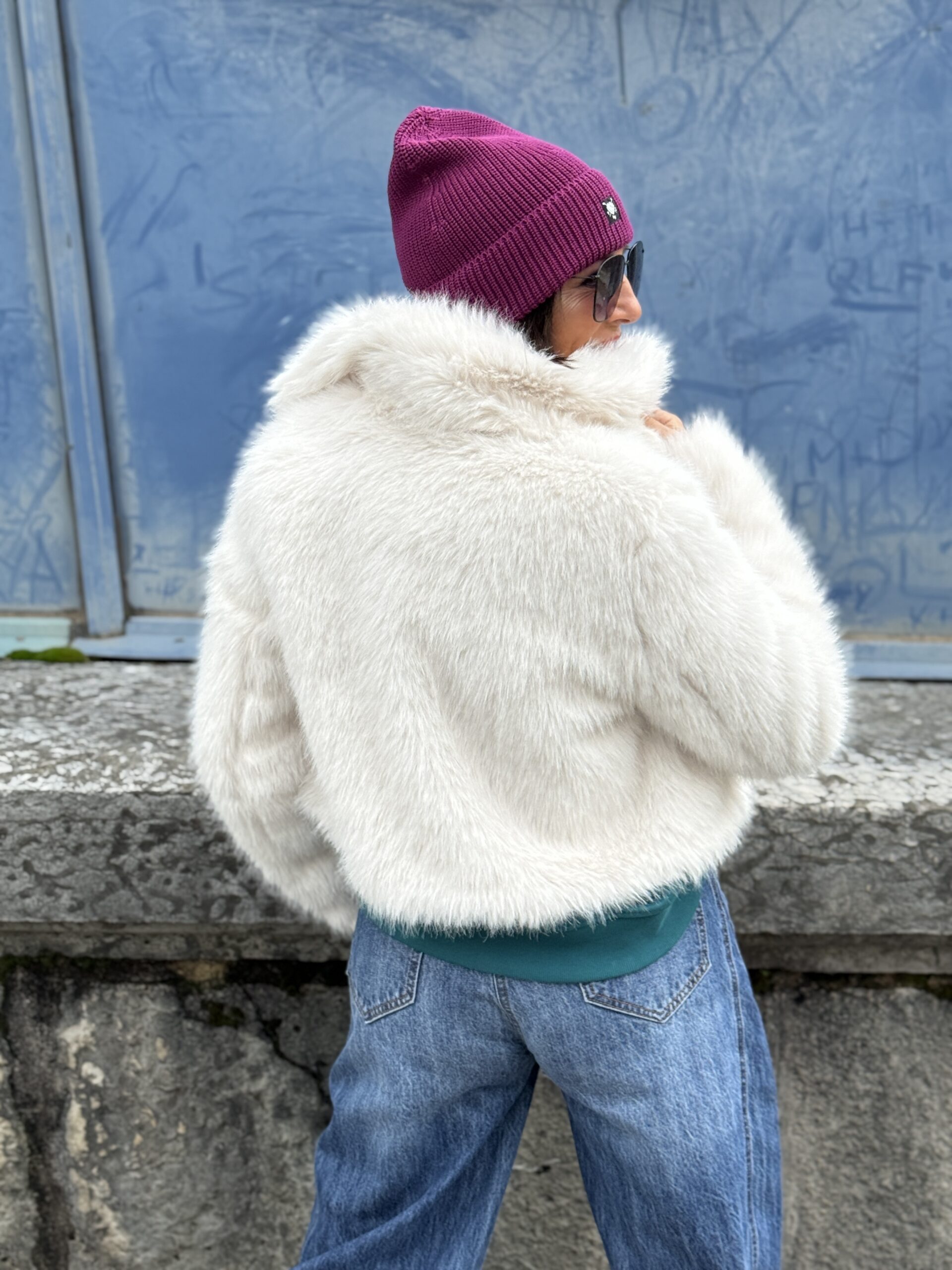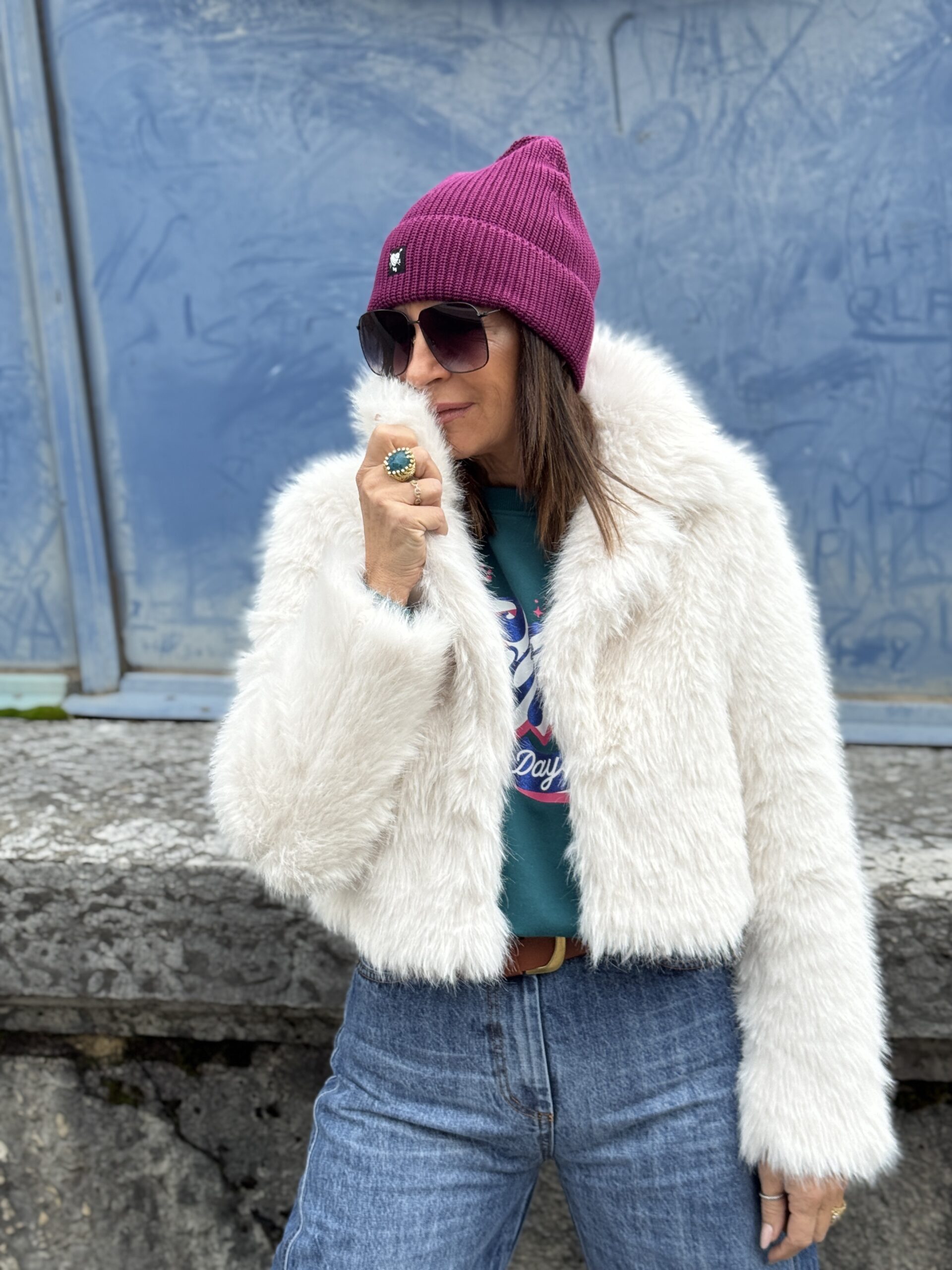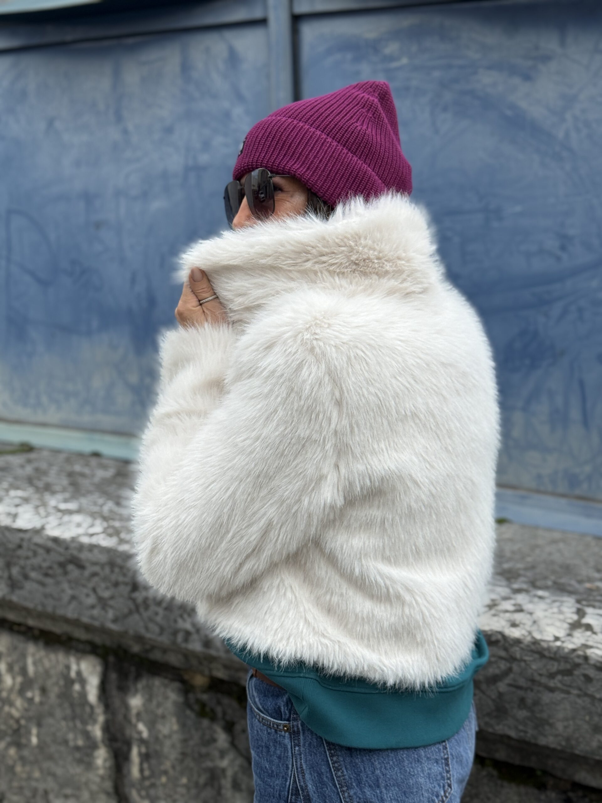 Chaleur, style et douceur, cette veste courte en fausse fourrure blanche et la pièce parfaire pour illuminer votre hiver !