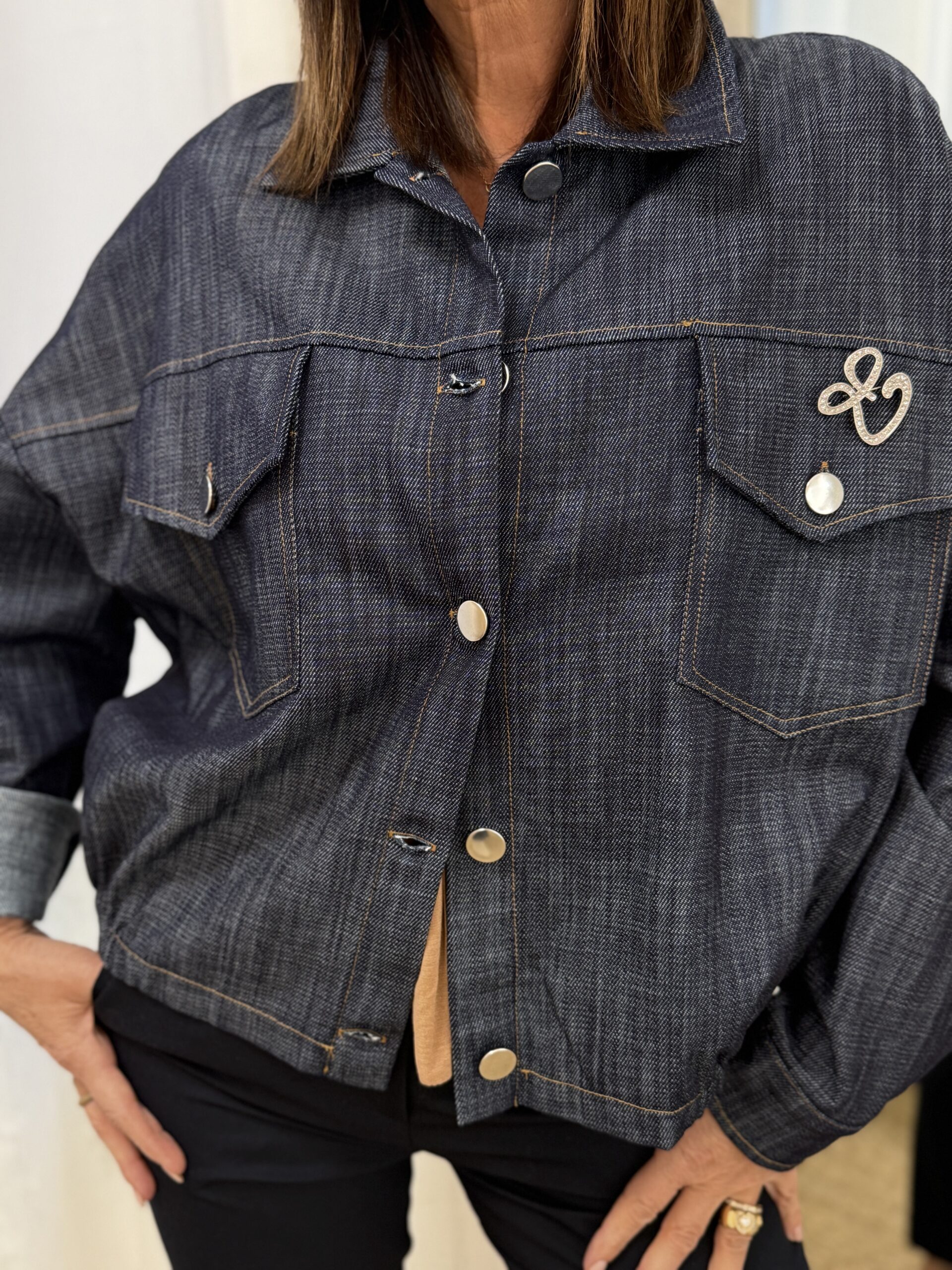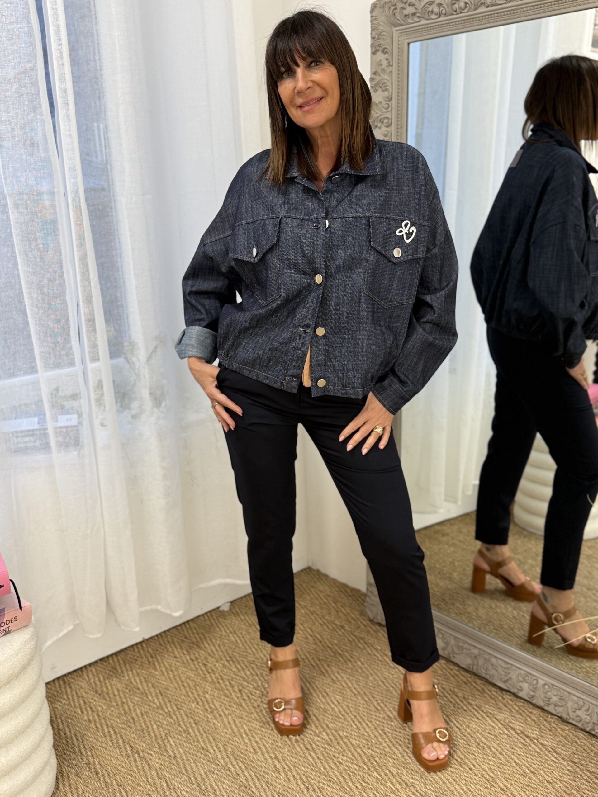 Cette veste en jean courte au styel moderne revisite le denim avec une coupe tendance et féminine