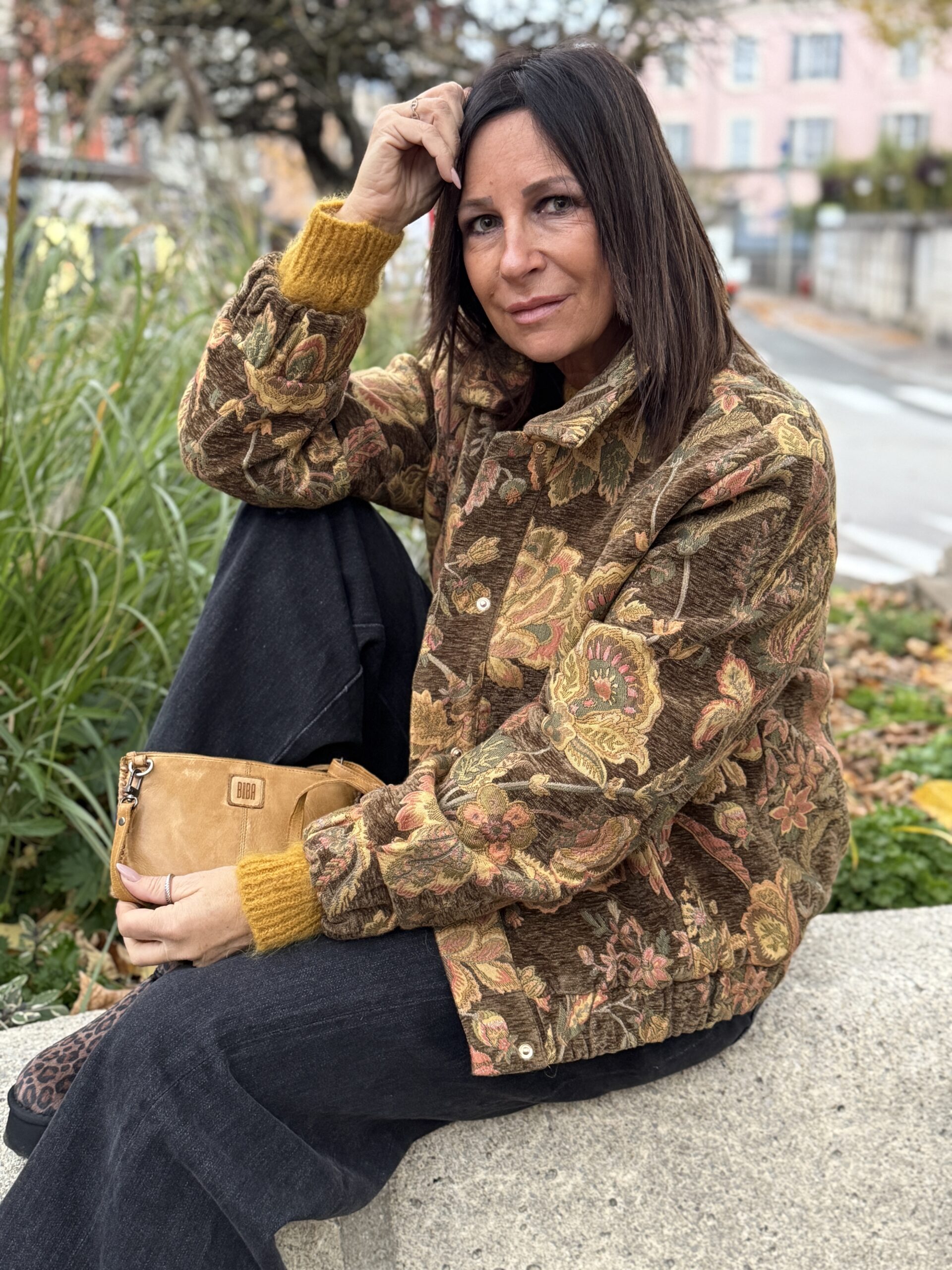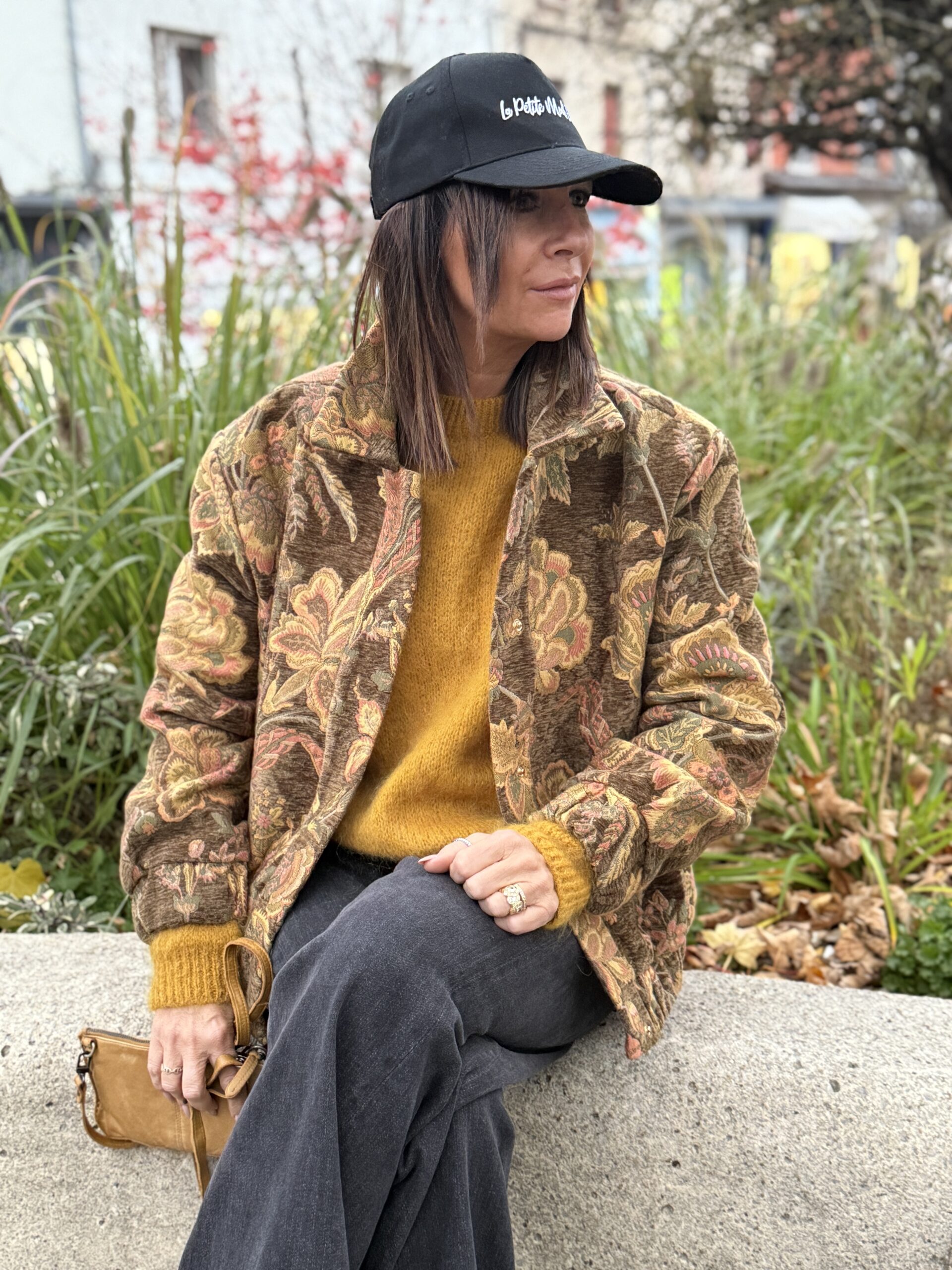 Conseil mode de Nathalie : Idéal pour rehausser un look automnal, cette veste se porte aussi bien avec un jean brut et des bottines qu’avec un pantalon en velours pour un style vintage assumé!
